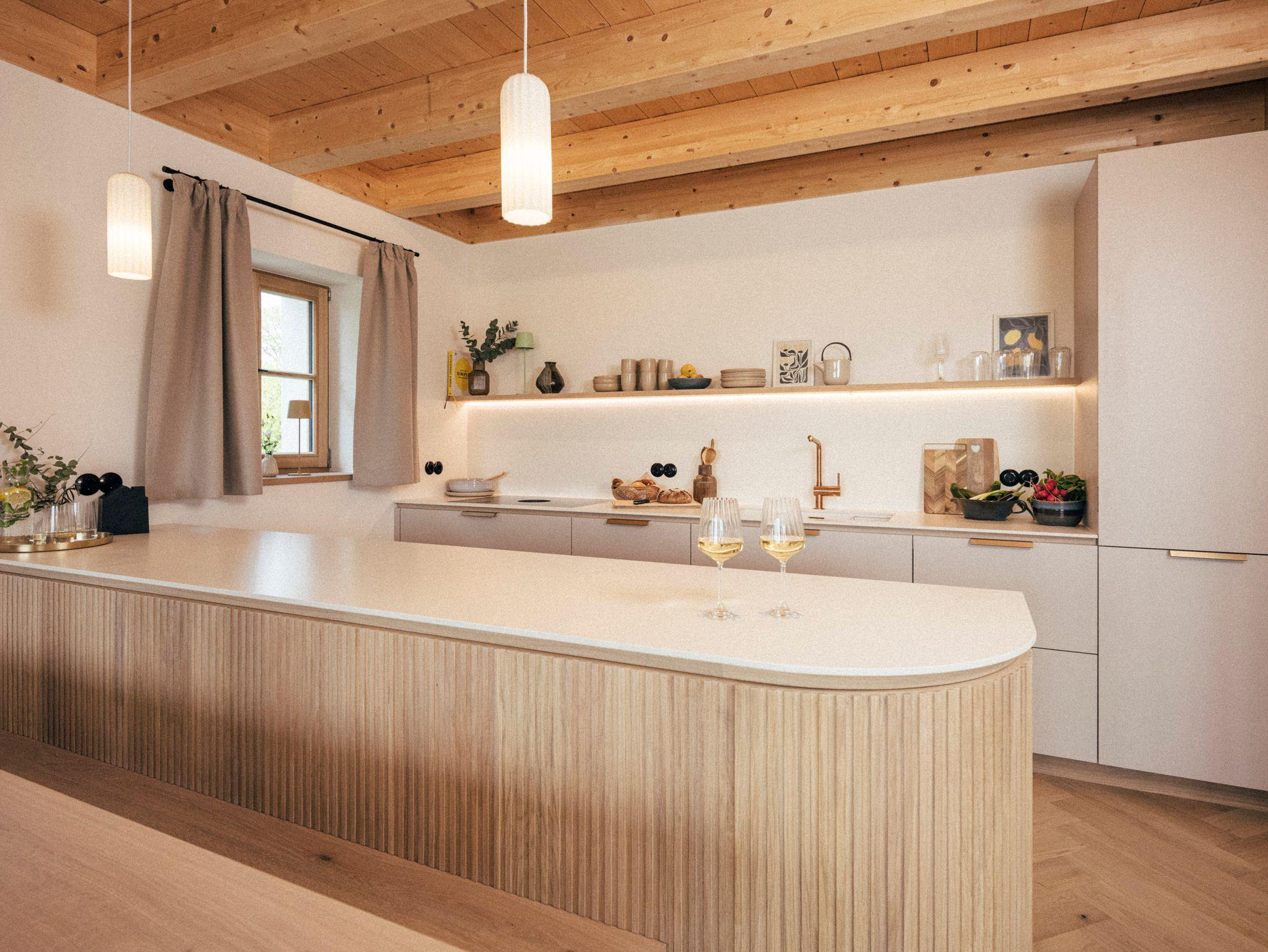 -Voll ausgestattete Küche mit Induktionskochfeld, Backofen und Kühl/Gefrierschrank