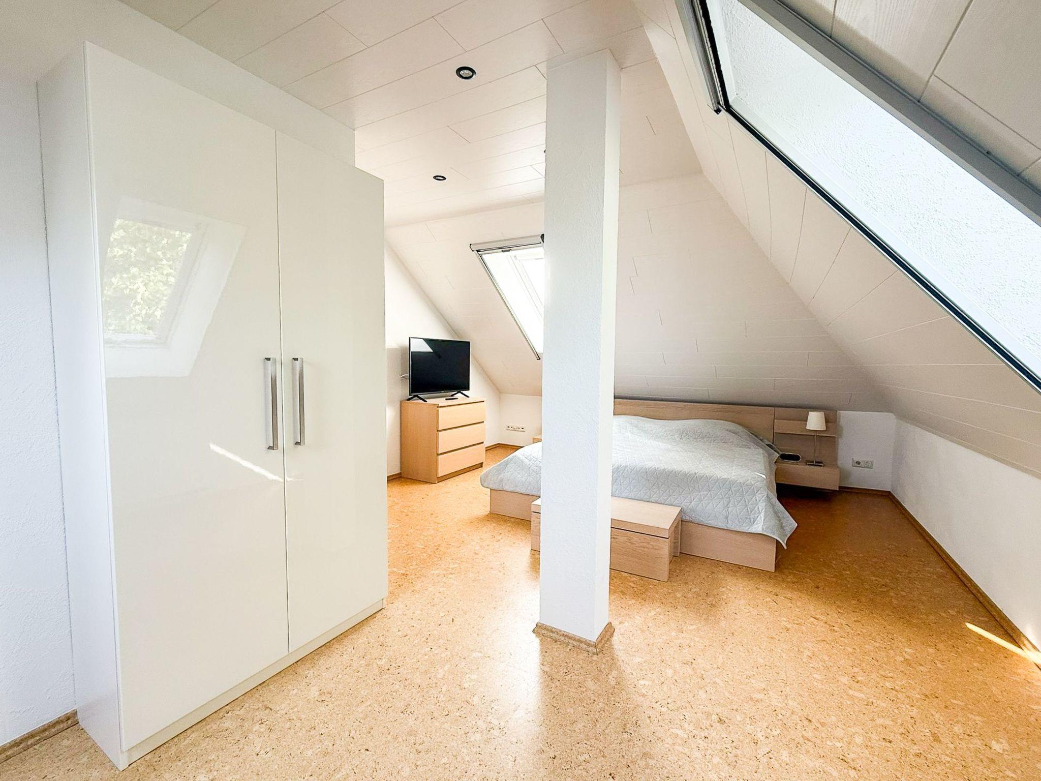 Top floor: Two further bedrooms with double beds. One of the rooms is particularly family-friendly and has a baby cot, a changing table with integrated baby bath - perfect for families with small children