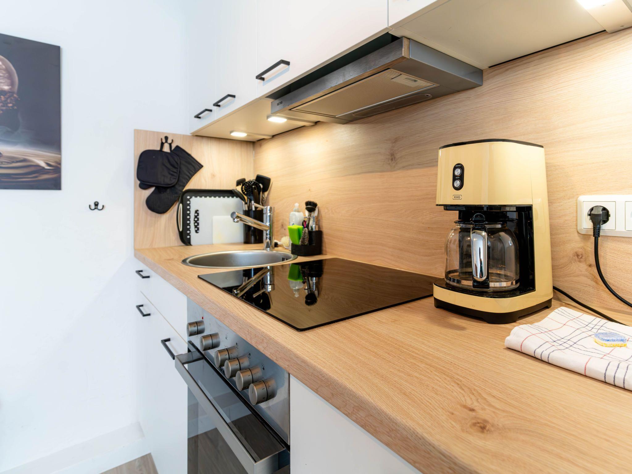 Comfort is paramount in this holiday flat. Equipped with all the necessary amenities for a carefree stay, guests will find a washing machine and tumble dryer for their exclusive use, making long stays much easier. The kitchen equipment with ceramic hob, filter coffee machine, dishwasher and kettle allows you to prepare meals exactly to your taste whenever you want.