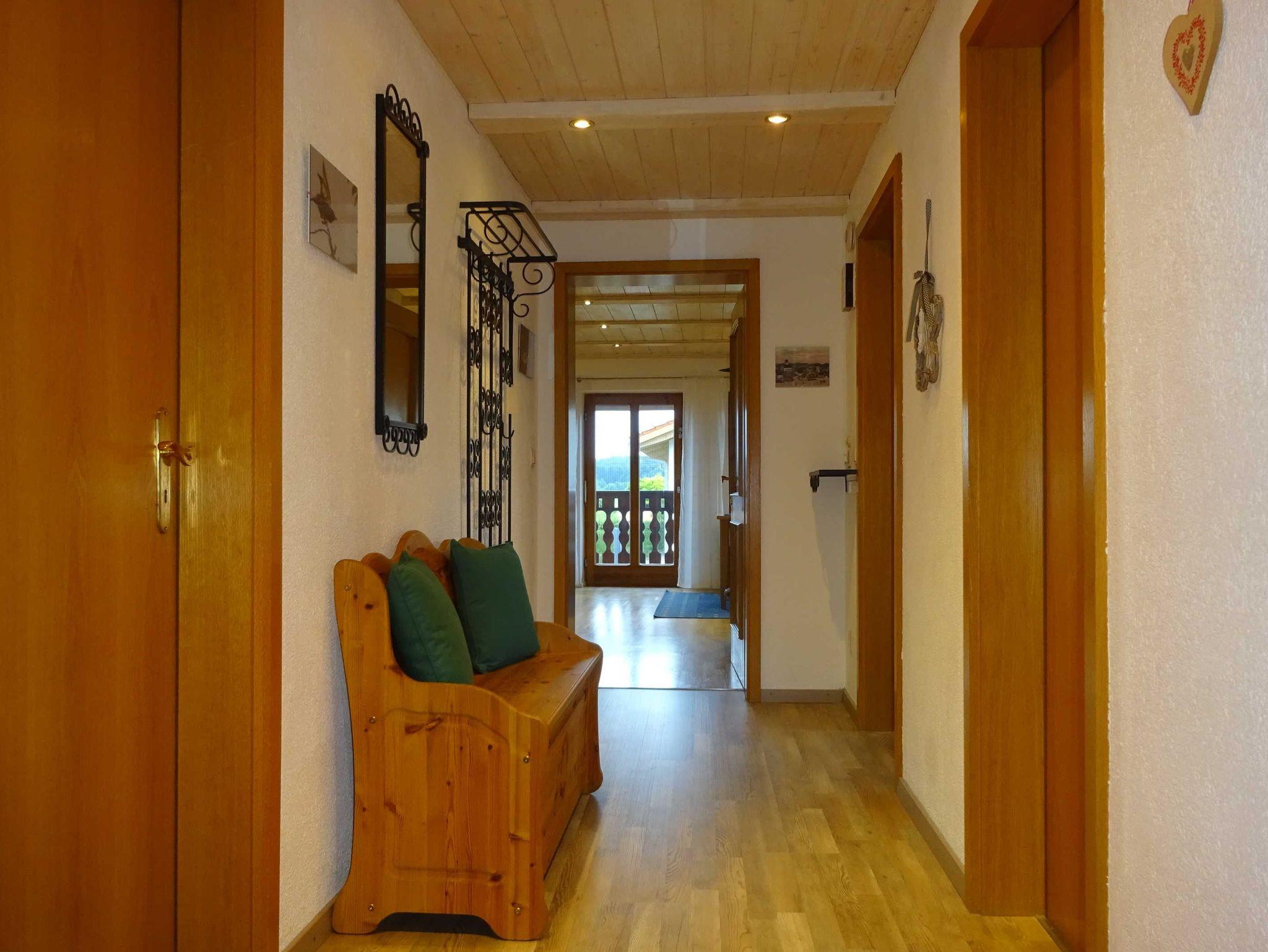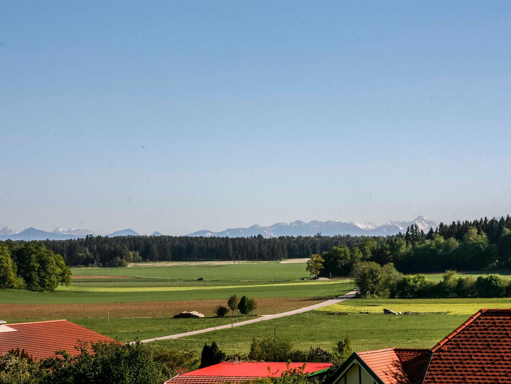 Die Wohnung verfügt über einen Balkon mit Blick nach Ost-Süd in die weitläufige Natur und den Alpen.