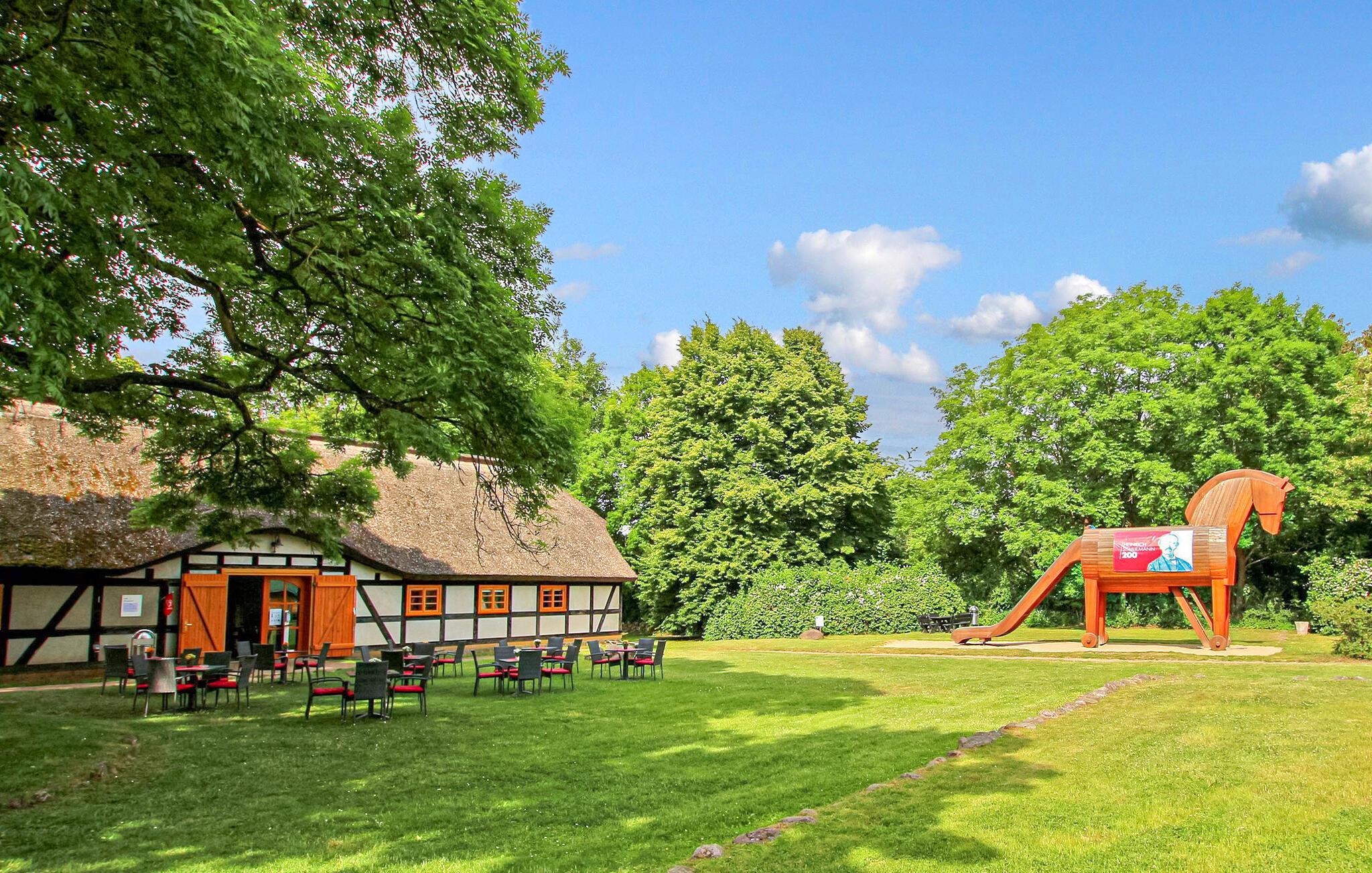 Idylliskt beläget intill den angränsande herrgårdsparken i Friedrichsfelde, bara 10 minuters promenad från Müritz nationalpark, finns 4 gästrum för totalt 7 vuxna och 1-2 barn på övervåningen i den gamla herrgården och en restaurang på bottenvåningen som erbjuder frukost (mot avgift) samt en restaurang som serverar regional husmanskost och hembakade kakor från onsdag till söndag (11:00 till 20:00).Schliemann-museet med den berömda trojanska hästen ligger bara ca 600 meter bort, en restaurang ca 1 km och en vacker badplats vid Mühlensee ca 5 km. Shoppingmöjligheter finns i Möllenhagen (6 km) eller i Penzlin (10 km). Den populära långdistanscykelleden Berlin-Köpenhamn går direkt genom byn.
