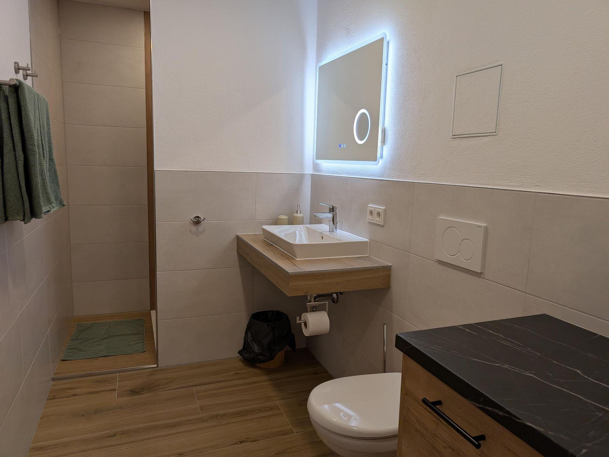 Schlaf. Das moderne Bad verfügt über eine Dusche, WC, Fön und einen