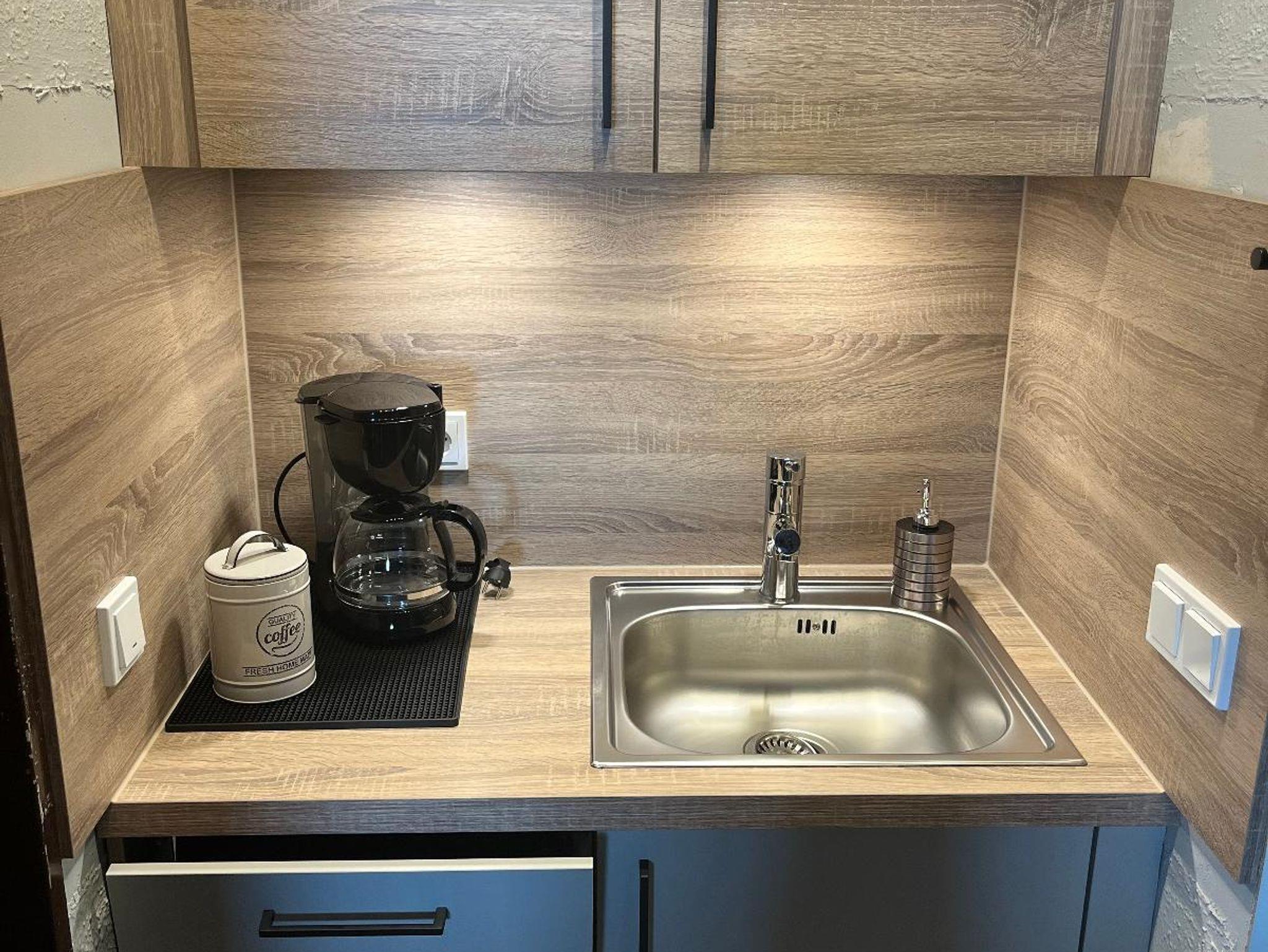 Mikrowelle, Kaffeemaschine, Wasserkocher, Geschirr, Besteck und vielen