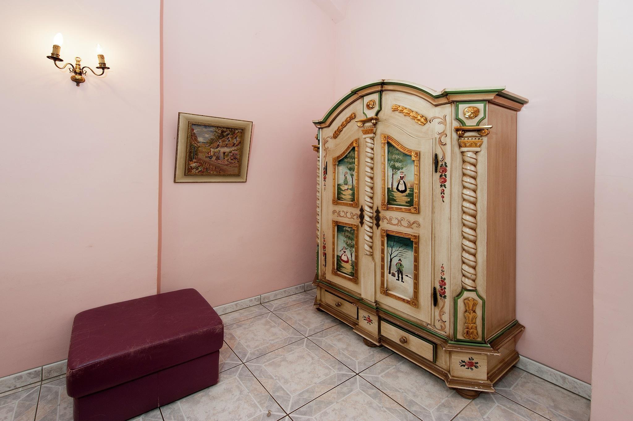 Denna charmiga studiolägenhet på första våningen ligger i det vackert restaurerade Schloss Triestewitz och erbjuder en unik vistelse i hjärtat av Sachsens kulturtriangel - mellan Berlin, Leipzig och Dresden. Lägenheten är idealisk för 2 gäster och har 1 dubbelsäng, satellit-TV och ett pentry med kaffebryggare, ugn och handfat. Badrummet har badkar med dusch, handfat, toalett och hårtork. Centralvärme, en gemensam tvättmaskin och torktumlare garanterar komfort och bekvämlighet. Gästerna kan njuta av den gemensamma trädgården, terrassen och grillplatsen, perfekt för att koppla av efter en dag av sightseeing. Slottsområdet inkluderar en 3 000 m² stor trädgård och tillgång till en 16 hektar stor park, perfekt för promenader, cykling eller bara för att njuta av de lugna omgivningarna. Med restauranger (1 km), en sjö (1 km) och Dübener Heide-skogen (100 m) i närheten, är denna lägenhet en fridfull bas för både naturälskare och kultursökande. Dagsutflykter till Wittenberg, Potsdam eller Leipzig är lättillgängliga.