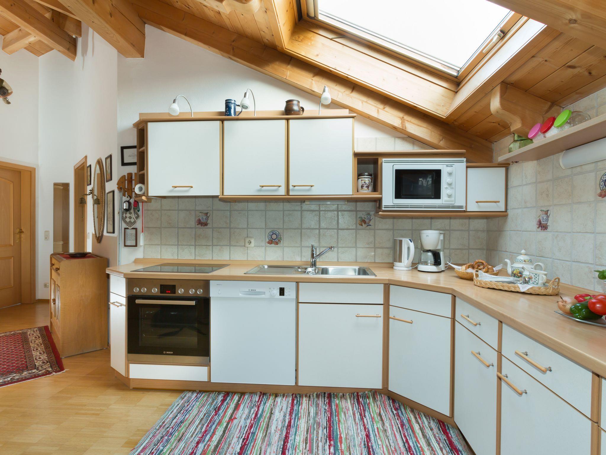 Sehr helle 70 qm Ferienwohnung II -Kampenwand- mit gehobener, kompletter Ausstattung, sichtbares Gebälk, Bodenheizung und Heizkörper. Sehr großes Wohnzimmer mit vollausgestatteter offener Küche, harmonisch im Wohnraum integriert mit Geschirrspüler, Ceranfeld, Backofen und allen Geräten, großer Tisch für 6 Personen, bequeme Doppel-Schlafcouch, SAT-TV, Radio mit CD, DVD-Player, Telefon, Internetanschluss mit D-LAN und kostenloses WLAN. Extra Schlafraum mit 3 Betten: Doppel- und Einzelbett. Großzügiges Badezimmer mit Dusche, Badewanne und WC. Süd-Balkon mit Balkonmöbel. Kinderbett, Kinderhochstuhl, Wickelauflage in jeder Wohnung. Gerne können Sie gegen Aufpreis einen Hund mitbringen. Waschmaschine und Wäschetrockner gegen Gebühr im Haus nutzbar. Ferienwohnung bedingt Behindertengerecht: breite Treppe und Türen, sehr gute Beweglichkeit, großzügige Wohnung, keine Schwellen, großes Bad. Auch für Rollstuhlfahrer Kinder, wenn Sie hochgetragen werden!