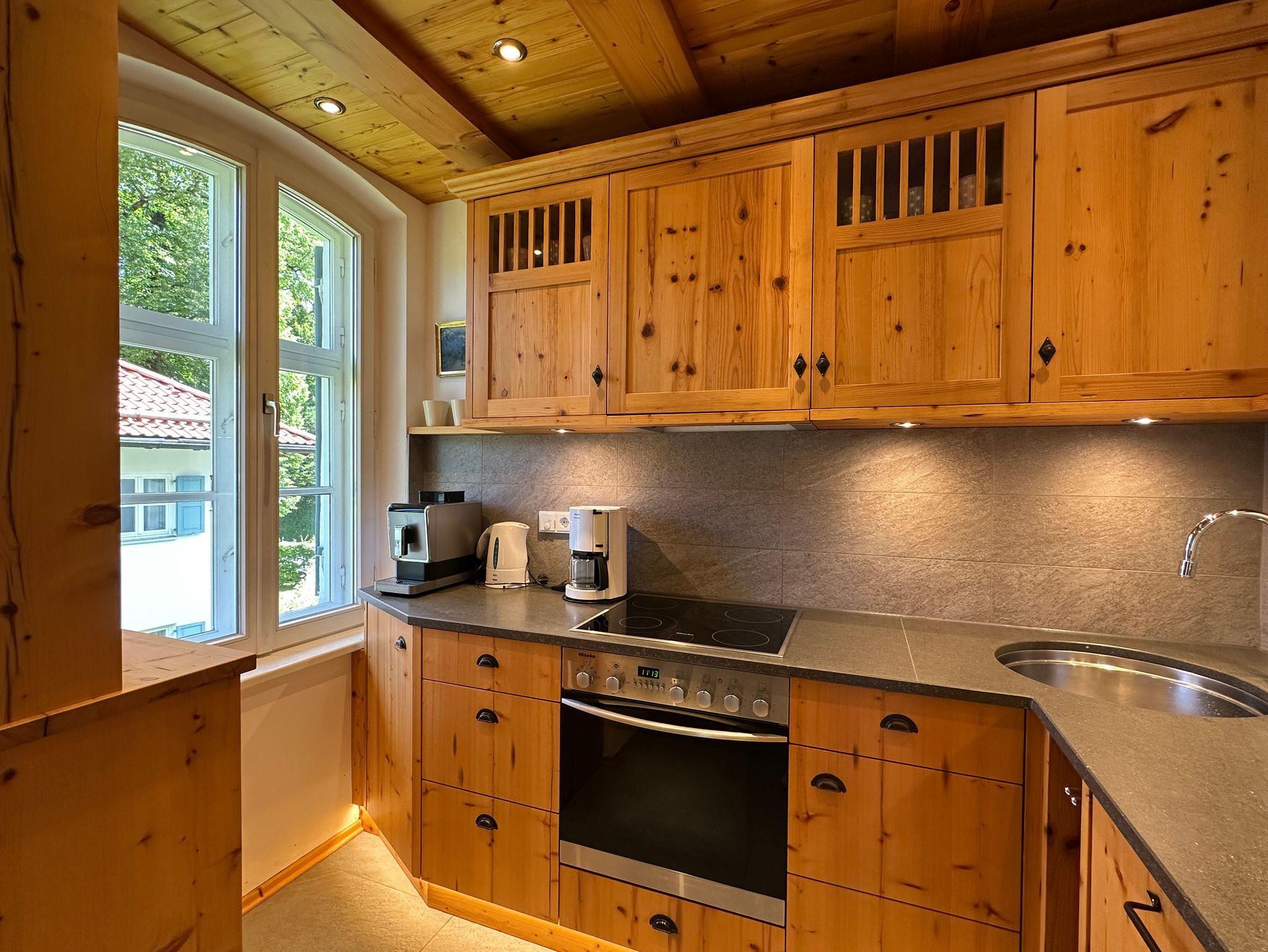 Der offene Wohnbereich ist liebevoll eingerichtet und lädt mit einem Kaminofen, einer bequemen Couch, einer gemütlichen Essecke sowie Flat-Kabel-TV, DVD-Player und kostenlosem WLAN zum Verweilen ein. Die moderne Schreiner-Einbauküche ist vollständig ausgestattet mit einem Ceranfeldherd samt Backofen, einem Geschirrspüler, Kühlschrank mit Gefrierfach, Kaffeemaschine und Toaster – perfekt für gemeinsames Kochen und Genießen.
