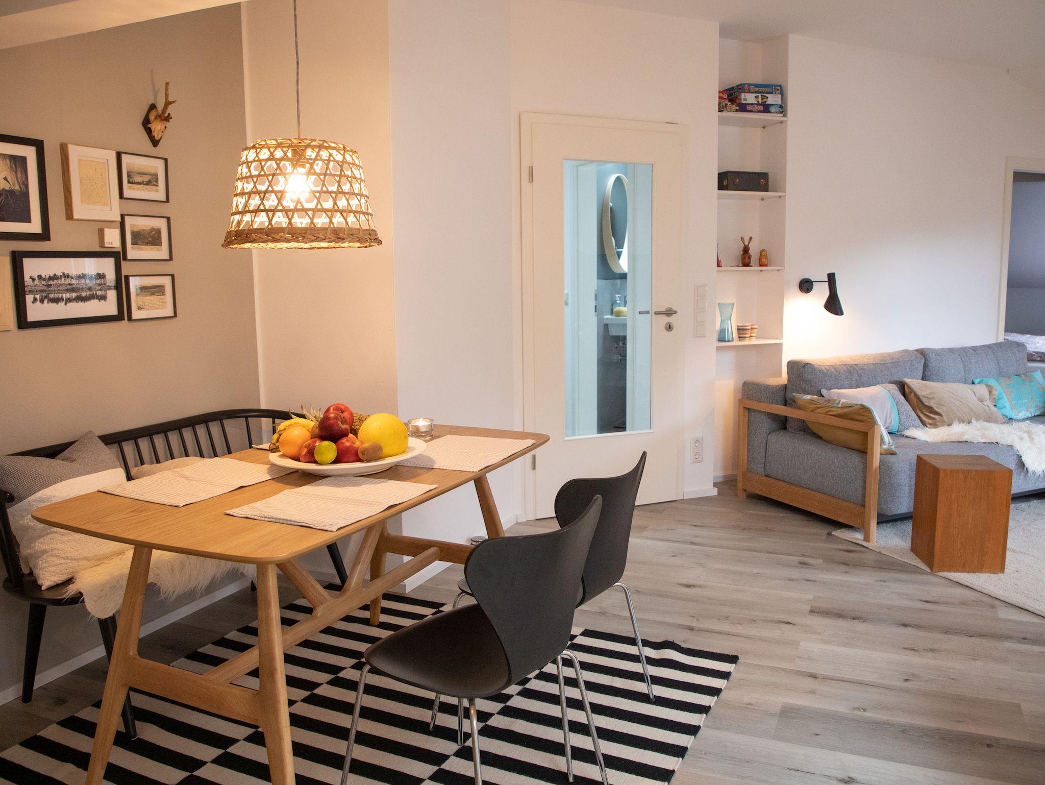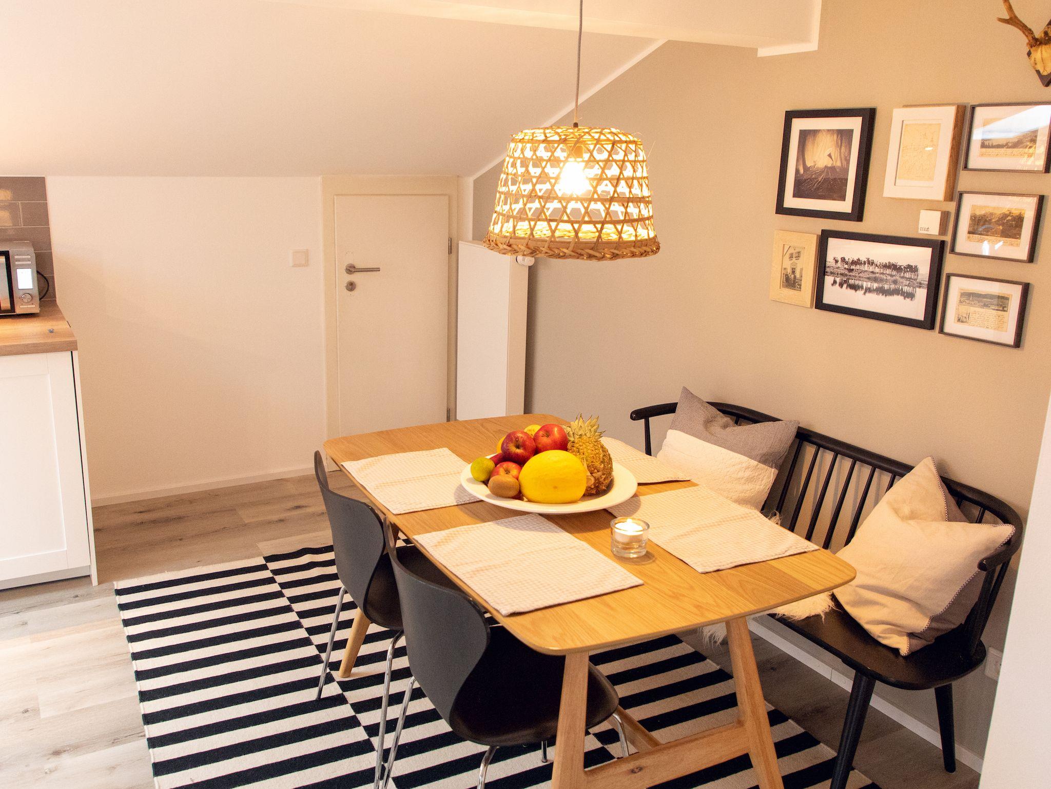Genießen Sie das Ambiente einer geschmackvollen wie komfortablen Einrichtung, liebevoll kombiniert mit traditionellen Details aus Oberbayern. Unsere Ferienwohnung „Das Lissi“ für 1 bis 2 Personen mit 68 qm, 2-Zimmer Dachgeschosswohnung mit Panorama-Balkon. Im großzügigen, offenen Wohnraum befindet sich die nagelneue, vollausgestattete Kochinsel sowie die gemütliche Essecke. Im Wohnbereich laden Sofa und Lesesessel zum relaxen ein, mit herrlichem Blick auf das Zellerhorn. Im separaten Schlafzimmer befinden sich ein Doppelbett (2x100x200cm), Schrank (inkl. Tresor) und Kommode. Das neue, durchdachte Bad mit Waschtisch, beleuchtetem Kosmetikspiegel, Handtuchheizkörper, Föhn, WC und großer Regendusche (100x90cm) bietet viel Luxus auf kleinem Raum. Der sehr großzügige, lichtdurchflutete Eingangsbereich mit Garderobe und Daybed ist ein zusätzlicher Rückzugsort bei Tagträumerei. Ein besonderes Highlight dieser zauberhaften Wohnung ist der große, überdachte, nicht einsehbare Balkon mit Panoramablick und dem Plätschern des Hammerbachs, der durch den Gemeinschaftsgarten fließt. Bettwäsche, Handtücher, Erstausstattung Küche (Küchentücher, Müllbeutel und Spültabs) sowie Endreinigung sind im Buchungspreis enthalten.