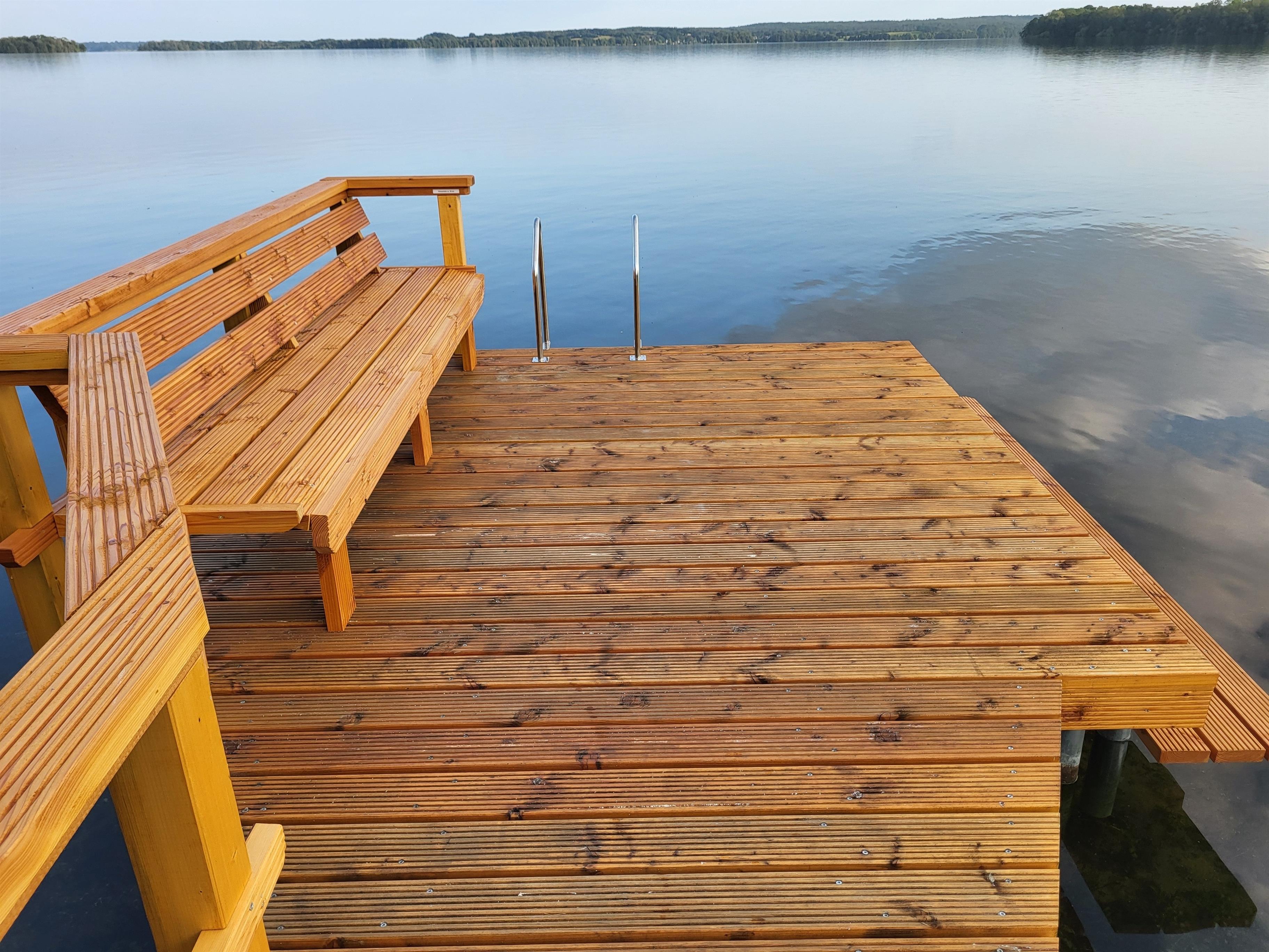 Vom Wohnbereich aus gelangt man über die Terrasse direkt an den ca. 50m entfernten See, ohne den Fahrstuhl benutzen zu müssen. -Ideal für Wassersportler-