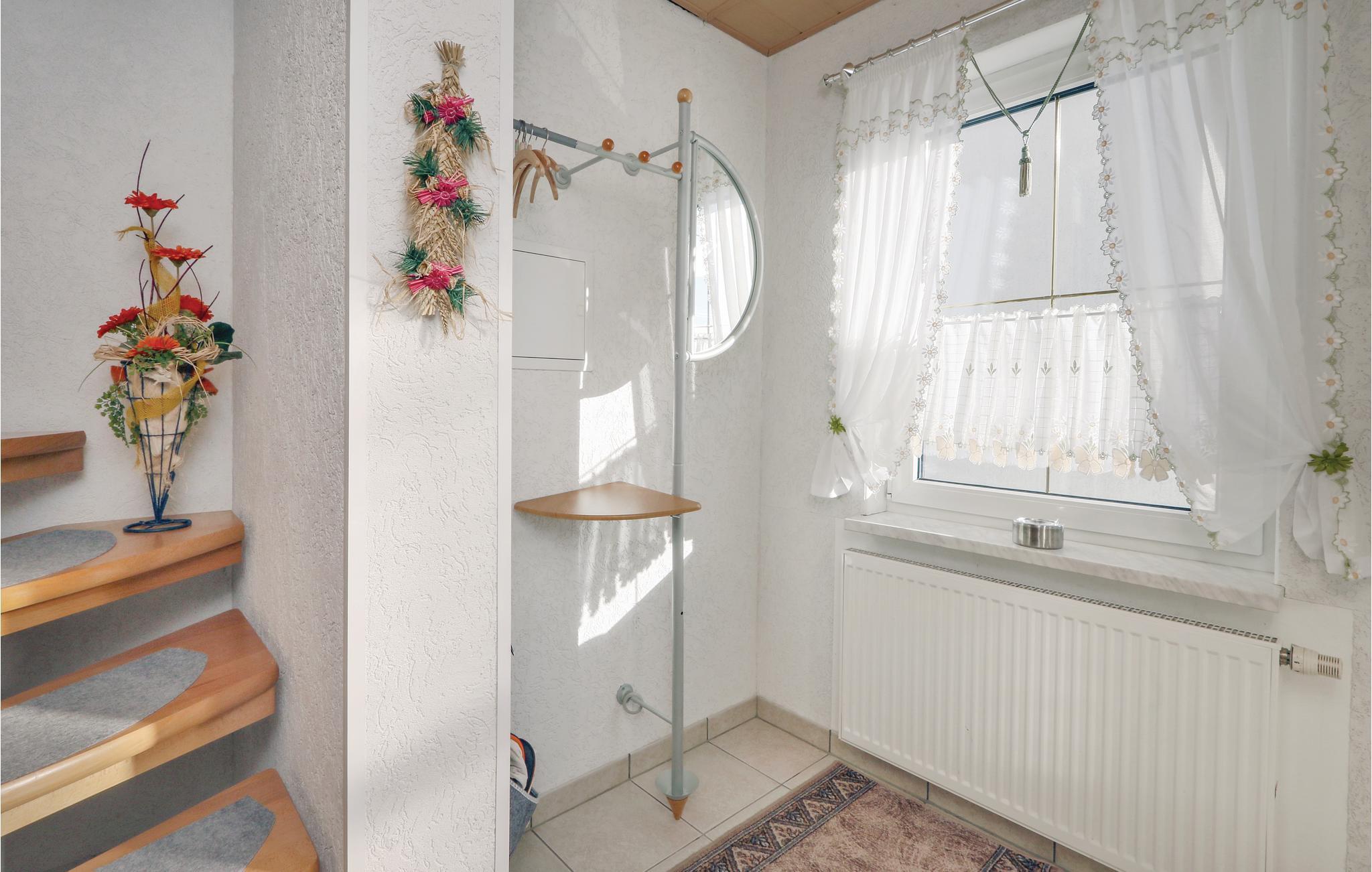 Denna bekväma semesterbostad ligger i en lugn förort till Auerbach, i en lantlig miljö. Allt är möblerat på ett mycket hemtrevligt sätt. Varje våningsplan är ett separat semesterhus i sig självt. Därför finns det tre vardagsrum. Ugnen är placerad på den övre våningen. Komforten kompletteras av fyra badrum, som är utrustade våtutrymmen i källaren. Huset är idealiskt för 2-3 familjer. En utomhuspool på ägarens grannfastighet kan användas, liksom en infrarödstuga för 2 personer mot en avgift. Något branta trappor. Trappskydd finns tillgängligt. Bordtennisbord. Vardagsrummet på första våningen kan värmas upp med en öppen spis. Ungdomsgrupper endast på begäran! Inget koncept för småskador med denna fastighet.