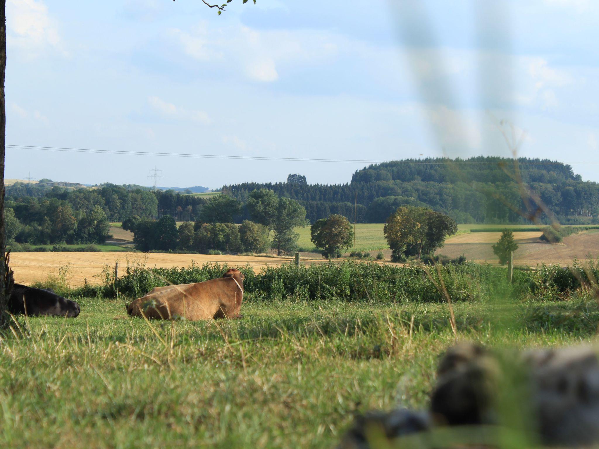 The area surrounding the holiday flat is characterised by the idyllic village life of Rommersheim with its 650 inhabitants, the agricultural character and the typical old farms. The parish church of St Maximin and the Schönecker Schweiz nature reserve with its orchid fields and historic lime kiln are just some of the highlights worth seeing nearby. Thanks to its central location and good transport links, all excursion destinations in the surrounding area are within easy reach. Sports and leisure activities include boules in the village.