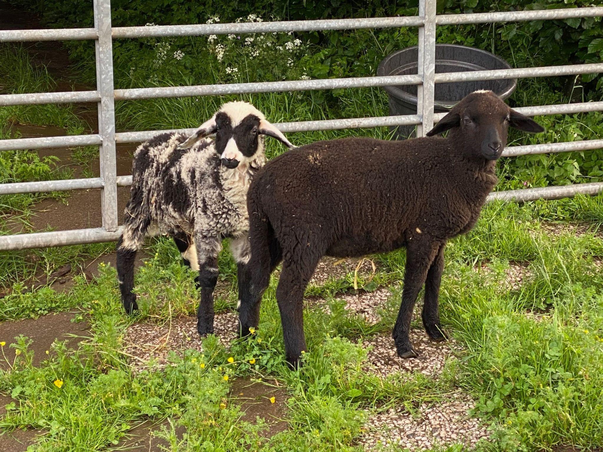 A variety of animals live on the farm. In addition to a petting zoo with sheep, goats, dwarf ponies and alpacas, there are also horses and geese. The horses can be groomed and groomed by older children