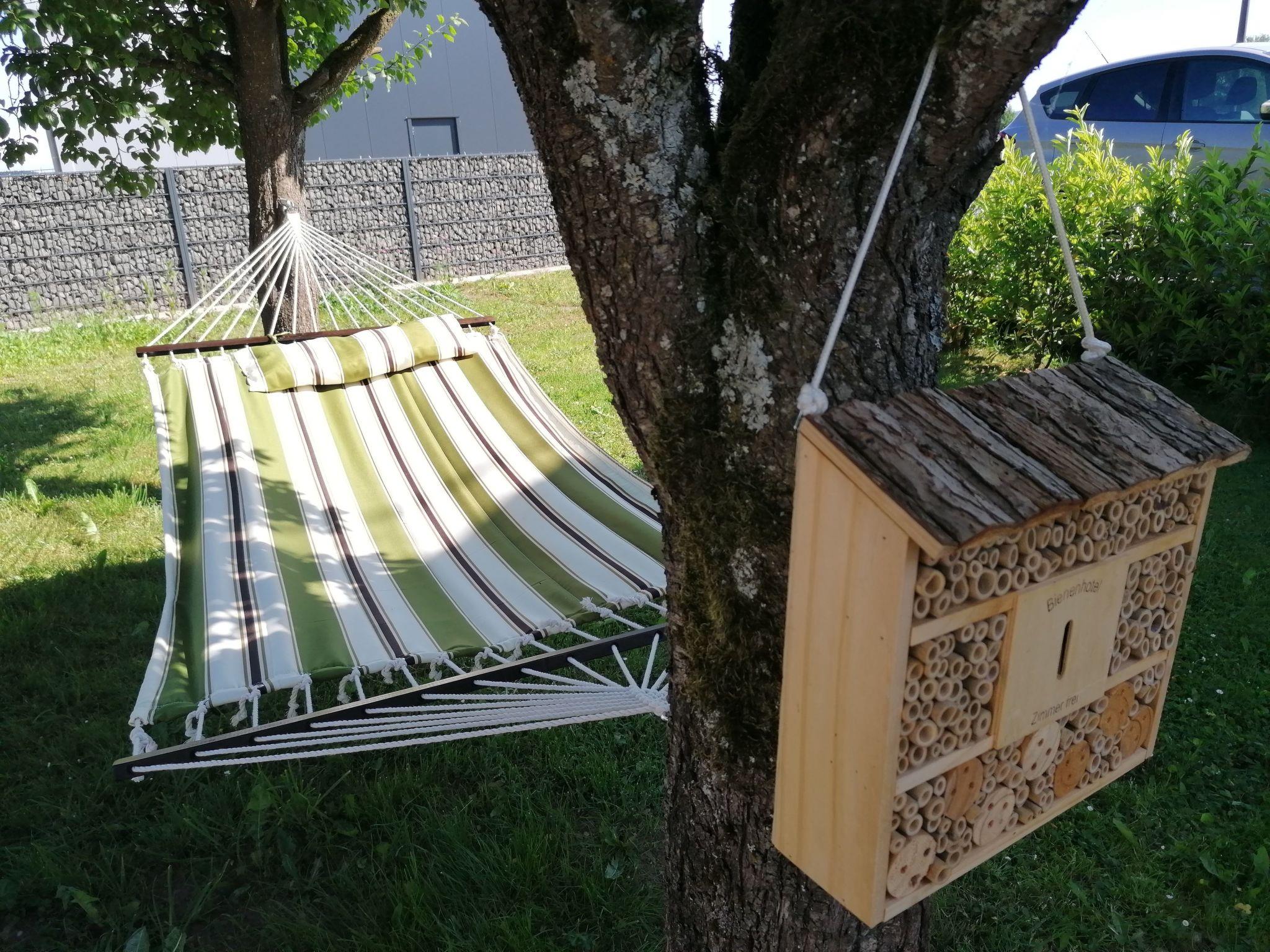 The outdoor area is a paradise for children and also for adults who love nature and tranquillity. In the garden there is a sandpit, swing, trampoline, climbing tower and two slides. The whole property is fenced. We also have a separate terrace with a green area for our guests with garden furniture, a charcoal barbecue and a great hammock. There our guests are all to themselves. There is a car park right next to the flat. Up to three cars can be parked there.