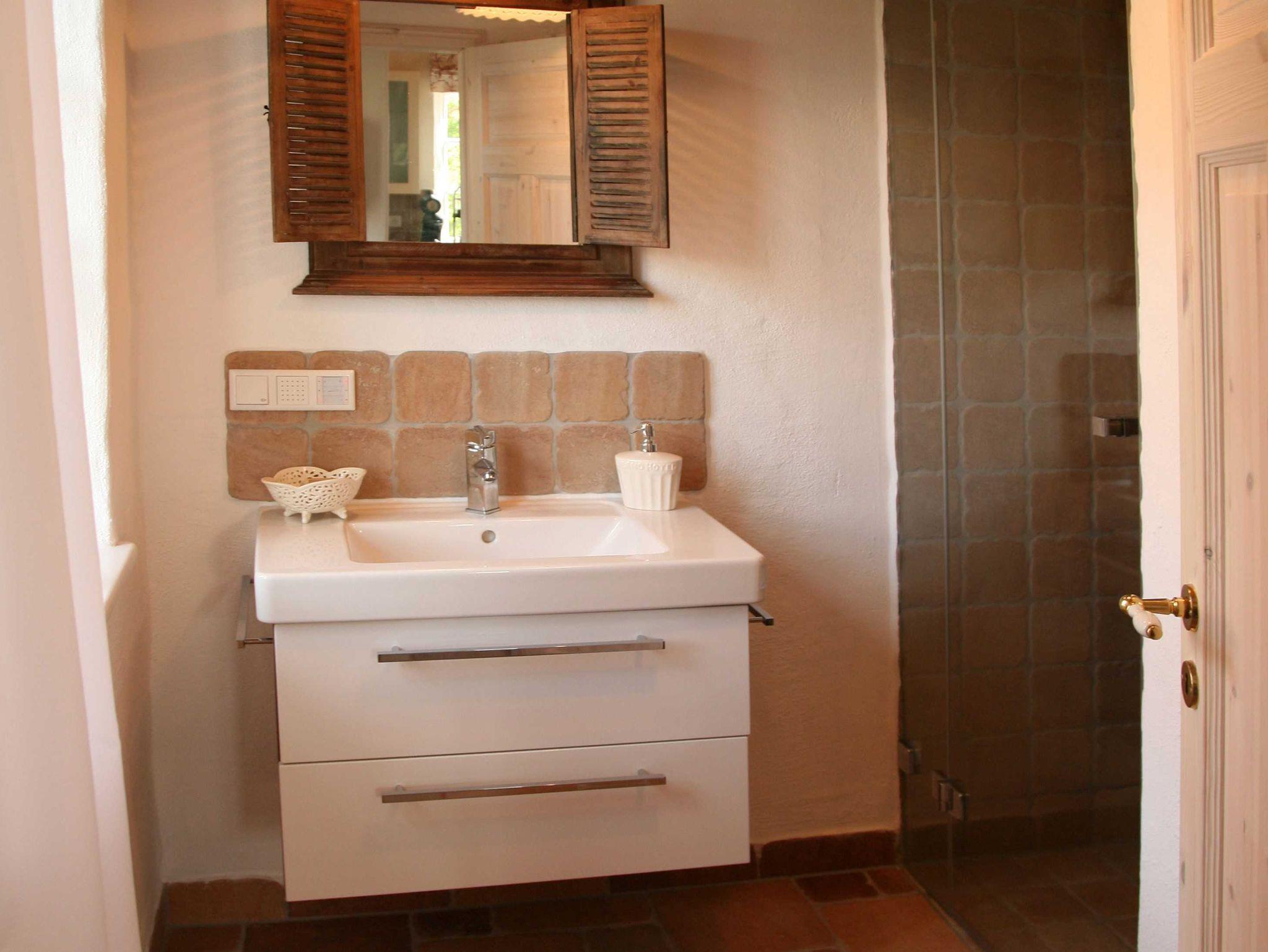 Die offene Wohnküche bietet auch dem ambitionierten Hobbykoch genug Möglichkeiten, im Urlaub nicht auf kulinarische Genüsse verzichten zu müssen. Die exklusive Ausstattung des Ferienhauses liegt weit über dem Vermietstandard anderer Ferienhäuser. Das betrifft unter anderem die Bodenbeläge (Terracotta), WLAN, großes Bad mit Wellness-Dusche und Badewanne, einem weiterem Duschbad, eine wunderschöne Galerie mit Ohrensesseln zum Lesen und einem zweiten Flachbildfernseher (man ist sich ja nicht immer einig, was das Programm angeht) und natürlich die Möblierung, die mit ihrem warmen Landhauscharakter zur Urlaubsstimmung beiträgt. Ein Gartenhaus mit Sauna und überdachter Gartenterrasse bietet Unterstellplatz für mitgebrachte Fahrräder. WLAN kostenfrei. Waschmaschine und Wäschetrockner sowie Kaminholz sind inkl. Zwei Stellplätze direkt auf dem Grundstück. Die Saunanutzung erfolgt über den Münzautomat. Es befindet sich eine Außenkamera am Haus, diese überwacht die Eingangstür und die Terrasse.