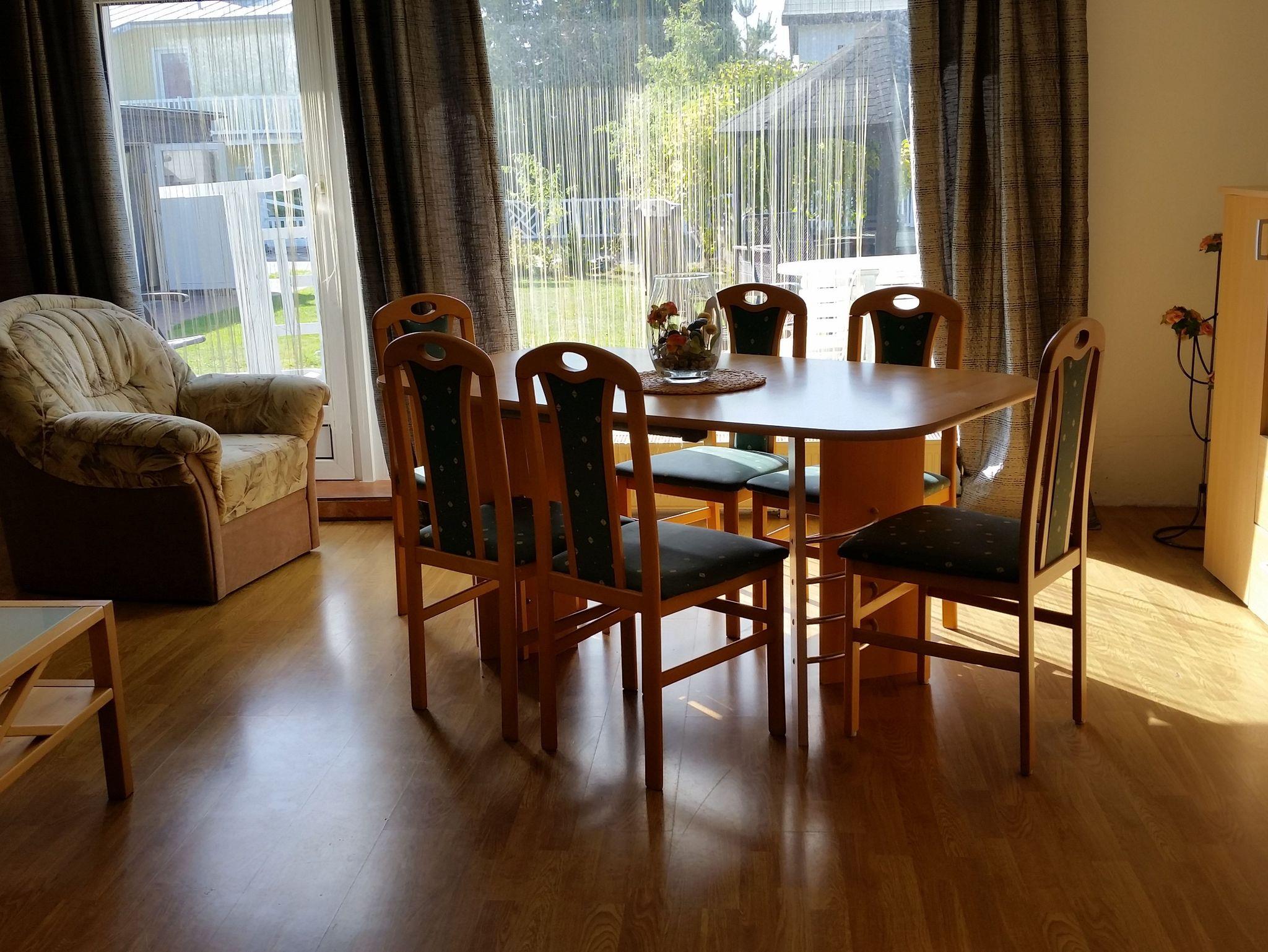 3-Raum-Ferienwohnung (80 m², für bis zu 7 Personen) im Erdgeschoss mit Terrasse.
