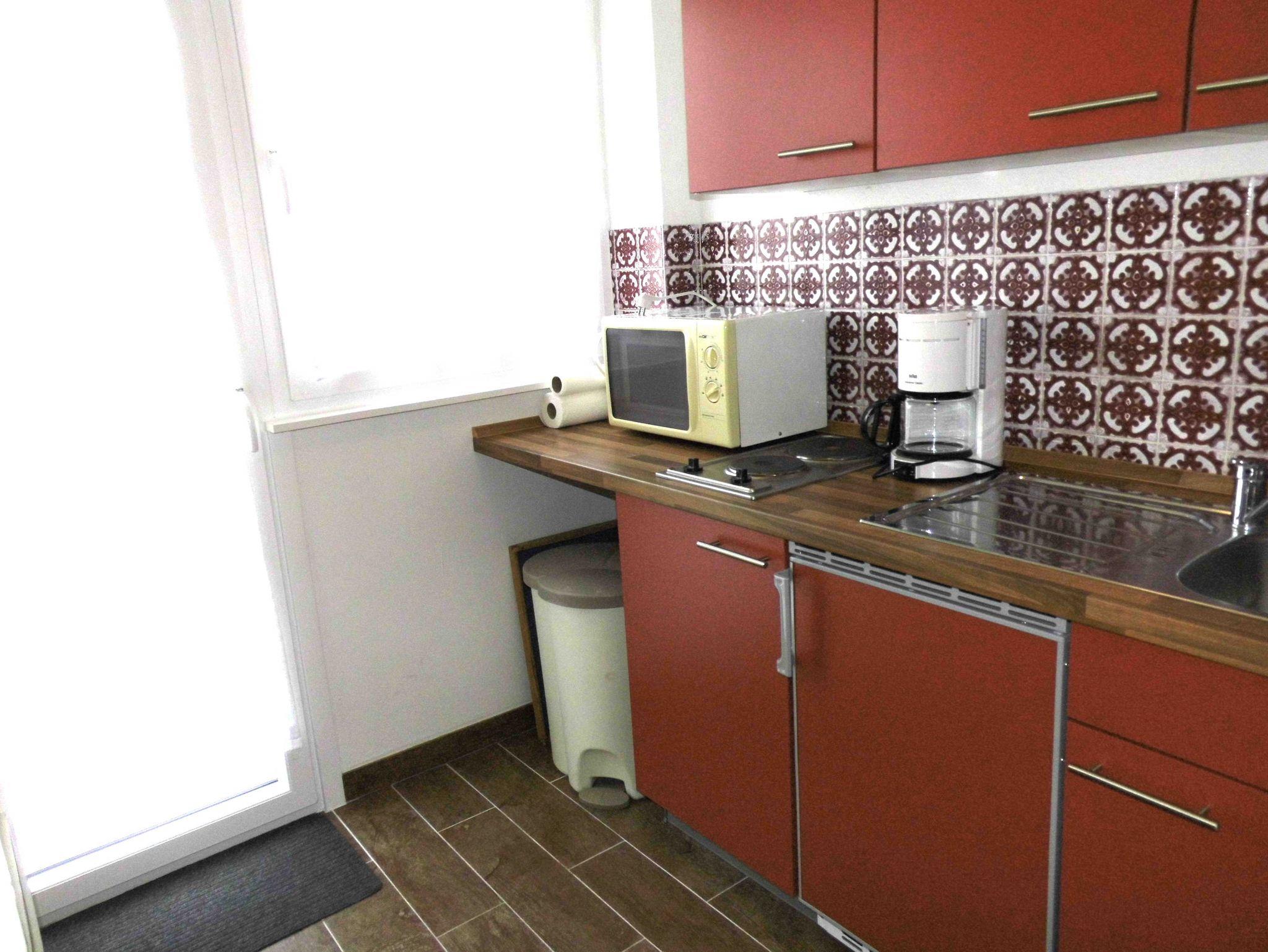 • separate Küche mit Kühlschrank, 2-Platten-Herd, Mikrowelle, Kaffeemaschine, Toaster, Wasserkocher
