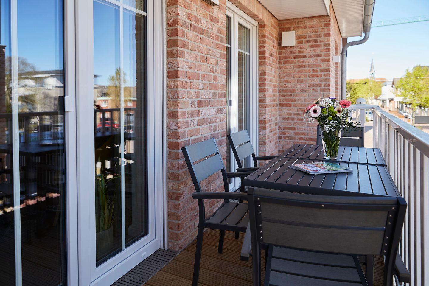 Der Balkon der Wohnung lädt dazu ein, die frische Nordseeluft zu genießen und den Tag entspannt ausklingen zu lassen. Für zusätzlichen Komfort sorgt die Fußbodenheizung, die Ihnen auch an kühleren Tagen ein behagliches Ambiente bietet. Der Wohn- und Essbereich ist mit bequemen Sofas und Sesseln ausgestattet, die zu gemeinsamen Abenden beim Fernsehen einladen. Für die Unterhaltung stehen Ihnen insgesamt drei Fernseher sowie ein Radio zur Verfügung, und das kostenfreie WLAN erlaubt es Ihnen, auch während Ihres Urlaubs mit Freunden und Familie in Kontakt zu bleiben.