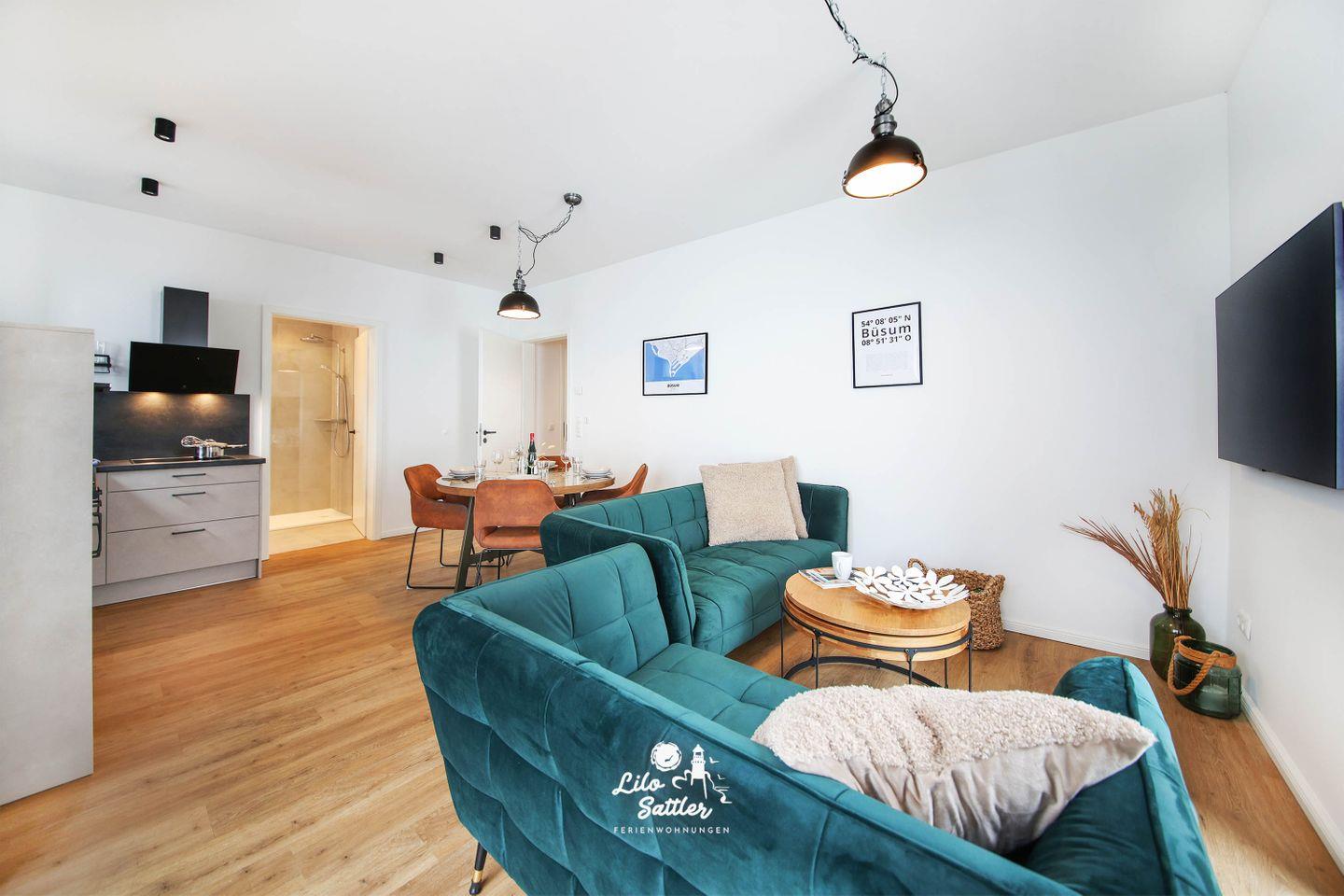 Direkt am Büsumer Hafen, in der Deichstraße, erwartet Sie die komplett neue Ferienwohnung „Deichstuben“ Whg. 1 im Hochparterre – stylisch, modern und mit gehobener Ausstattung.