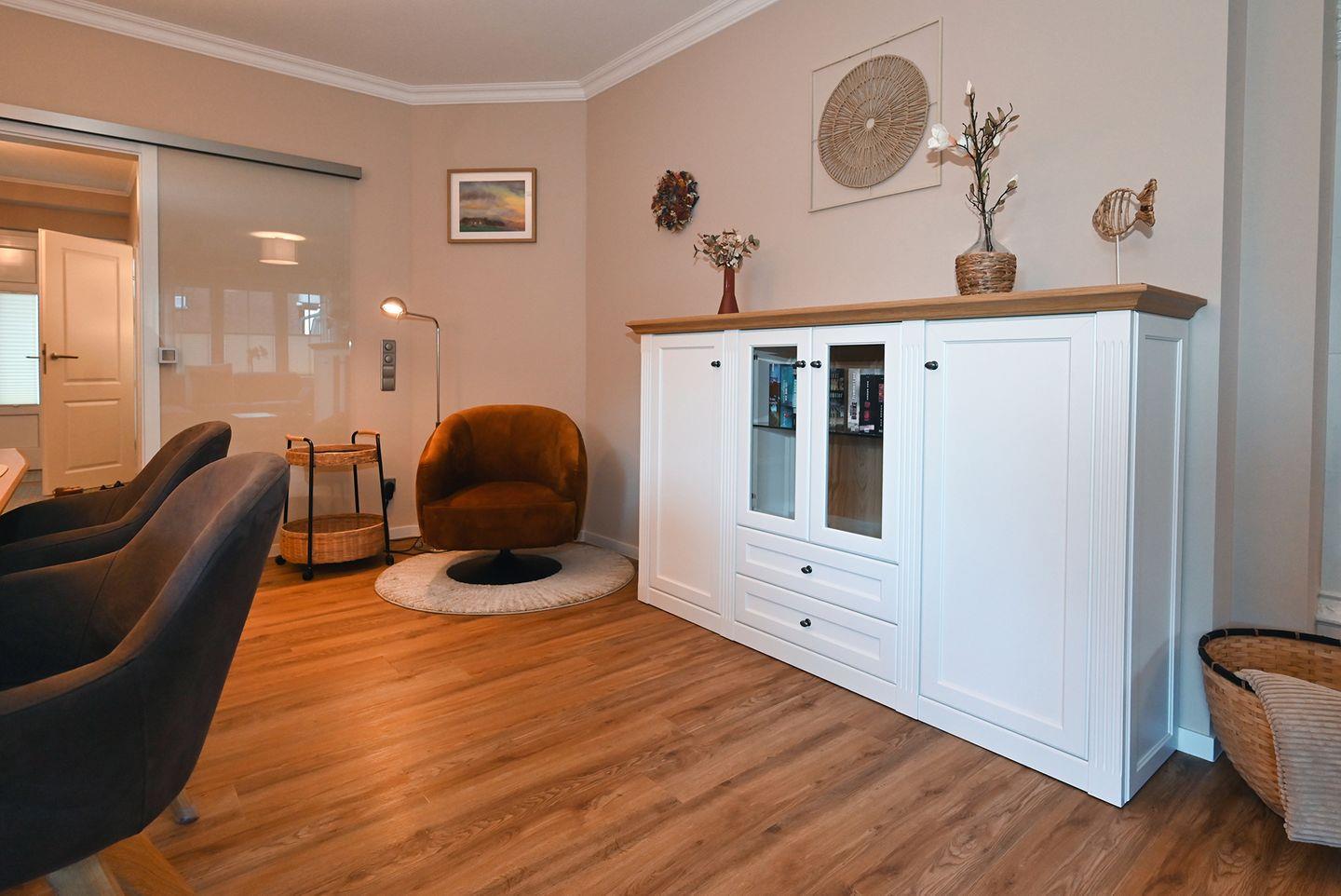 Der Bungalow verfügt über drei geschmackvoll eingerichtete Schlafzimmer. Zwei Zimmer sind mit gemütlichen Doppelbetten ausgestattet, das dritte mit einem komfortablen Einzelbett. In allen Schlafzimmern befindet sich ein Smart-TV, sodass sich jedes Familienmitglied auch einmal in sein eigenes Reich zurückziehen kann. Der großzügige Wohn- und Essbereich lädt mit einem großen, bequemen Sofa und einem Essplatz für sechs Personen zum Entspannen, Spielen oder gemeinsamen Essen ein. Ein großer Smart-TV sorgt für Unterhaltung am Abend, während Sie es sich in der stilvollen Atmosphäre des Raumes gemütlich machen.