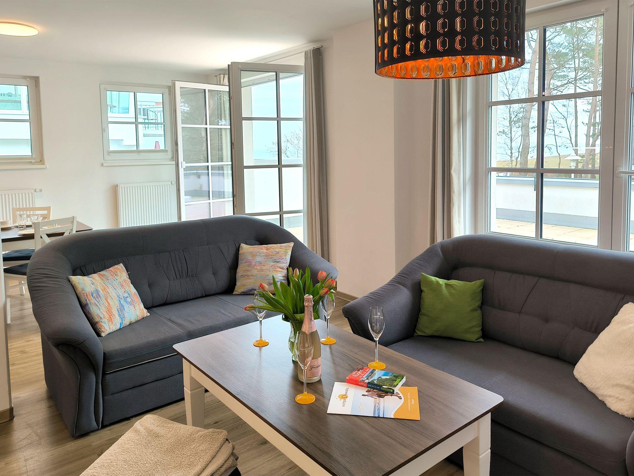 Toller Meerblick ist in dieser Anlage garantiert. 112 qm große 3 Zimmerwohnung für bis zu 6 Personen mit 2 Schlafzimmern. Die Anlage liegt direkt am Strand von Baabe. Die Anlage Inselparadies hat insgeamt 13 Ferienwohnungen und alle haben Meerblick.