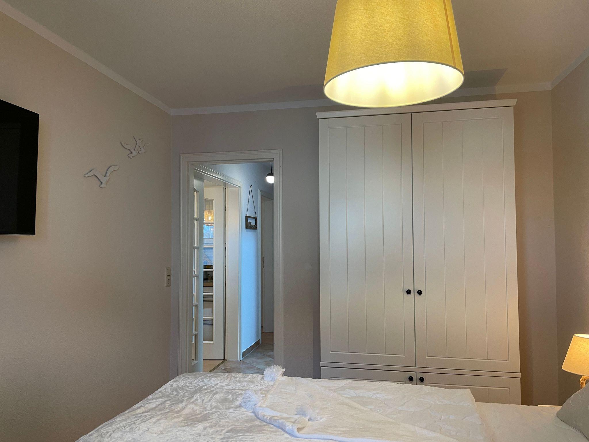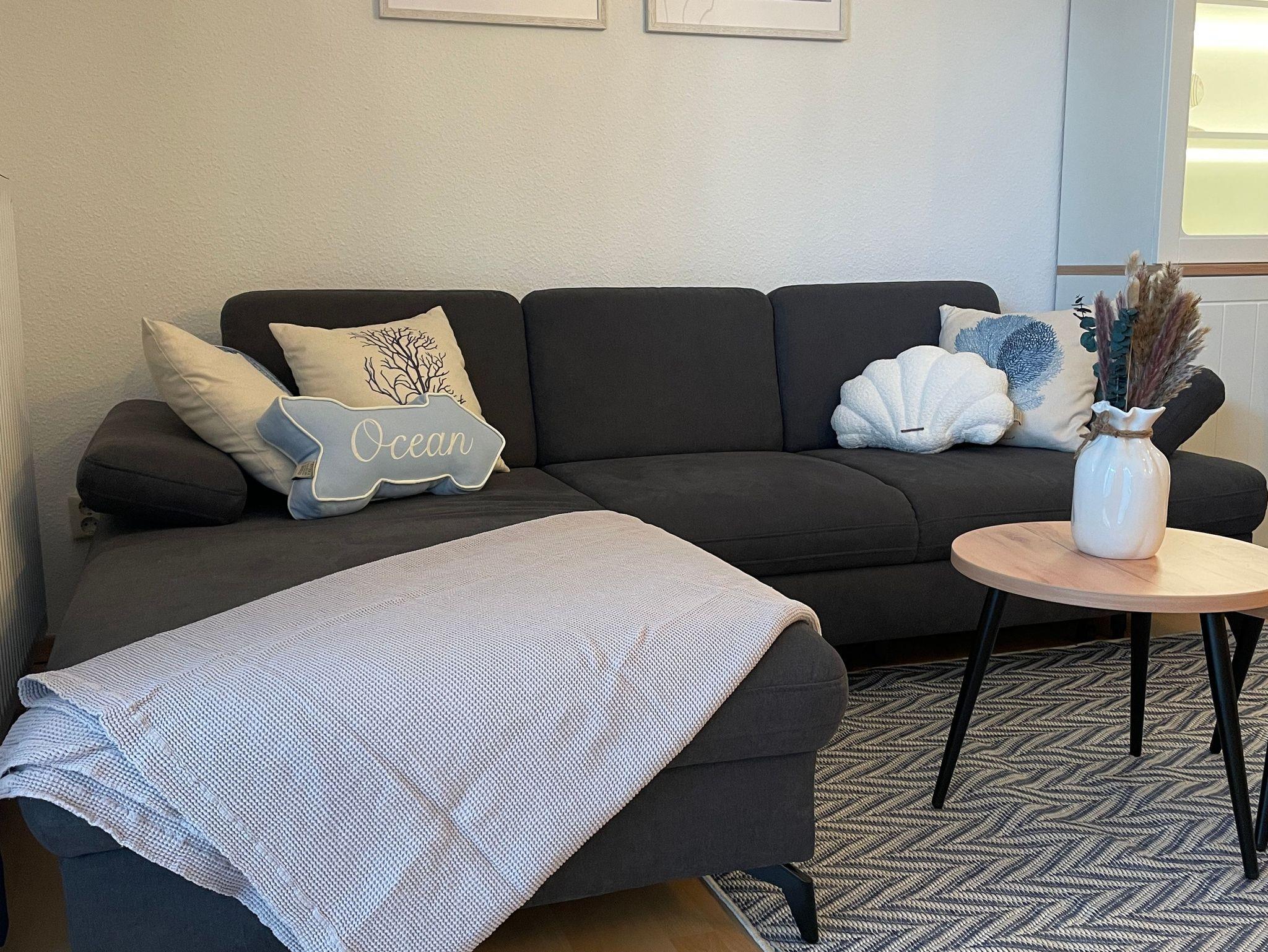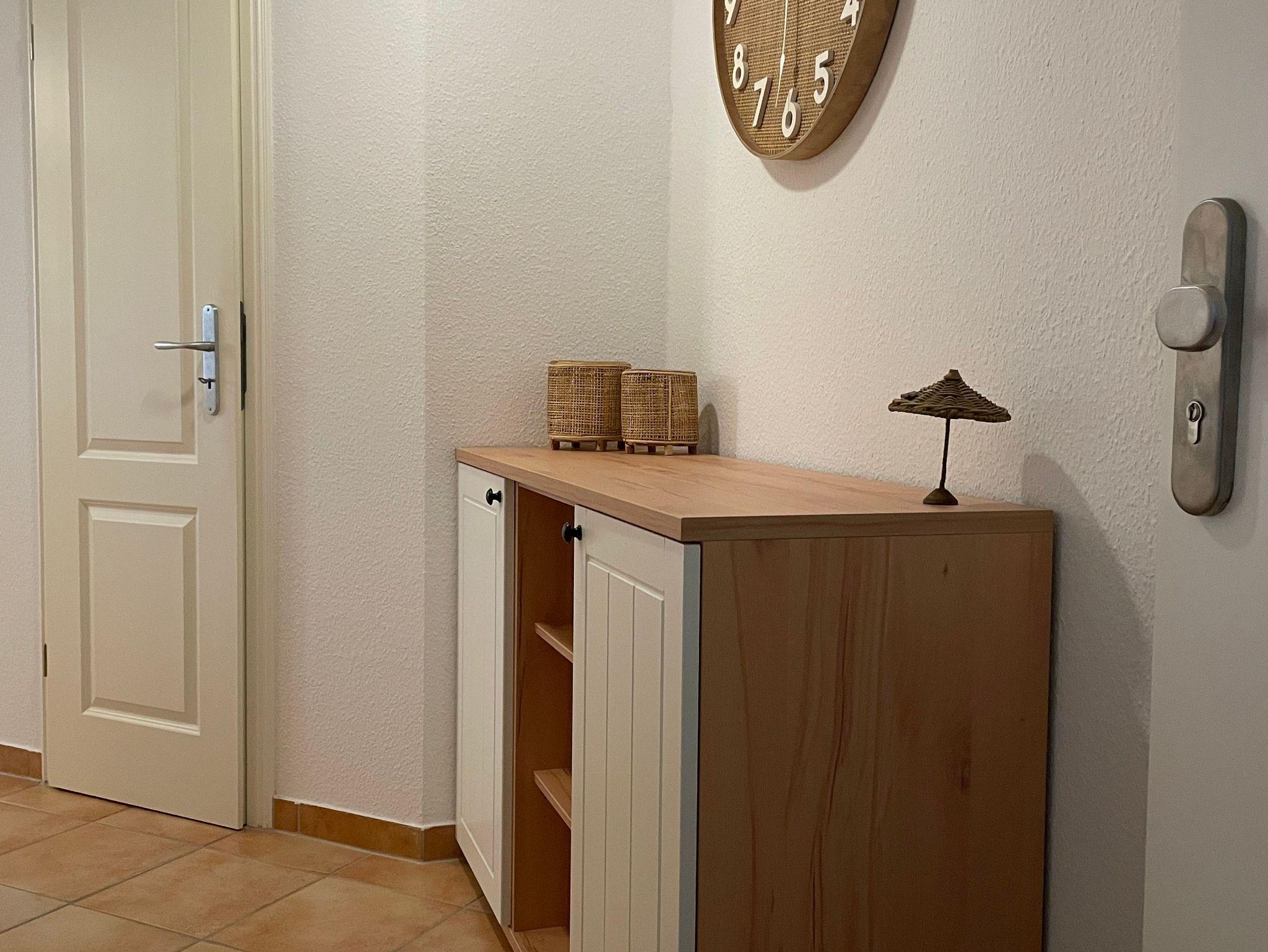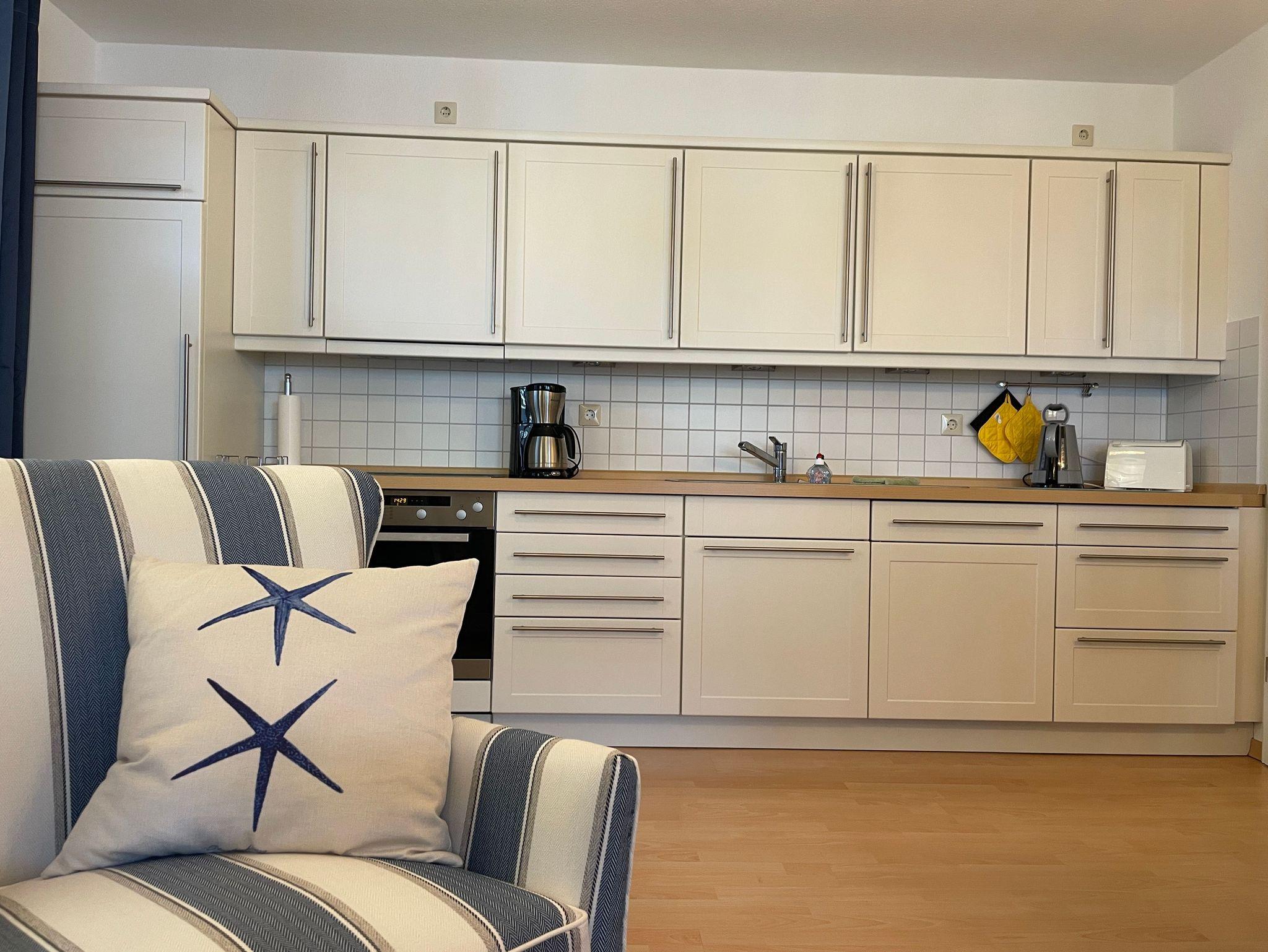 Die komfortable ca. 70 m² große 3-Raum Nichtraucherwohnung mit zwei zusätzlichen Balkonen ist ideal für max. 2 bis 4 Erwachsene + 1 Kleinkind bis 3 Jahre im Kinderreisebett geeignet. Über einen geräumigen Treppenhausflur mit Aufzug gelangen Sie direkt zur Wohnung in der 1. Etage. Von hier aus betreten Sie den Flur, der in einen hellen und offen gestalteten Wohn-/Essbereich mit bodentiefen Fenstern endet. Die gesamte Wohnung ist im maritimen Stil eingerichtet. Der Wohnbereich besticht durch eine gemütliche Atmosphäre mit einer Couch, einem Sessel, eine Stehlampe, einem Sideboard mit einem Smart-TV und einem DAB-Radio. Ein WLAN-Anschluss rundet den technischen Bereich ab. Die angrenzende komplett ausgestattete Küchenzeile mit Cerankochfeld, einem Backofen, einem großen Kühlschrank mit Gefrierfach, einem Geschirrspüler, einer Kaffeemaschine, einem Toaster, einen Wasserkocher und allen notwendigen Küchenutensilien sowie ein massiver Esstisch kompilieren den Raum. Von hier aus gelangen Sie zu Ihren bestuhlten Balkonen mit einer West- und Nord-Ausrichtung. Vom Nord-Balkon genießen Sie bei Morgensonne einen entspannenden Blick ins Grüne. Das Grillen ist auf den Balkonen nur mit Elektrogrill gestattet. Ein Sonnenschirm schützt sie vor der direkten Sonne. Das 1. Schlafzimmer ist mit einem komfortablen Boxspringbett (2,00m x 2,00m), Nachttischablagen mit Beleuchtung, einen Herrendiener und einem Kleiderschrank ausgestattet. Das 2. Schlafzimmer verfügt ebenfalls über ein Boxspringbett (1,60m x 2,00m), Nachttischablagen mit Beleuchtung, einen Herrendiener sowie einen Kleiderschrank und einen Smart-TV. Beide Schlafzimmer können abgedunkelt werden. Das moderne und innenliegende Badezimmer ist mit einer Dusche mit flachem Einstieg, einem Waschplatz, einem WC, einem beleuchteten Spiegelschrank, einer Waschmaschine, einem beheizbarem Handtuchtrockner, einem Fön und einer leistungsfähigen Entlüftungsanlage ausgestattet. Alle Räume sind mit Insektenschutzgittern versehen. Ein Staubsauger, Bügeleisen/ -brett und Reinigungsutensilien befinden sich im kleinen Abstellraum direkt in Ihrer Wohnung. Der Tiefgaragenstellplatz Nr.09 (Einfahrtshöhe 1,90m) befindet sich mit einem Zugang zum Treppenhaus/ Fahrstuhl im Untergeschoß des Hauses. Am Stellplatz steht Ihnen ein eigener ca. 6 qm großer abschließbarer Kellerraum zur Verfügung, welcher auch für E-Bikes zum Laden genutzt werden kann. Haustiere sind nicht erlaubt. Die Erstausstattung eines Wäschepaketes (komplette Bettwäsche, 1 Duschhandtuch, 1 kleines Handtuch) können Sie bis 14 Tage vor Anreise gegen einen Aufpreis dazu buchen oder durch eigene ergänzen. Ab 2 gebuchten Paketen erhalten Sie einmalig 1 Geschirrhandtuch und 1 Duschvorleger hinzu.
