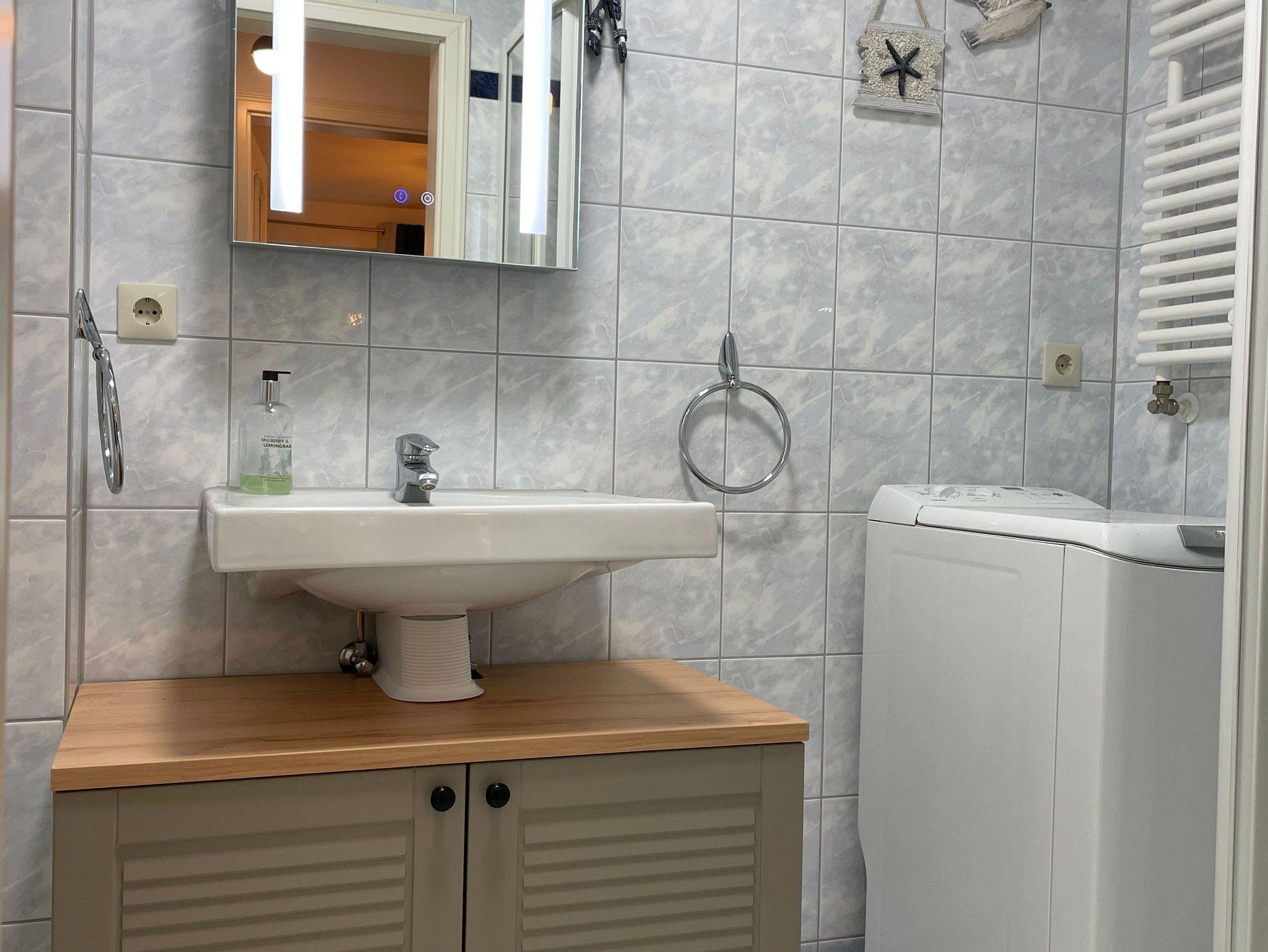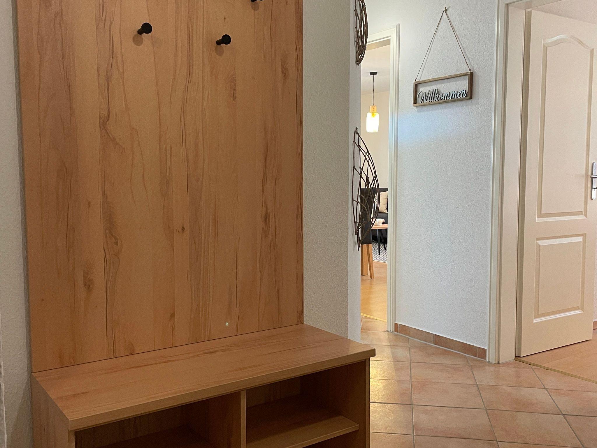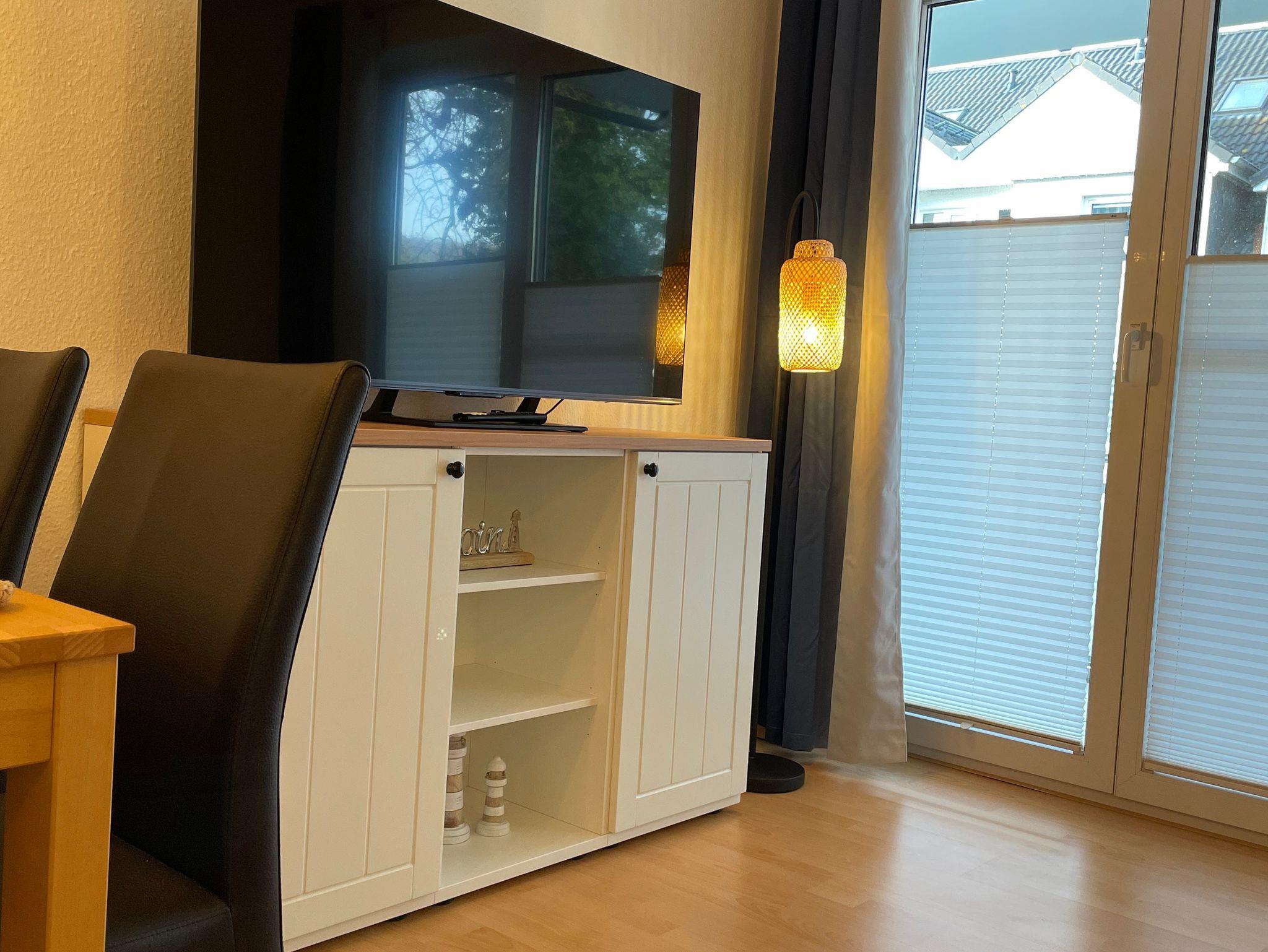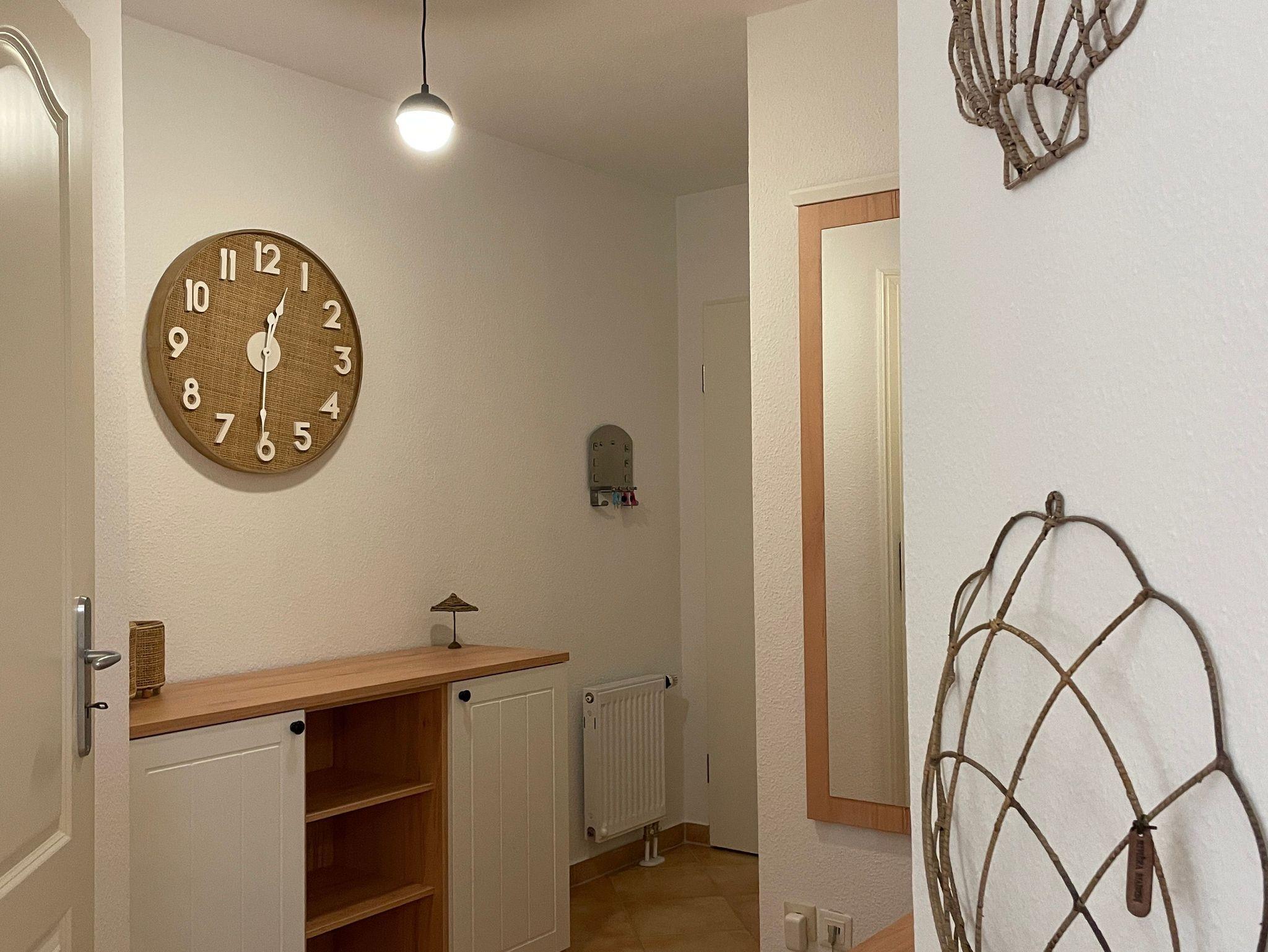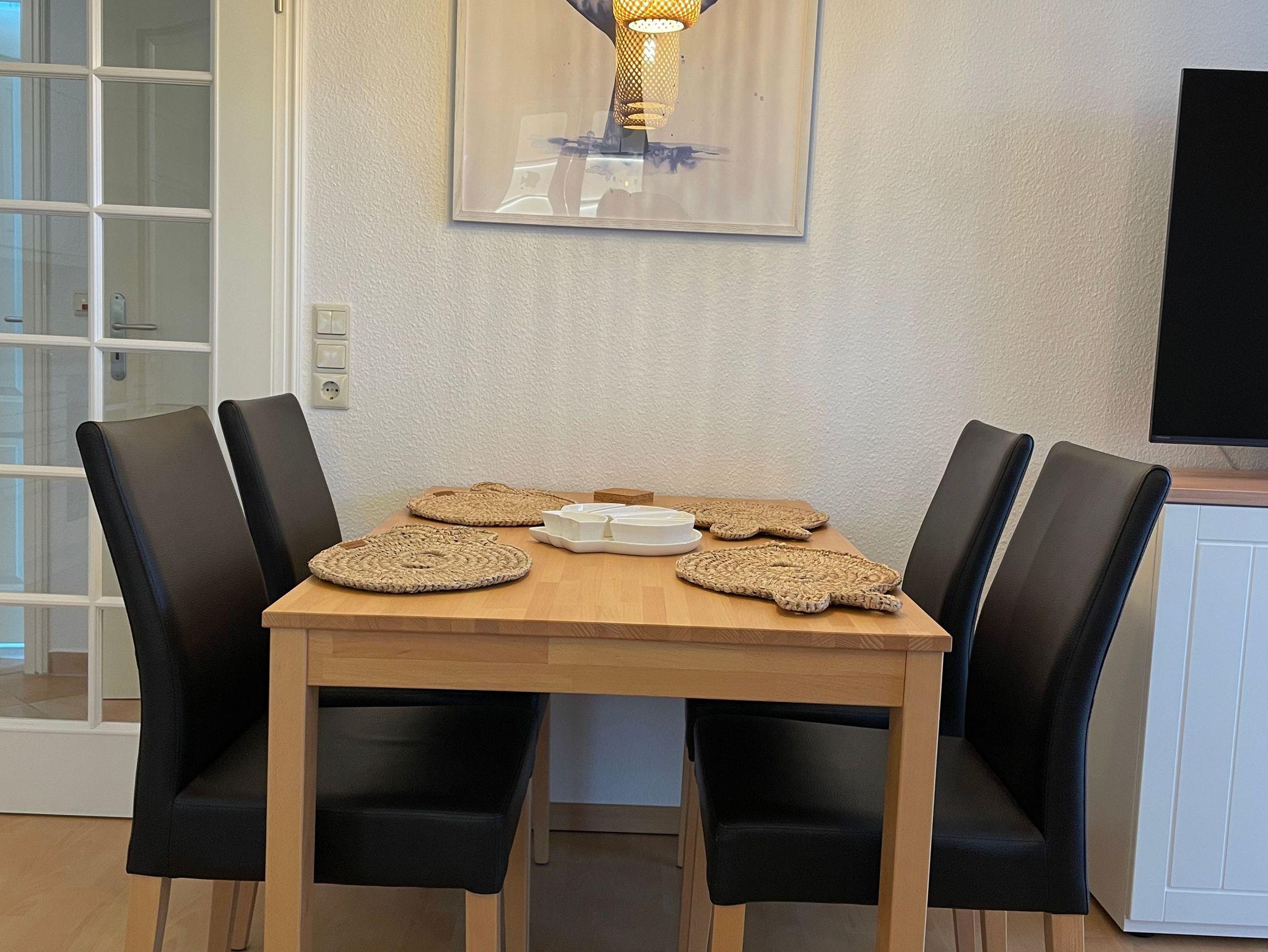 Die komfortable ca. 70 m² große 3-Raum Nichtraucherwohnung mit zwei zusätzlichen Balkonen ist ideal für max. 2 bis 4 Erwachsene + 1 Kleinkind bis 3 Jahre im Kinderreisebett geeignet. Über einen geräumigen Treppenhausflur mit Aufzug gelangen Sie direkt zur Wohnung in der 1. Etage. Von hier aus betreten Sie den Flur, der in einen hellen und offen gestalteten Wohn-/Essbereich mit bodentiefen Fenstern endet. Die gesamte Wohnung ist im maritimen Stil eingerichtet. Der Wohnbereich besticht durch eine gemütliche Atmosphäre mit einer Couch, einem Sessel, eine Stehlampe, einem Sideboard mit einem Smart-TV und einem DAB-Radio. Ein WLAN-Anschluss rundet den technischen Bereich ab. Die angrenzende komplett ausgestattete Küchenzeile mit Cerankochfeld, einem Backofen, einem großen Kühlschrank mit Gefrierfach, einem Geschirrspüler, einer Kaffeemaschine, einem Toaster, einen Wasserkocher und allen notwendigen Küchenutensilien sowie ein massiver Esstisch kompilieren den Raum. Von hier aus gelangen Sie zu Ihren bestuhlten Balkonen mit einer West- und Nord-Ausrichtung. Vom Nord-Balkon genießen Sie bei Morgensonne einen entspannenden Blick ins Grüne. Das Grillen ist auf den Balkonen nur mit Elektrogrill gestattet. Ein Sonnenschirm schützt sie vor der direkten Sonne. Das 1. Schlafzimmer ist mit einem komfortablen Boxspringbett (2,00m x 2,00m), Nachttischablagen mit Beleuchtung, einen Herrendiener und einem Kleiderschrank ausgestattet. Das 2. Schlafzimmer verfügt ebenfalls über ein Boxspringbett (1,60m x 2,00m), Nachttischablagen mit Beleuchtung, einen Herrendiener sowie einen Kleiderschrank und einen Smart-TV. Beide Schlafzimmer können abgedunkelt werden. Das moderne und innenliegende Badezimmer ist mit einer Dusche mit flachem Einstieg, einem Waschplatz, einem WC, einem beleuchteten Spiegelschrank, einer Waschmaschine, einem beheizbarem Handtuchtrockner, einem Fön und einer leistungsfähigen Entlüftungsanlage ausgestattet. Alle Räume sind mit Insektenschutzgittern versehen. Ein Staubsauger, Bügeleisen/ -brett und Reinigungsutensilien befinden sich im kleinen Abstellraum direkt in Ihrer Wohnung. Der Tiefgaragenstellplatz Nr.09 (Einfahrtshöhe 1,90m) befindet sich mit einem Zugang zum Treppenhaus/ Fahrstuhl im Untergeschoß des Hauses. Am Stellplatz steht Ihnen ein eigener ca. 6 qm großer abschließbarer Kellerraum zur Verfügung, welcher auch für E-Bikes zum Laden genutzt werden kann. Haustiere sind nicht erlaubt. Die Erstausstattung eines Wäschepaketes (komplette Bettwäsche, 1 Duschhandtuch, 1 kleines Handtuch) können Sie bis 14 Tage vor Anreise gegen einen Aufpreis dazu buchen oder durch eigene ergänzen. Ab 2 gebuchten Paketen erhalten Sie einmalig 1 Geschirrhandtuch und 1 Duschvorleger hinzu.