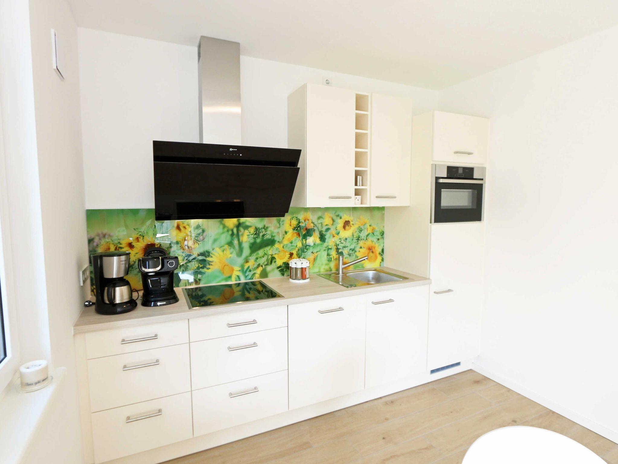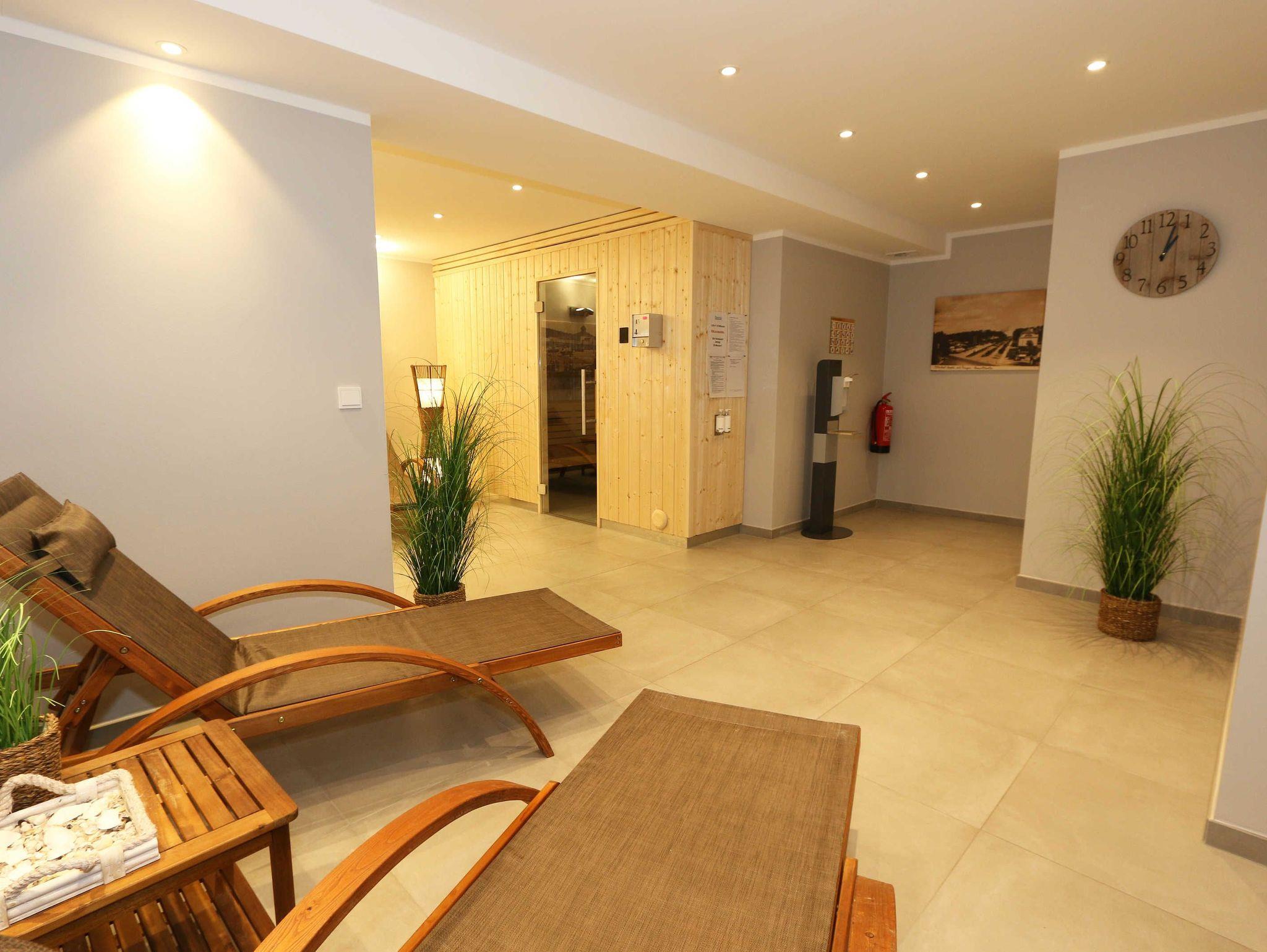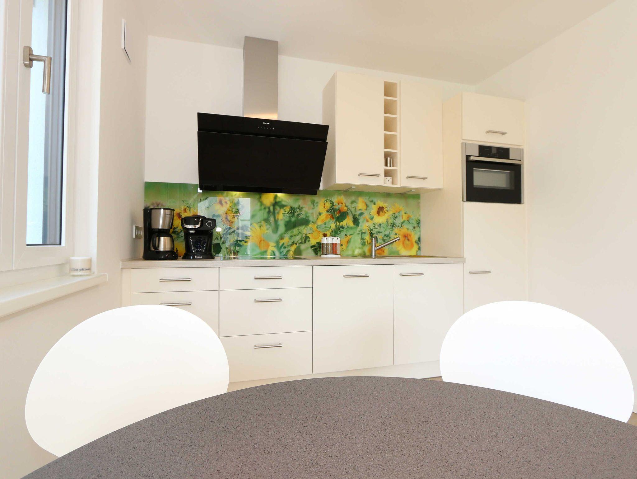 Die lichtdurchflutete Zwei-Raum-Komfort-Wohnung befindet sich mit Ihren 50 m² in der 2.Etage der Villa Strandläufer und kann bequem mit dem Fahrstuhl erreicht werden. Die moderne und freundliche Nichtraucherferienwohnung „Sonnenschein“ ist für max. 2 Personen ausgelegt. Im Wohnbereich befindet sich eine gemütliche Eckcouch mit Couchtisch, einen Sessel sowie einer Vitrine. Zum technischen Bereich gehören ein Smart-TV mit integriertem Radio, USB-Anschluss und Bluetooth sowie ein WLAN-Verbindung. Auch eine kleine Auswahl an Gesellschaftsspielen und an Literatur steht für Sie bereit. Der Küchenbereich schließt sich hier mit der modern und zweckmäßig ausgestatteten Küchenzeile an. Zur hochwertigen Ausstattung gehören ein Geschirrspüler, autarkes Elektro-Kochfeld mit 4 Zonenceranfeld, Spüle, Kühlschrank mit Eisfach, Kompaktbackofen mit Mikrowelle, Einbaukühlschrank, Dunstabzugshaube, Wasserkocher, Toaster, Kaffeemaschine mit Thermoskanne, Pad-Kaffeemaschine (Tassimo) sowie ein Essplatz mit Radio. Vom Wohn- und Essbereich haben Sie einen entspannten Ausblick auf die Kiefernbestände wo Sie auf dem bestuhlten Balkon (ideal mit Süd/West Ausrichtung) die Sonne wunderbar genießen bzw. den Tag gemütlich beim Sonnenuntergang ausklingen lassen können. Das gemütliche Schlafzimmer verfügt über ein Doppelbett (1,80m x 2,00m), verstellbare Lattenroste, Nachttischablagen, Smart-TV mit integriertem Radio, USB-Anschluss, Bluetooth und Kleiderschrank mit Spiegelfront. Für einen ruhigen und entspannten Schlaf sorgen entsprechende Verdunklungsplissee´s sowie Insektenschutzgitter, die auch im Wohn- und Essbereich vorhanden sind. Das Bad wird durch eine ebenerdige Regendusche, Waschtisch, WC, Spiegel, Fön und einem Handtuchtrockner abgerundet. Zusätzlich verfügt die Wohnung über ein separates Gäste-WC und einen kleinen Abstellraum im Eingangsbereich mit diversen Reinigungsutensilien, ein Bügelbrett und ein Bügeleisen. Zu dem Villen-Ensembles gehören ein Wellnessbereich mit einer Gemeinschaftssauna, ein Waschraum mit Waschmaschinen und Trocknern, die gegen Gebühr bei Bedarf gern von Ihnen genutzt werden können. Haustiere sind nicht erlaubt. Ein Stellplatz (Nr.06/Sonnenschein) in der Tiefgarage (Einfahrtshöhe 2,00m) ist für Sie inklusive. Die Erstausstattung eines Wäschepaketes (komplette Bettwäsche, 1 Duschhandtuch, 2 kleine Handtücher) können Sie bis 14 Tage vor Anreise gegen einen Aufpreis dazu buchen oder durch eigene ergänzen. Ab 2 gebuchten Paketen erhalten Sie einmalig 1 Geschirrhandtuch und 1 Duschvorleger hinzu. Wir würden uns freuen, Sie in der Ferienwohnung „Sonnenschein“ in der Villa Standläufer begrüßen zu dürfen.