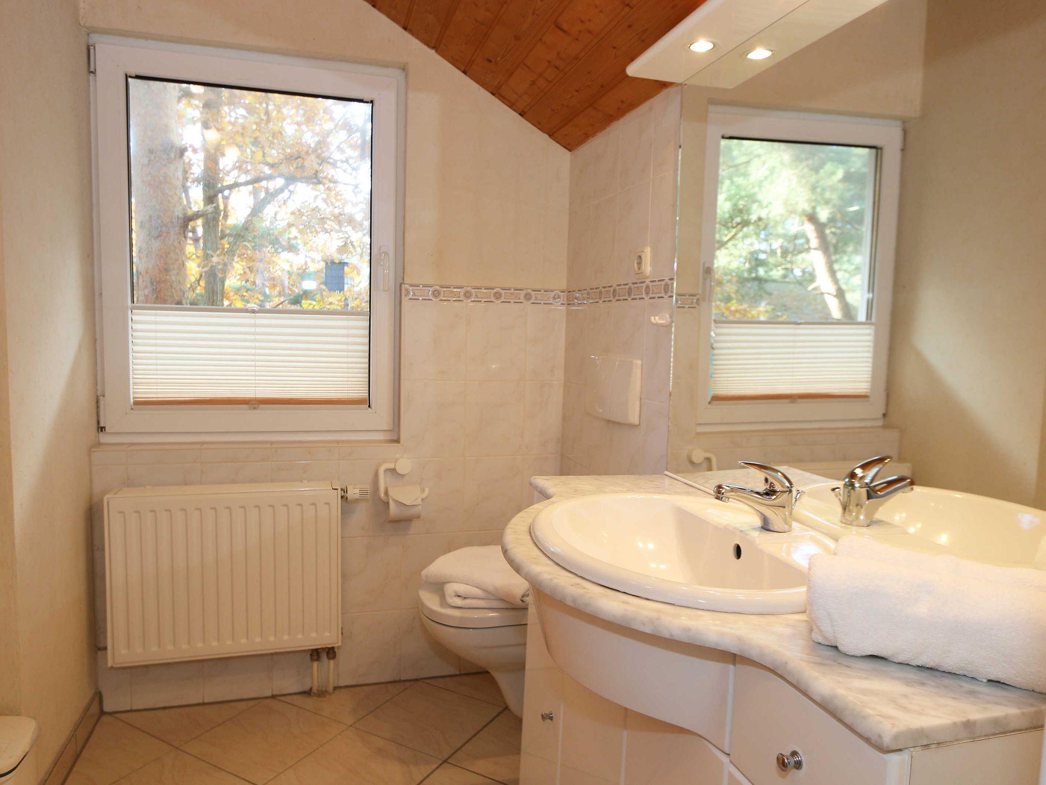 Herzlich Willkommen in unserem Strandhaus im schönen Ostseebad Baabe auf Rügen! Unser 75 m² großes alleinstehendes Standhaus im Schwedenstil (Nichtraucher, 2 bis 6 Erwachsene + 1 Kleinkind bis 3 Jahre im Kinderreisebett) liegt nah am Strand, direkt im Dünenwald von Baabe. Das Holzhaus ist gemütlich mit viel hellem Naturholz eingerichtet und gleichzeitig modern, komfortabel und voll ausgestattet. Dazu zählen wir sowohl die moderne Komfortküche mit Ceran-Herd, Backofen, Mikrowelle, Geschirrspüler, Kühlschrank mit Eisfach, Getränkekühlschrank, Kaffeemaschine, Wasserkocher, Toaster, Reinigungsutensilien und mehr als auch den Wohnkomfort einer Fußbodenheizung, der LCD-Fernseher in HD-Qualität, Satelliten-Anschluss für hohe Programmvielfalt und ein DVD-Player mit Radio. Ein gemütlicher großer Wohnbereich und Kamin (Kaminholz inklusive) mit Sichtfenster rundet unsere Einrichtung ab. Und damit Sie Ihren Urlaub bei uns ganz entspannt genießen können, sind alle Kosten für Strom, Wasser und Heizung sowie das WLAN bereits im Preis inklusive! Die hauseigene Sauna mit Ruhebereich finden Sie im Untergeschoss des Hauses. Das Haus verfügt über insgesamt vier Schlafzimmer. Zwei Schlafzimmer sind mit Doppelbett (2 x Boxspringbetten je 0,80 m x 2,00 m zusammengestellt) und Kleiderschrank ausgestattet und bieten ausreichend Platz für 1 zusätzliches Kinderreisebett (inklusive Matratze). Das dritte Schlafzimmer verfügt über zwei Boxspringbetten (je 0,80 m x 2,00 m) ? die man auch zusammenstellen kann und Kleiderschrank. Das vierte Schlafzimmer, im EG, verfügt über ein Einzelbett (Boxspringbett) und eine Kommode. Im Obergeschoss befindet sich ein Tageslicht-Bad mit großem Spiegel, WC, Dusche und Haartrockner. Im Untergeschoss befindet sich ein Bad mit einer Sauna, WC, Spiegel und Dusche. Am Wohn-/ Essbereich schließt sich die überdachte Terrasse (Süd/West) mit Tisch, Stühlen und Gartengrill an. Eine kleine Waschküche, im UG mit Waschmaschine steht Ihnen inklusive zur Verfügung. Ein eigener PKW-Stellplatz Nr. 39a gehört zum Strandhaus. Haben Sie ein Haustier, das Sie mitbringen möchten? Gerne ist dies gegen eine Gebühr möglich. Sind Sie vor Ort, so haben wir für Sie weitere zusätzliche Angebote (gegen Gebühr) direkt im Dünenpark. In unserem Backshop selbst erhalten Sie In der Saison täglich frisch: Brötchen, Lebensmittel, Tageszeitungen, Frühstück, Kaffee & Kuchen und mehr (Schließzeiten immer vom 07.01. - 1 Woche vor Ostern). Die Erstausstattung eines Wäschepaketes (komplette Bettwäsche, 1 Duschhandtuch, 2 kleine Handtücher) können Sie bis 14 Tage vor Anreise gegen einen Aufpreis dazu buchen oder durch eigene ergänzen. Ab 2 gebuchten Paketen erhalten Sie einmalig 1 Geschirrhandtuch und 1 Duschvorleger hinzu. Wir freuen uns auf Ihren Besuch!
