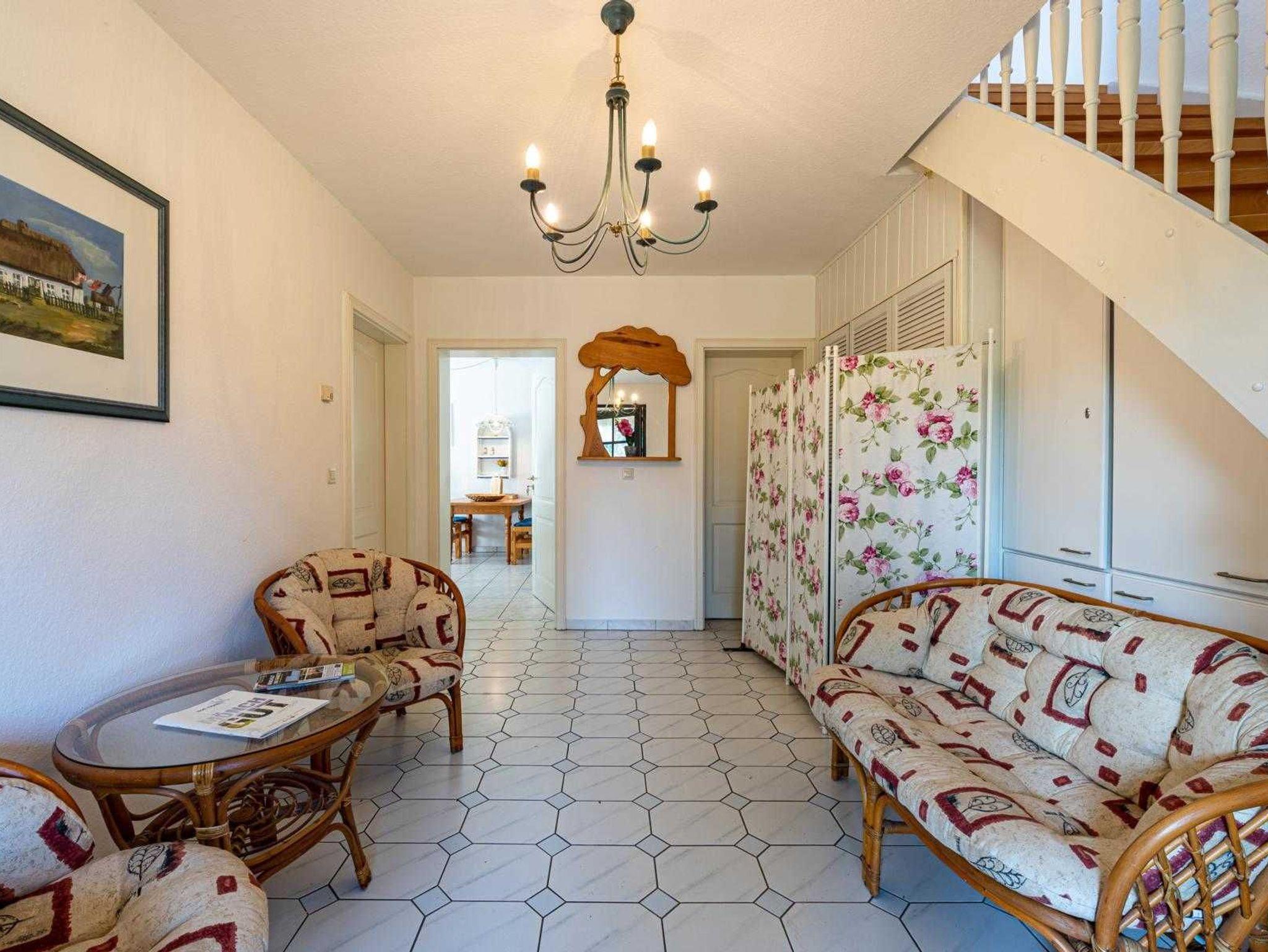 Diese Ferienwohnung befindet sich im Obergeschoss des Reet gedeckten Ferienhauses im Ostseebad Baabe. Über eine separate Treppe gelangen sie in das Obergeschoss.