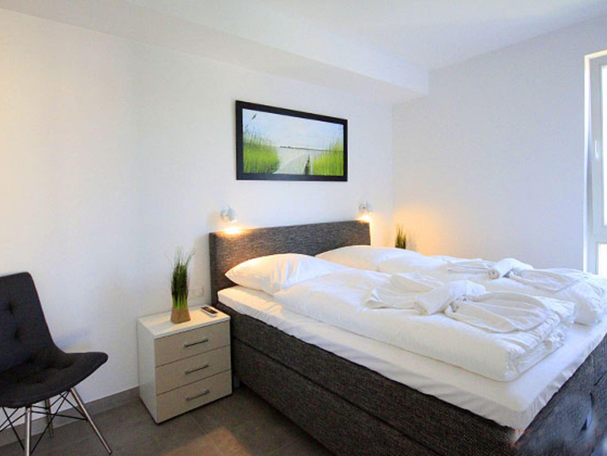 Die 72 qm große Wohnung ist wie folgt aufgeteilt: 1 Schlafzimmer mit Doppelbett (Boxspringbett), Flachbild-TV und DVD Player, 1 Schlafzimmer mit zwei Einzelbetten, die jedoch auch zu einem Doppelbett zusammengeschoben werden können. Auch hier gibt es einen Flachbildfernseher. In beiden Schlafzimmern befindet sich ein großer Kleiderschrank. Das Badezimmer ist das Highlight der Wohnung: Hier befindet sich neben der Whirlpool-Wanne (Jaccuzzi) und der ebenerdigen Dusche auch eine Sauna.
