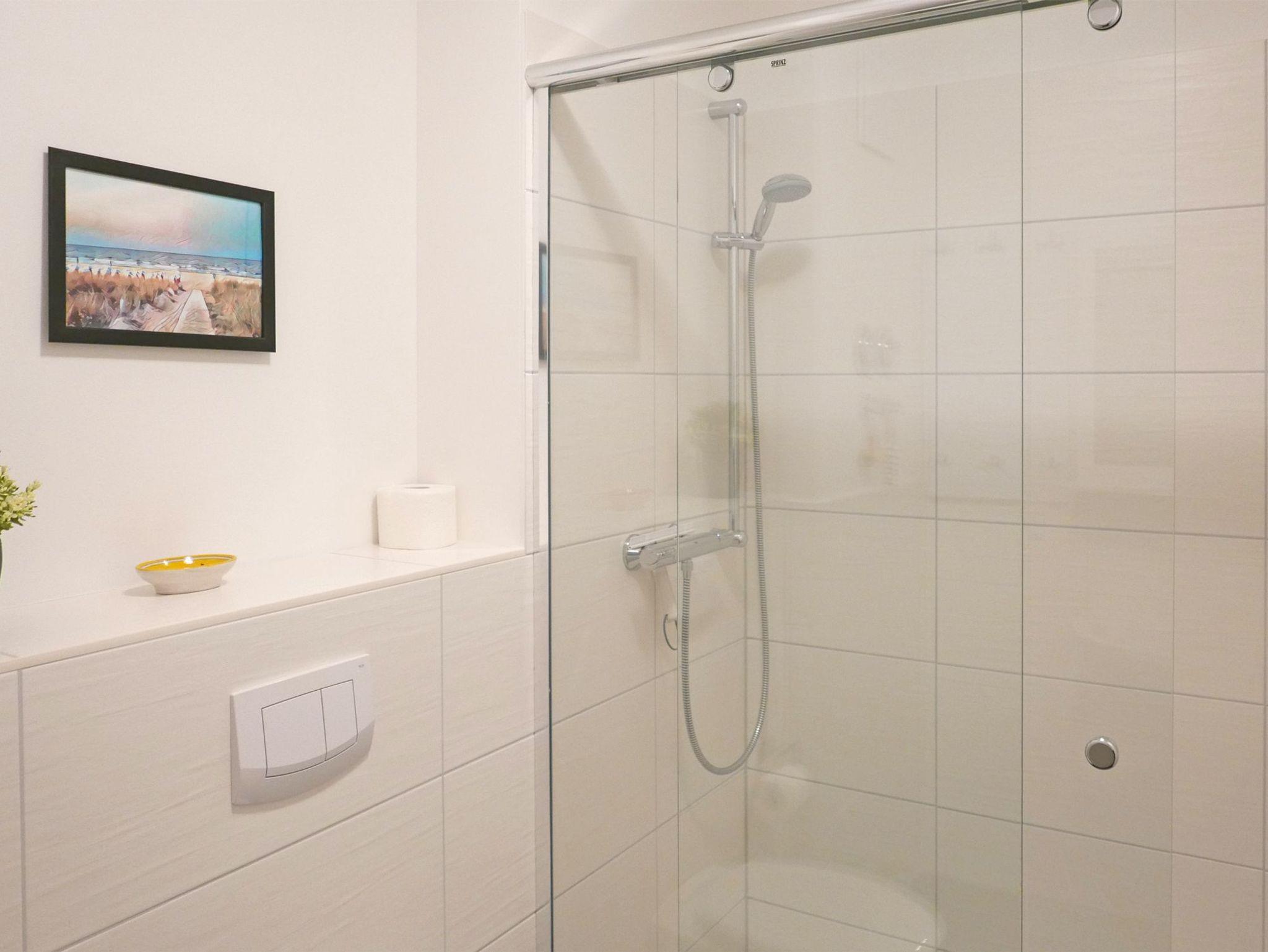 Schöne helle 2 Zimmer Ferienwohnung für bis zu 2 Personen, mit Meerblick vom Wohnzimmer und Balkon aus in der kleinen Residenz Inselparadies, direkt am Meer gelegen. Insgesamt sind es nur 13 Wohneinheiten, alle mit Balkon zum Meer liegen und erst im Jahr 2017 eröffnet wurde . In der unteren Etage befinden sich kleine Geschäfte und das Cafe Zeit. Zu jeder Wohnung gehört ein Tiefgaragenstellplatz.