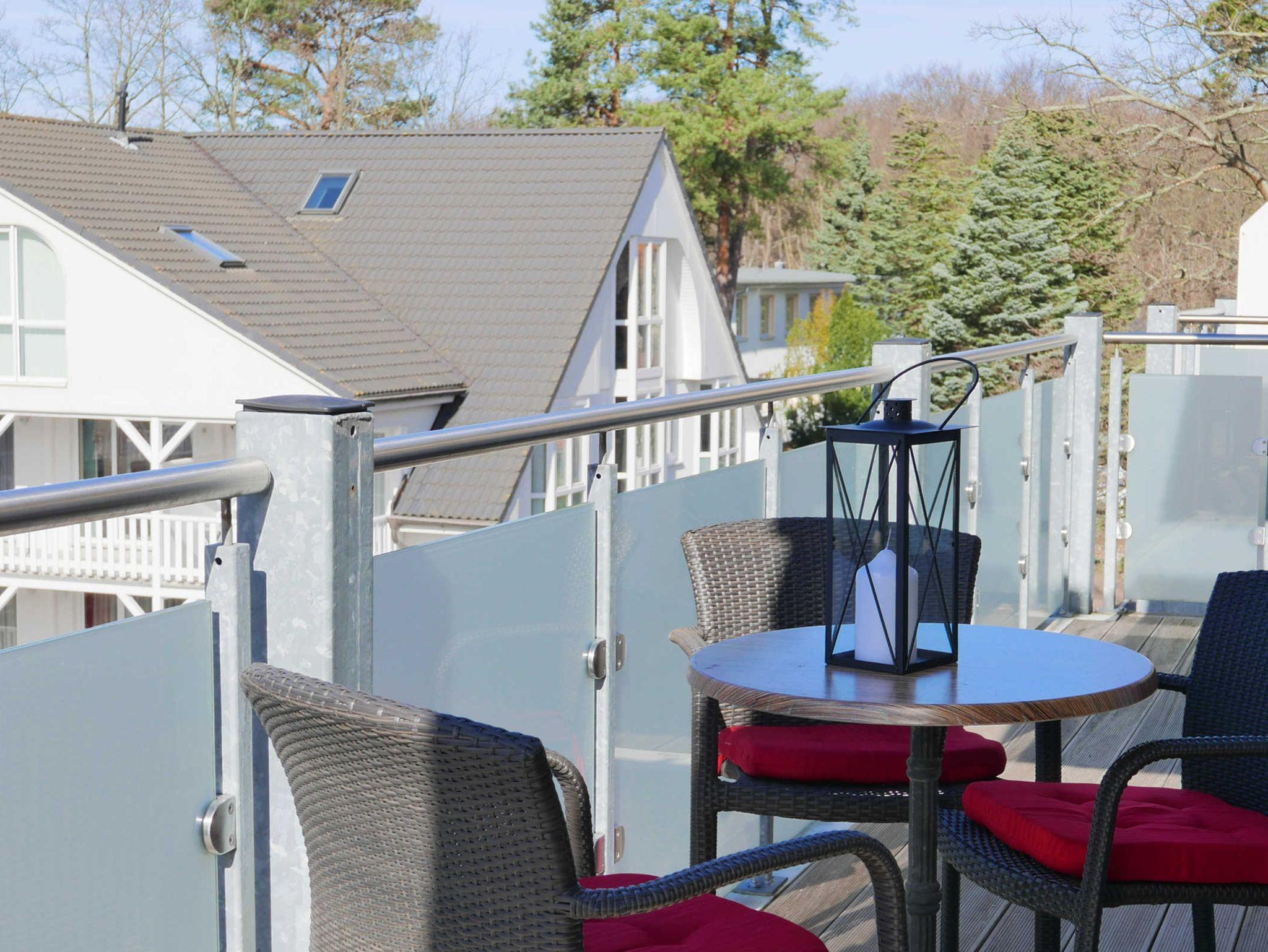 Ein Highlight ist die große überdachte Terrasse, auf der man den Abend ausklingen lassen kann und die Ostsee beobachten. Nachmittags kann man auf der rückwärtigen Terrasse einen Kaffee im Sonnenschein trinken