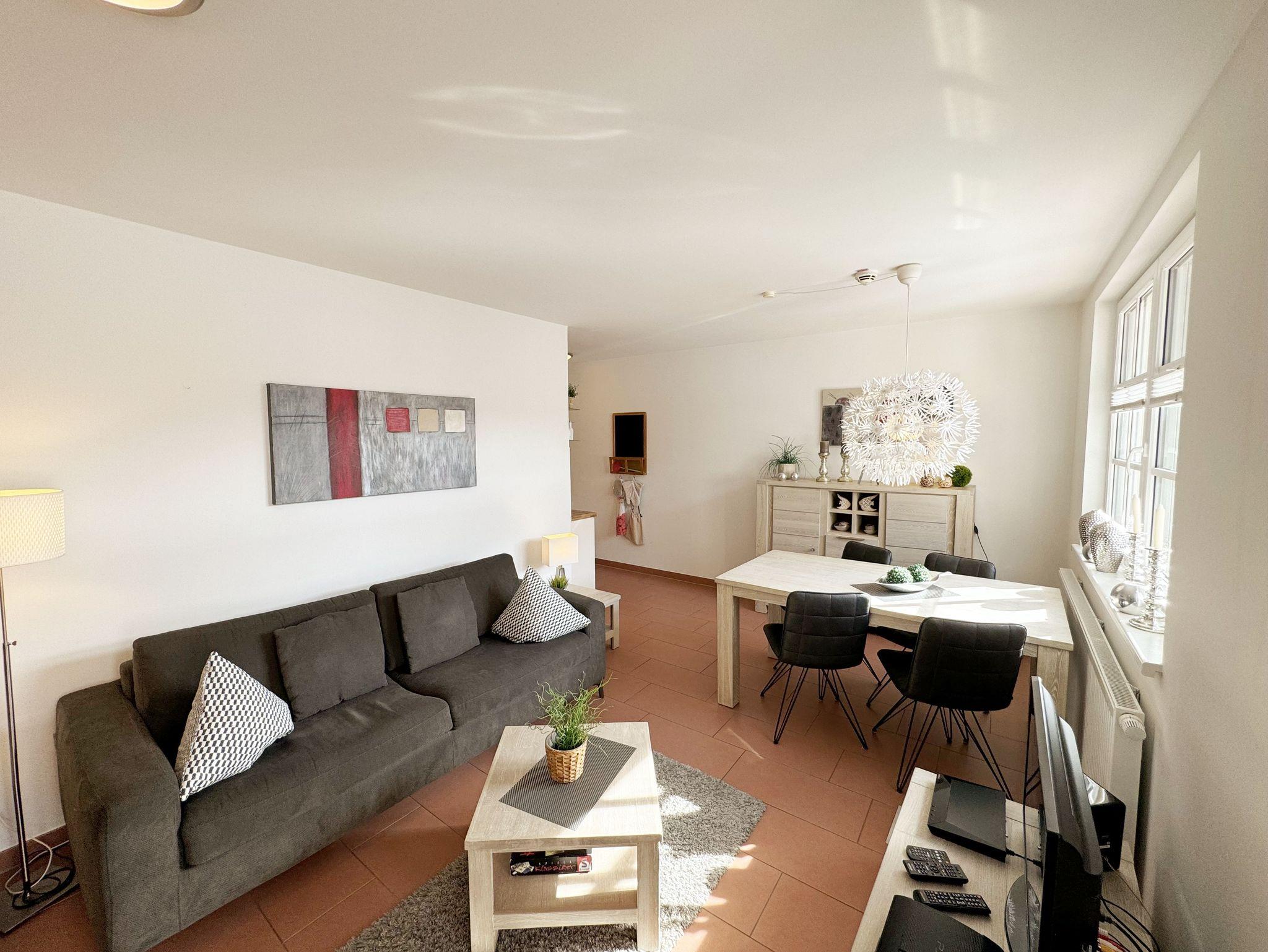 Unser geräumiges ca. 54 qm großes Appartement Nordlicht befindet sich in der 3. Etage und ist für 2 bis 4 Personen geeignet. Von der Tiefgarage aus erreichen Sie ganz bequem mit dem Fahrstuhl Ihre Ferienwohnung. Sie finden hier einen kombinierten Wohn- und Essbereich mit offener Küchenzeile. Diese ist voll ausgestattet mit Ceranfeld, Backofen, Spülmaschine, Kühl/Gefrierkombination, Mikrowelle, einen Kaffeevollautomaten sowie weitere diverse praktische Küchenutensilien. Der Lichtdurchflutete und offene Wohnbereich mit seinen großen Fensterfronten bietet Ihnen eine gemütliche Couch (Liegefläche 1,60 m x 2,00 m) die sich mit wenigen Handgriffen zur Schlafstätte für die 3. und 4. Person umfunktionieren lässt. Dazu gehören 2 passende Sessel, ein Esstisch mit 4 Stühlen, ein großes Sideboard mit Smart-TV, DVD-Player und einer Musikanlage mit iPhone-Dockingstation. Ein Internetanschluss (WLAN/LAN) steht Ihnen inklusive zur Verfügung. Im Schlafzimmer finden Sie ein hochwertiges Boxspringbett (Liegefläche 1,80m x 2,00m) zwei Nachttischkonsolen, einen großen Schwebetürenkleiderschrank, Ganzkörperspiegel sowie einen LCD-Kabel-TV. Vom Wohn- und Schlafbereich haben Sie Zugang zur geräumigen Dachterrasse, die in Richtung Süden liegt und mit komfortablen Gartenmöbeln für 4 Personen ausgestattet ist. Im Badezimmer finden Sie eine ebenerdige Klarglasdusche, einen Waschtisch, Handtuchtrockner, Wand- und Kosmetikspiegel, einen Haartrockner und ein WC. Zusätzlich befinden sich im Abstellraum der Wohnung ein Bügelbrett, ein Bügeleisen und diverse weitere Utensilien. 1x Kinderreisebett (ohne Matratze und Bett Inlett) sowie 1x Hochstuhl stehen Ihnen kostenfrei zur Verfügung. Waschmaschine und Trockner stehen Ihnen im Keller des Hauses gegen eine Gebühr zu Verfügung. Mit dem Fahrstuhl des Hauses A gelangen sie in das Untergeschoss der Meeresblickanlage, wo Sie ein großzügiger und heller Wellnessbereich erwartet. Hier können sie in einem Pool kleine Bahnen schwimmen, in 2 Saunen Ihren Kreislauf in Schwung bringen, in einem dazugehörigen Ruheraum Ihren Körper wieder beruhigen, in einer Schneckendusche sowie weiteren Duschen das kühle Nass genießen und auf einer Außenterrasse mit Außendusche die frische Luft einatmen. Ein eigener Strandkorb ist für Sie saisonbedingt und wetterabhängig von Mai bis September am Meer reserviert. Ein PKW-Stellplatz (Nr.53, Einfahrtshöhe 2,00m) ist für Sie in der Tiefgarage reserviert. Haustiere sind in dieser Wohnung nicht erlaubt. Die Erstausstattung eines Wäschepaketes (komplette Bettwäsche, 1 Duschhandtuch, 2 kleine Handtücher) können Sie bis 14 Tage vor Anreise gegen einen Aufpreis dazu buchen oder durch eigene ergänzen. Ab 2 gebuchten Paketen erhalten Sie einmalig 1 Geschirrhandtuch und 1 Duschvorleger hinzu.