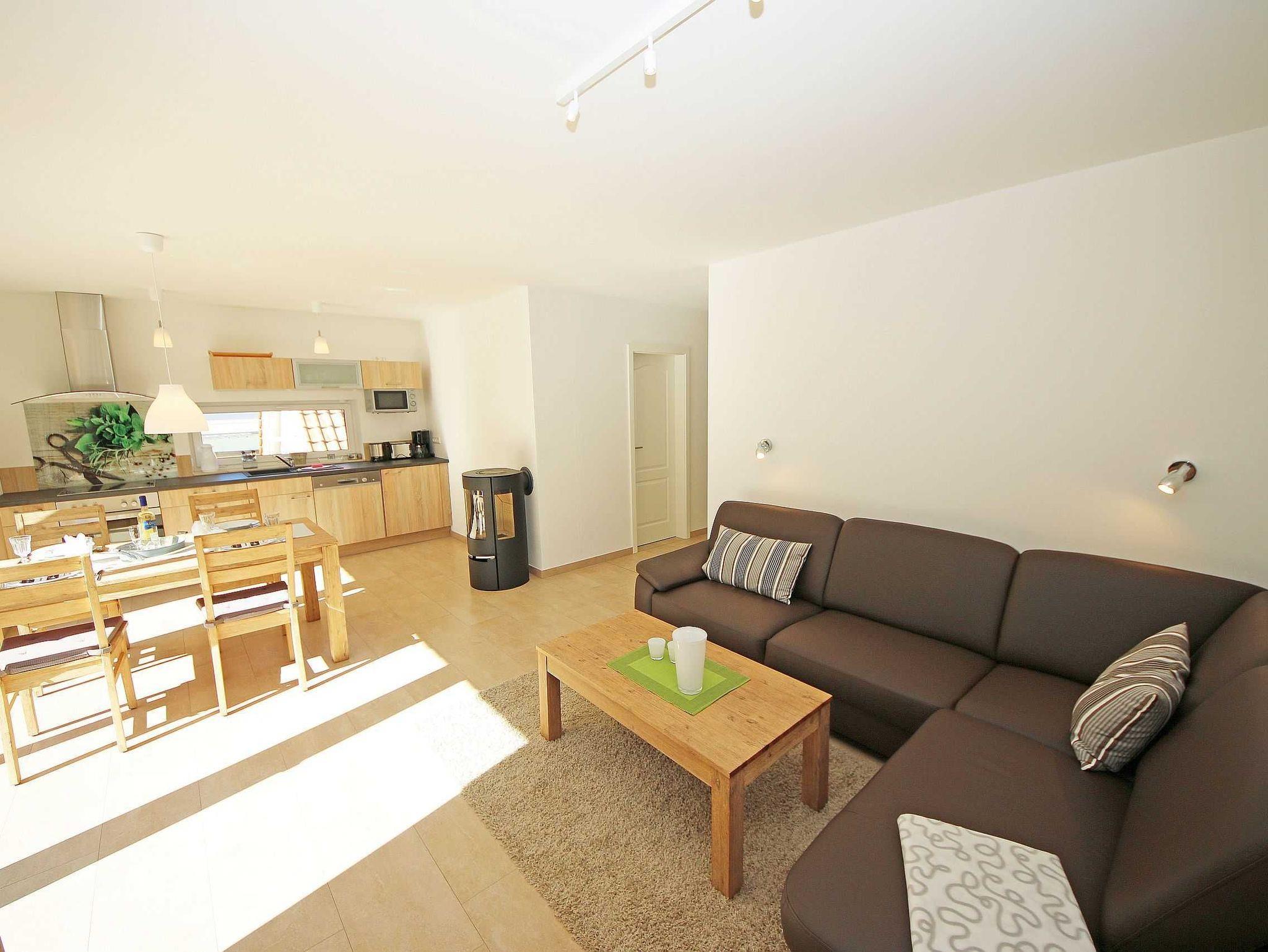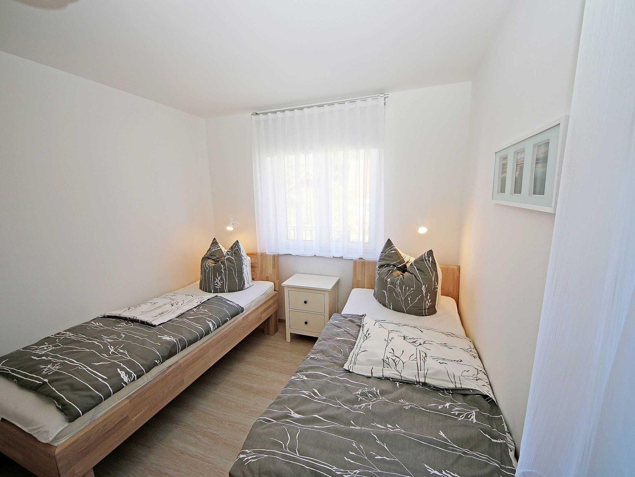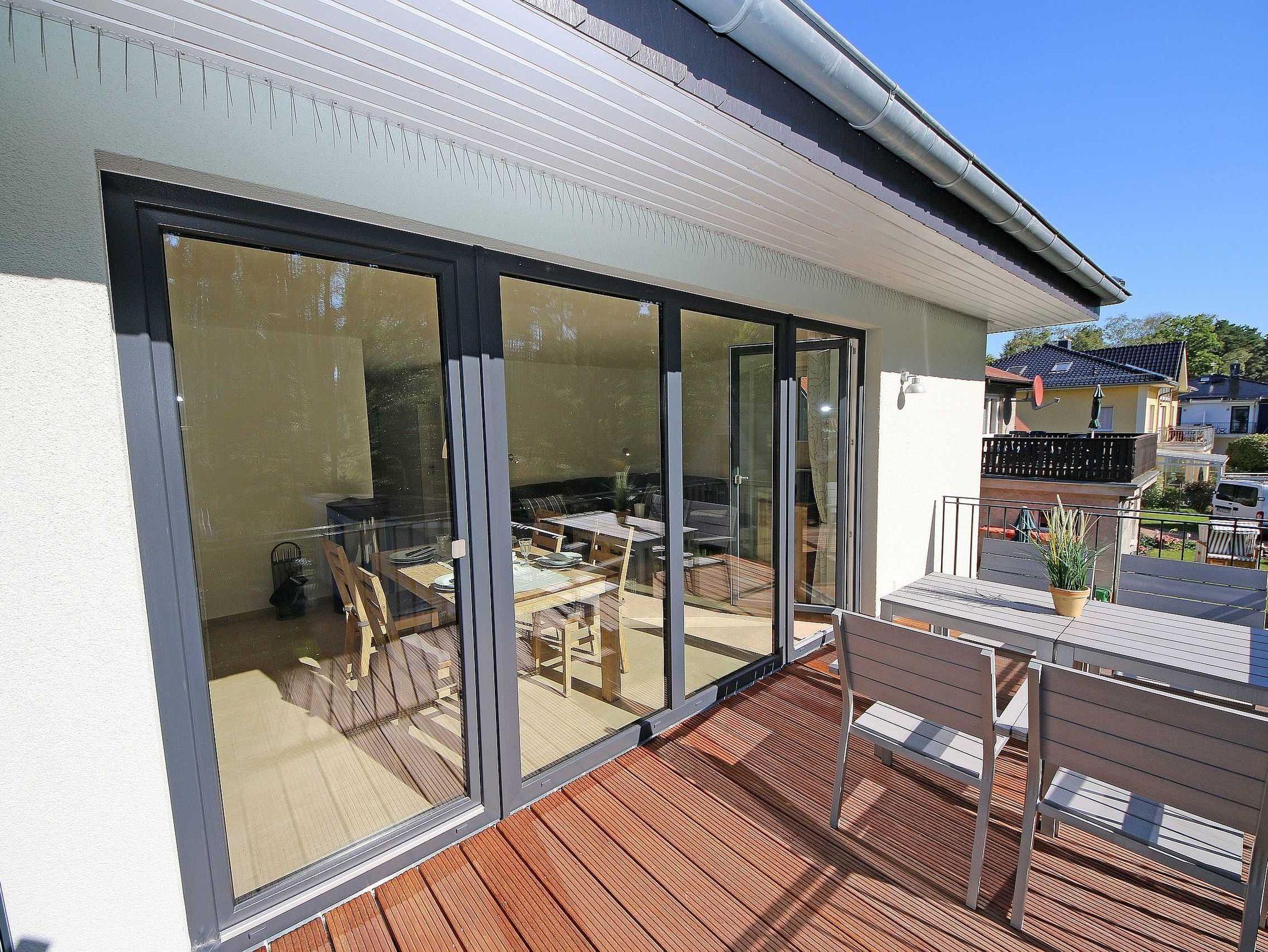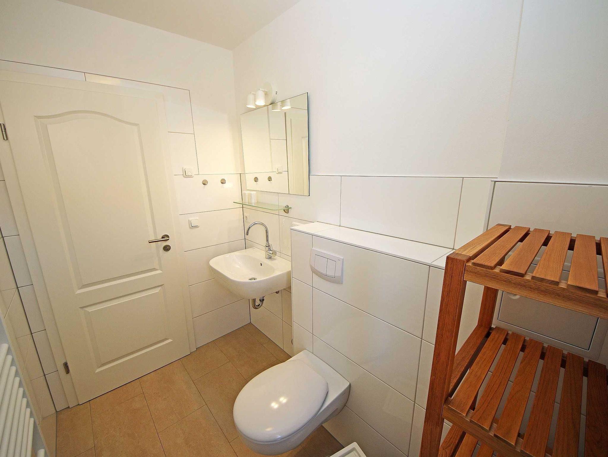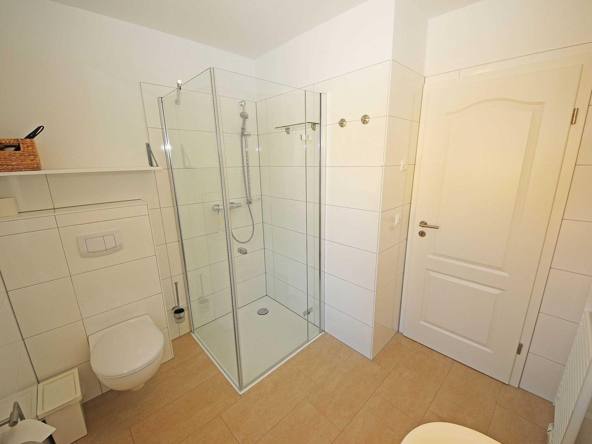 Die gebaute, modern eingerichtete Ferienwohnung hat eine Größe von ca. 65 qm und ist mit ausgewählten Stilelementen versehen. Sie bietet Platz für 2 bis 4 Erwachsene und 1 Kleinkind bis 3 Jahre im Kinderreisebett. Die Allergikerfreundliche Nichtraucherwohnung befindet sich im Obergeschoss. Zu der Wohnung gehört ein bestuhlter und mit Sonnenschirm versehener Balkon mit Blick in den Küstenwald. Ein Grillplatz befindet sich im Gartenbereich. Der Wohnbereich ist mit einer gemütlichen Eckcouch (Leder), Couchtisch; Leselampe sowie Sideboard ausgestattet. Zu den Unterhaltungsmöglichkeiten in den Abendstunden oder bei schlechtem Wetter gehören ein Smart-TV, Blu-Ray-Player sowie eine Hi-Fi Kompaktanlage mit CD- und USB-Anschluss. Auch auf einen Internetanschluss (WLAN) brauchen Sie nicht verzichten. Dieser ist inklusive. Ein Kaminofen für wohlige Wärme rundet die Gemütlichkeit ab. Kaminholz ist nicht inklusive. Die komplett ausgestattete Küchenzeile mit Ceranfeld, Backofen, Geschirrspüler, Kühlschrank mit Eisfach, Mikrowelle, Kaffeemaschine, Wasserkocher, Toaster, div. Küchenutensilien wird durch den Essplatz am Panoramafenster komplettiert. Eines der 2 Schlafräume ist mit einem Doppelbett (1,80m x 2,00m), Nachttischablagen und einem geräumigen Kleiderschrank ausgestattet. Das zweite Schlafzimmer hat zwei Einzelbetten (0,90m x 2,00m), Nachttischablagen und einen Kleiderschrank sowie einen LCD-TV. Die Schlafräume sind mit einem modernen Vinylbelag versehen und können für einen angenehmen Schlaf abgedunkelt werden, zudem sind sie mit Insektenschutzgitter versehen. In allen anderen Räumlichkeiten sind Fliesen verlegt worden. Für eine angenehme Wärme sorgt die im ganzen Haus verlegte Fußbodenheizung. Das Tageslichtbad wird durch eine flache Duschwanne, einen Waschtisch, ein WC, Fön und einem beheizten Handtuchhalter abgerundet. Das Gäste-WC wurde zusätzlich mit einem beheizten Handtuchtrockner ausgestattet. Für unsere kleinen Gäste ist 1x Hochstuhl inklusive. Haustiere sind nicht erlaubt. Ein PKW-Stellplatz befindet sich auf dem Grundstück. Mitgebrachte oder geliehene Fahrräder können Sie im hauseigenen Abstellraum unterbringen. Die Erstausstattung eines Wäschepaketes (komplette Bettwäsche, 1 Duschhandtuch, 1 kleines Handtuch) können Sie bis 14 Tage vor Anreise gegen einen Aufpreis dazu buchen oder durch eigene ergänzen. Ab 2 gebuchten Paketen erhalten Sie einmalig 1 Geschirrhandtuch und 1 Duschvorleger hinzu.