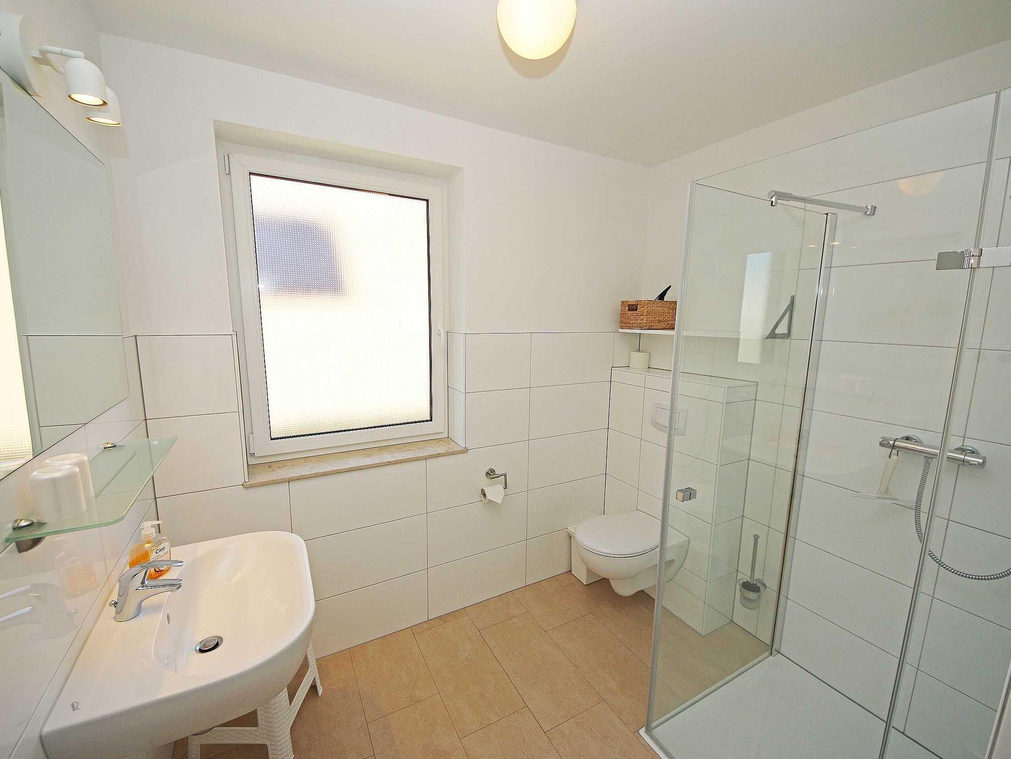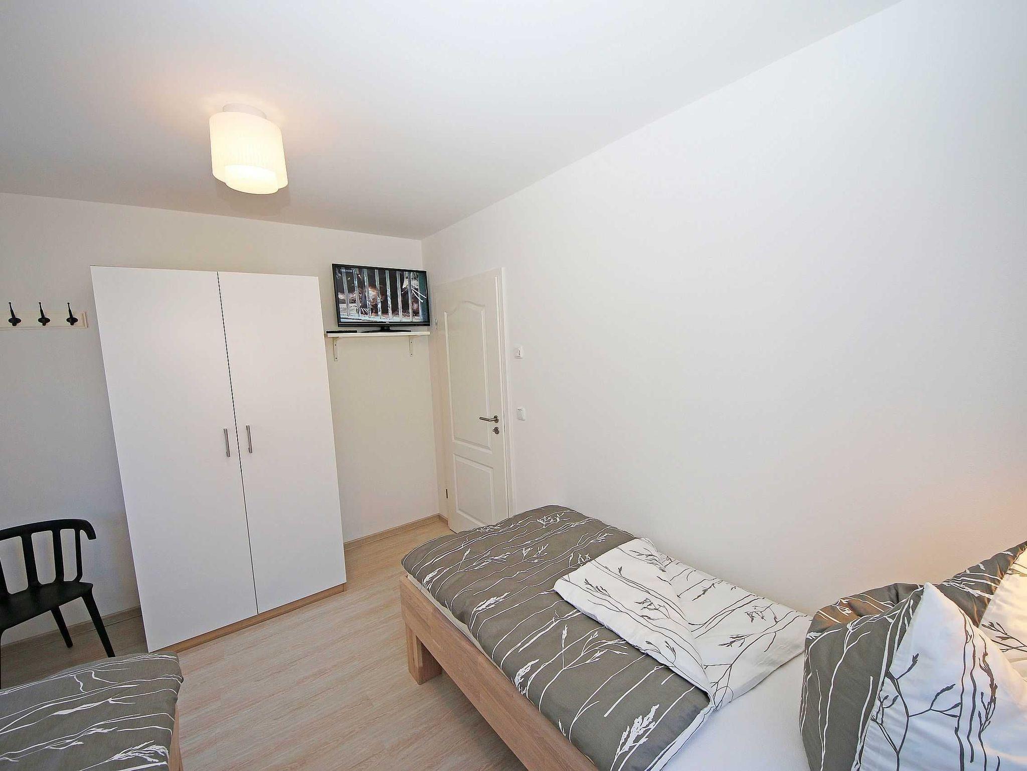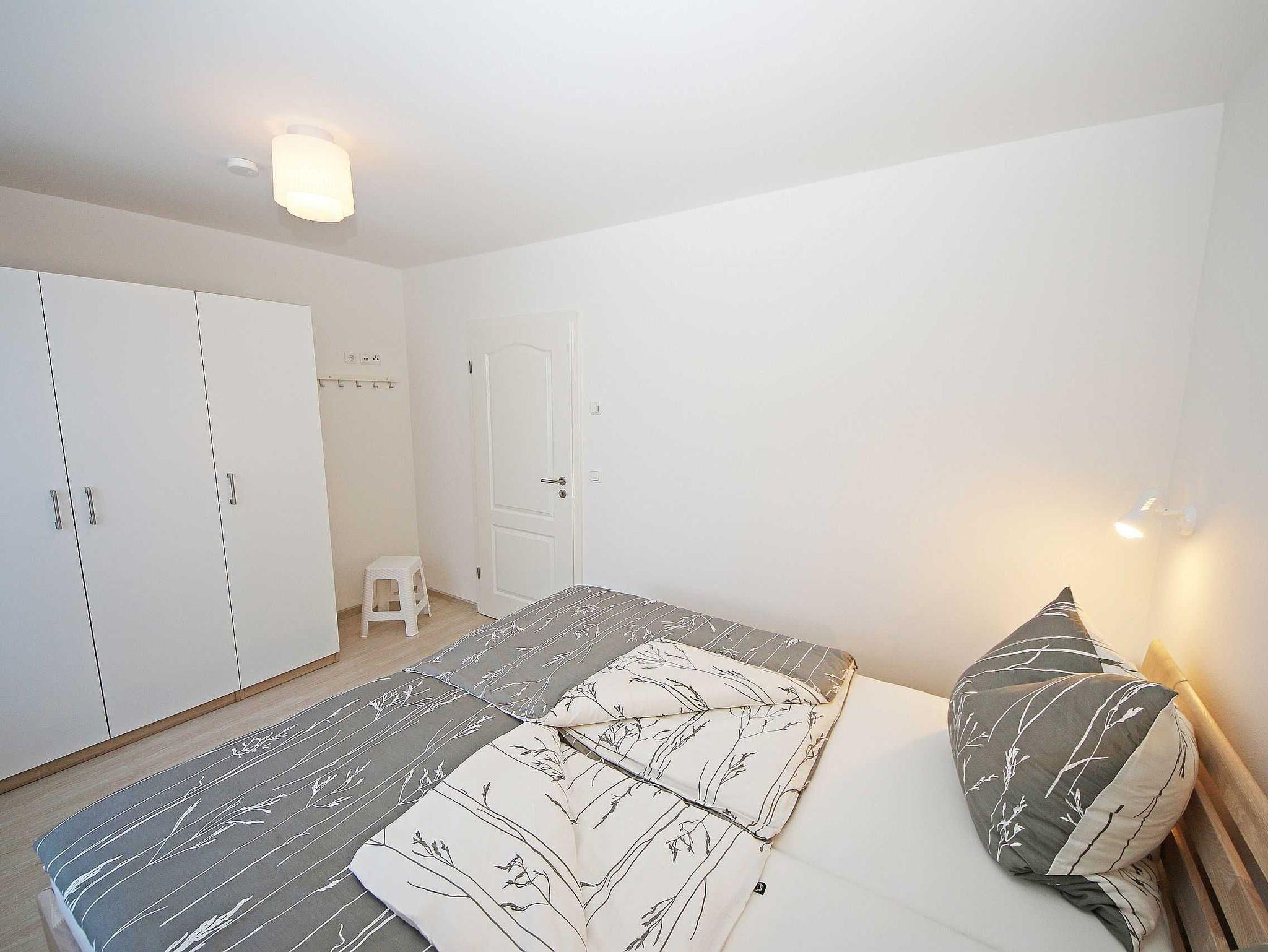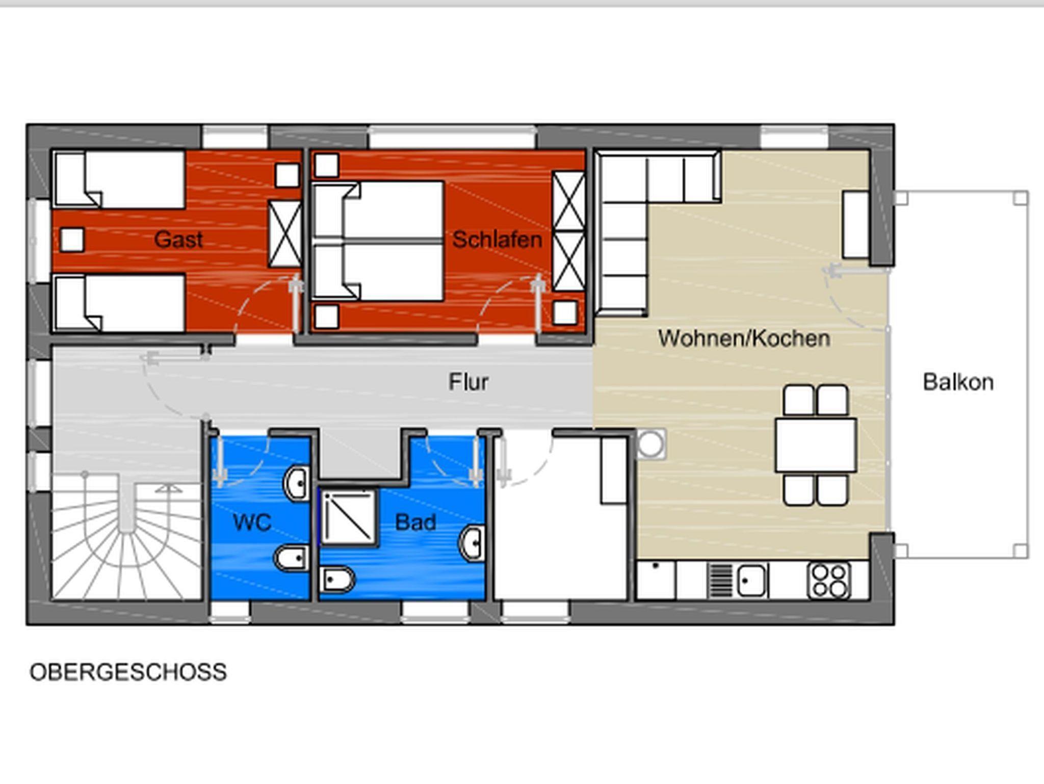 Die gebaute, modern eingerichtete Ferienwohnung hat eine Größe von ca. 65 qm und ist mit ausgewählten Stilelementen versehen. Sie bietet Platz für 2 bis 4 Erwachsene und 1 Kleinkind bis 3 Jahre im Kinderreisebett. Die Allergikerfreundliche Nichtraucherwohnung befindet sich im Obergeschoss. Zu der Wohnung gehört ein bestuhlter und mit Sonnenschirm versehener Balkon mit Blick in den Küstenwald. Ein Grillplatz befindet sich im Gartenbereich. Der Wohnbereich ist mit einer gemütlichen Eckcouch (Leder), Couchtisch; Leselampe sowie Sideboard ausgestattet. Zu den Unterhaltungsmöglichkeiten in den Abendstunden oder bei schlechtem Wetter gehören ein Smart-TV, Blu-Ray-Player sowie eine Hi-Fi Kompaktanlage mit CD- und USB-Anschluss. Auch auf einen Internetanschluss (WLAN) brauchen Sie nicht verzichten. Dieser ist inklusive. Ein Kaminofen für wohlige Wärme rundet die Gemütlichkeit ab. Kaminholz ist nicht inklusive. Die komplett ausgestattete Küchenzeile mit Ceranfeld, Backofen, Geschirrspüler, Kühlschrank mit Eisfach, Mikrowelle, Kaffeemaschine, Wasserkocher, Toaster, div. Küchenutensilien wird durch den Essplatz am Panoramafenster komplettiert. Eines der 2 Schlafräume ist mit einem Doppelbett (1,80m x 2,00m), Nachttischablagen und einem geräumigen Kleiderschrank ausgestattet. Das zweite Schlafzimmer hat zwei Einzelbetten (0,90m x 2,00m), Nachttischablagen und einen Kleiderschrank sowie einen LCD-TV. Die Schlafräume sind mit einem modernen Vinylbelag versehen und können für einen angenehmen Schlaf abgedunkelt werden, zudem sind sie mit Insektenschutzgitter versehen. In allen anderen Räumlichkeiten sind Fliesen verlegt worden. Für eine angenehme Wärme sorgt die im ganzen Haus verlegte Fußbodenheizung. Das Tageslichtbad wird durch eine flache Duschwanne, einen Waschtisch, ein WC, Fön und einem beheizten Handtuchhalter abgerundet. Das Gäste-WC wurde zusätzlich mit einem beheizten Handtuchtrockner ausgestattet. Für unsere kleinen Gäste ist 1x Hochstuhl inklusive. Haustiere sind nicht erlaubt. Ein PKW-Stellplatz befindet sich auf dem Grundstück. Mitgebrachte oder geliehene Fahrräder können Sie im hauseigenen Abstellraum unterbringen. Die Erstausstattung eines Wäschepaketes (komplette Bettwäsche, 1 Duschhandtuch, 1 kleines Handtuch) können Sie bis 14 Tage vor Anreise gegen einen Aufpreis dazu buchen oder durch eigene ergänzen. Ab 2 gebuchten Paketen erhalten Sie einmalig 1 Geschirrhandtuch und 1 Duschvorleger hinzu.