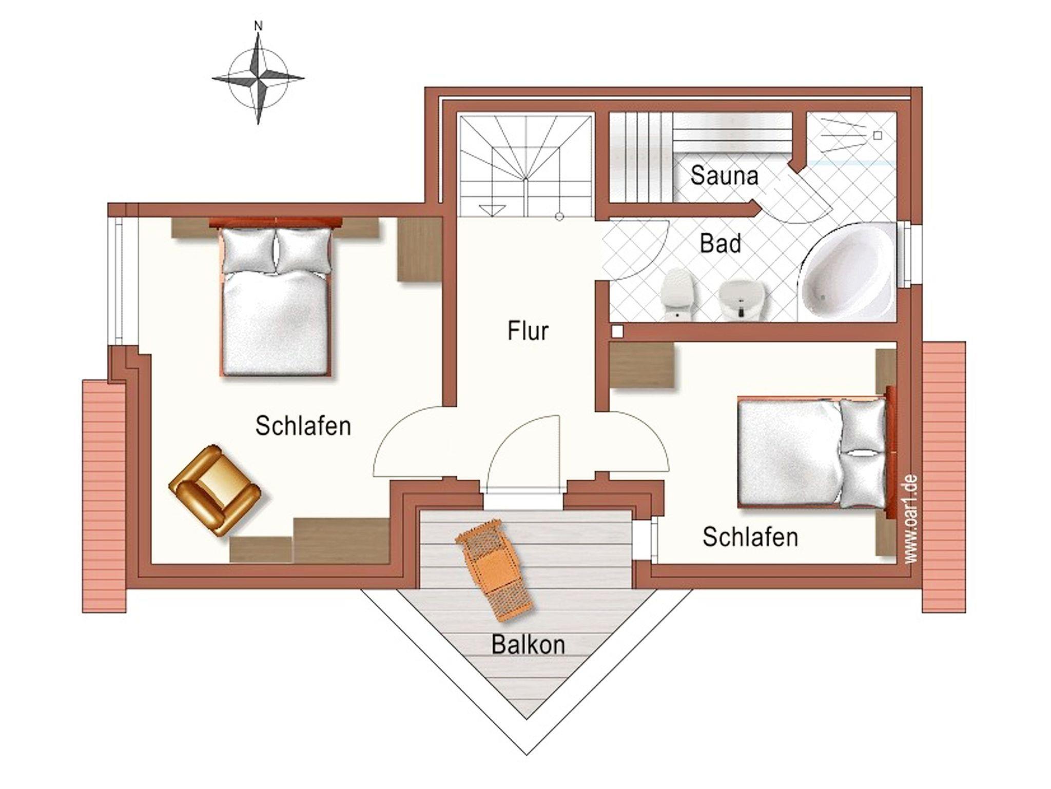 Einen kleinen möblierten Balkon gibt es im oberen Bereich auch.