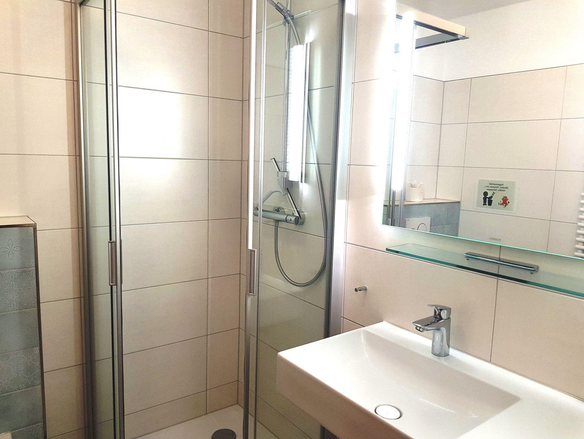 Bad mit Fußbodenheizung, Waschplatz, WC und Dusche