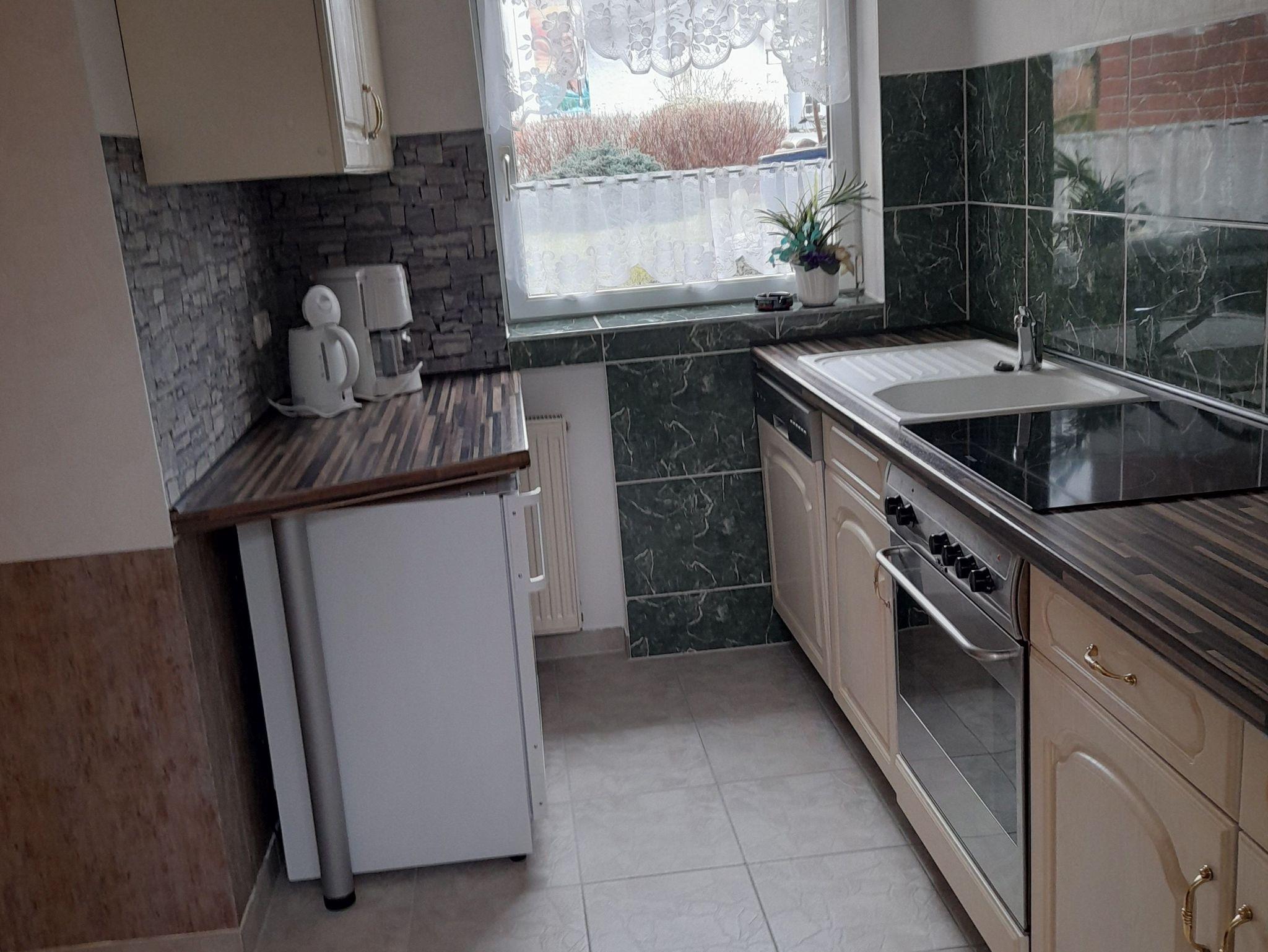 Küche mit Herd, Geschirrspüler, Mikrowelle, Kühlschrank, Kaffeemaschine ....