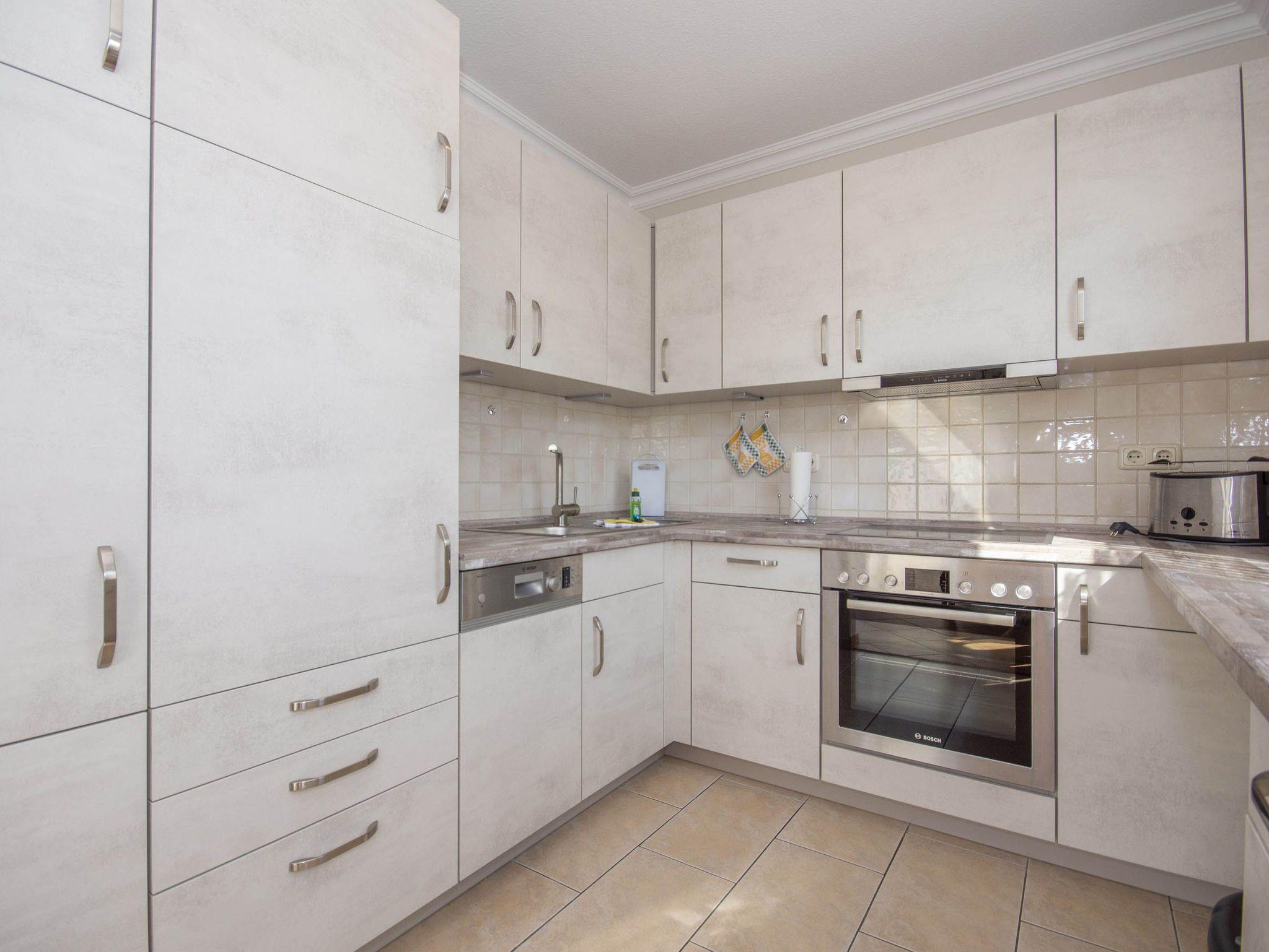 In der Wohnung befindet sich eine offene, voll ausgestattete Küche mit Spülmaschine, Herd, Cerankochfeld und Mikrowelle. Zahlreiche Küchenutensilien eröffnen Ihnen die Möglichkeit, einen kulinarischen Kochabend zu verleben.