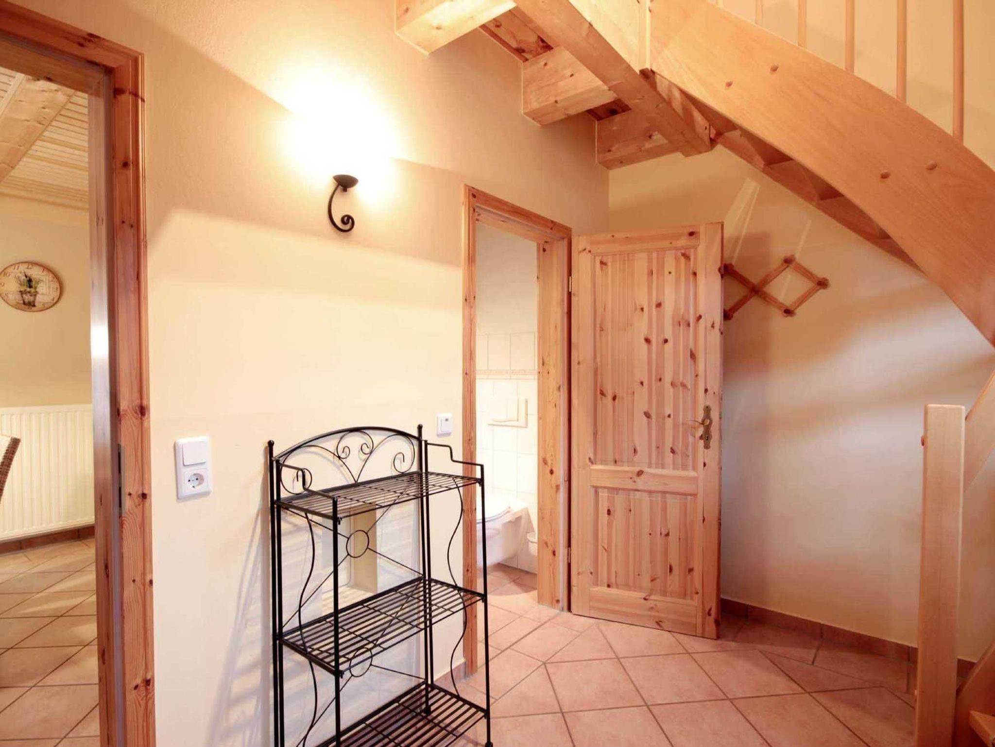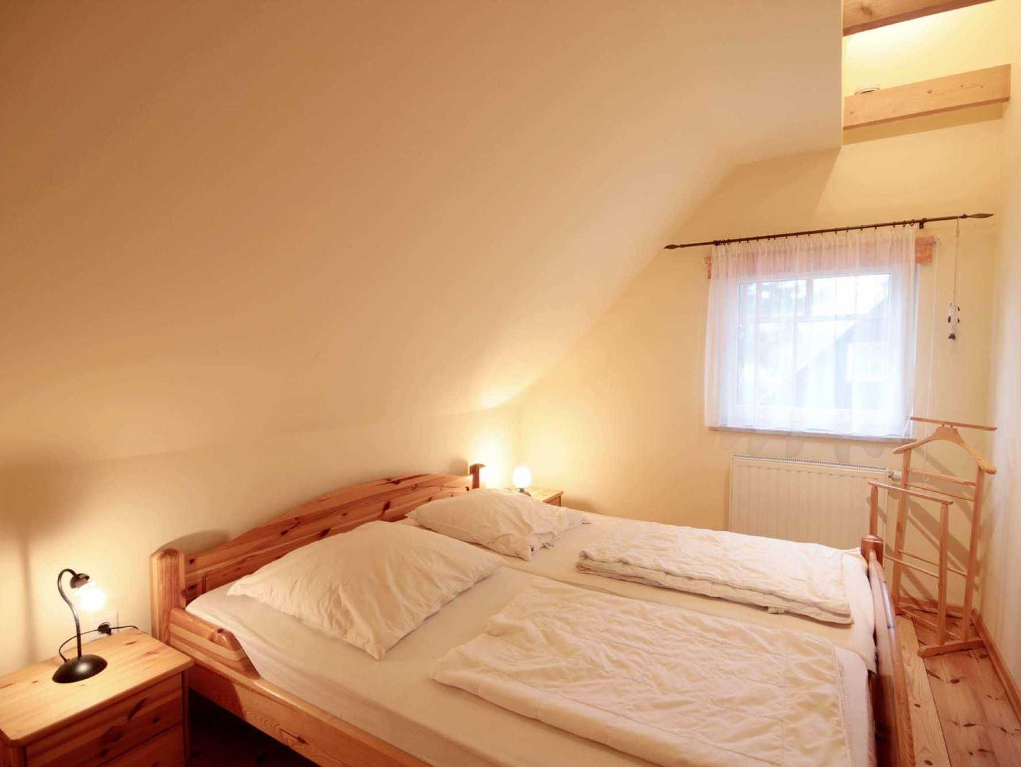 Das Haus teilt sich auf in Wohnraum mit kompletter Küchenecke, Kaminofen und Gästetoilette im Erdgeschoss. Hier finden Sie ein Flachbildfernseher und Musikanlage vor. Eine Eckcouch bietet Schlafgelegenheit für die 5. Person. Die Küchenecke beinhaltet u.a. ein Cerankochfeld, Backofen, Kaffeemaschine und Toaster. Im Dachgeschoss befinden sich zwei Schlafräume und ein Badezimmer mit Dusche und WC. Die Schlafräume sind mit Doppelbetten und Kleiderschränken ausgestattet. Ein kostenfreier WLAN-Zugang steht (für Email, Internet) zur Verfügung. Jedoch nicht fürs Streaming, da es sich um ein begrenztes Datenvolumen handelt. Für Ihren PKW ist ein Stellplatz unterm Carport vorhanden.