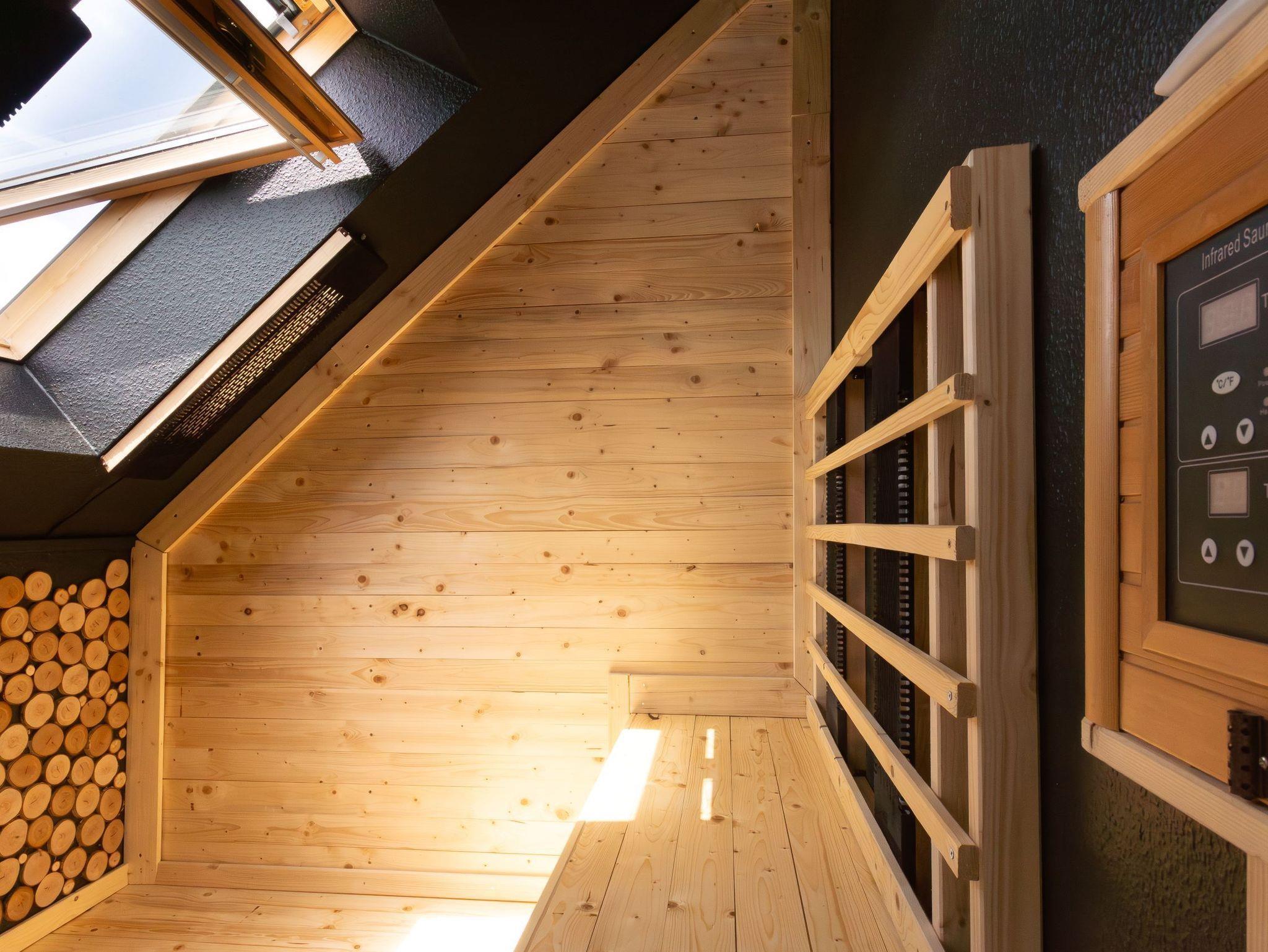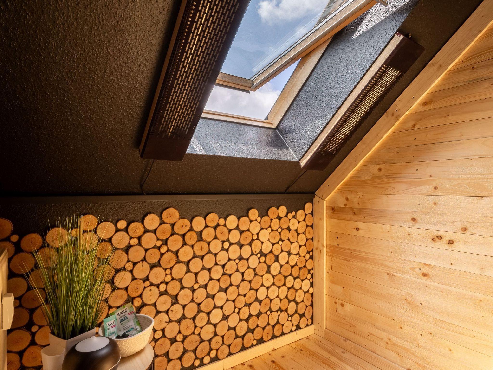 Unser Highlight: In dem Apartment befindet sich eine Infrarotsauna mit geschütztem Blick ins Grüne zur Eigennutzung.