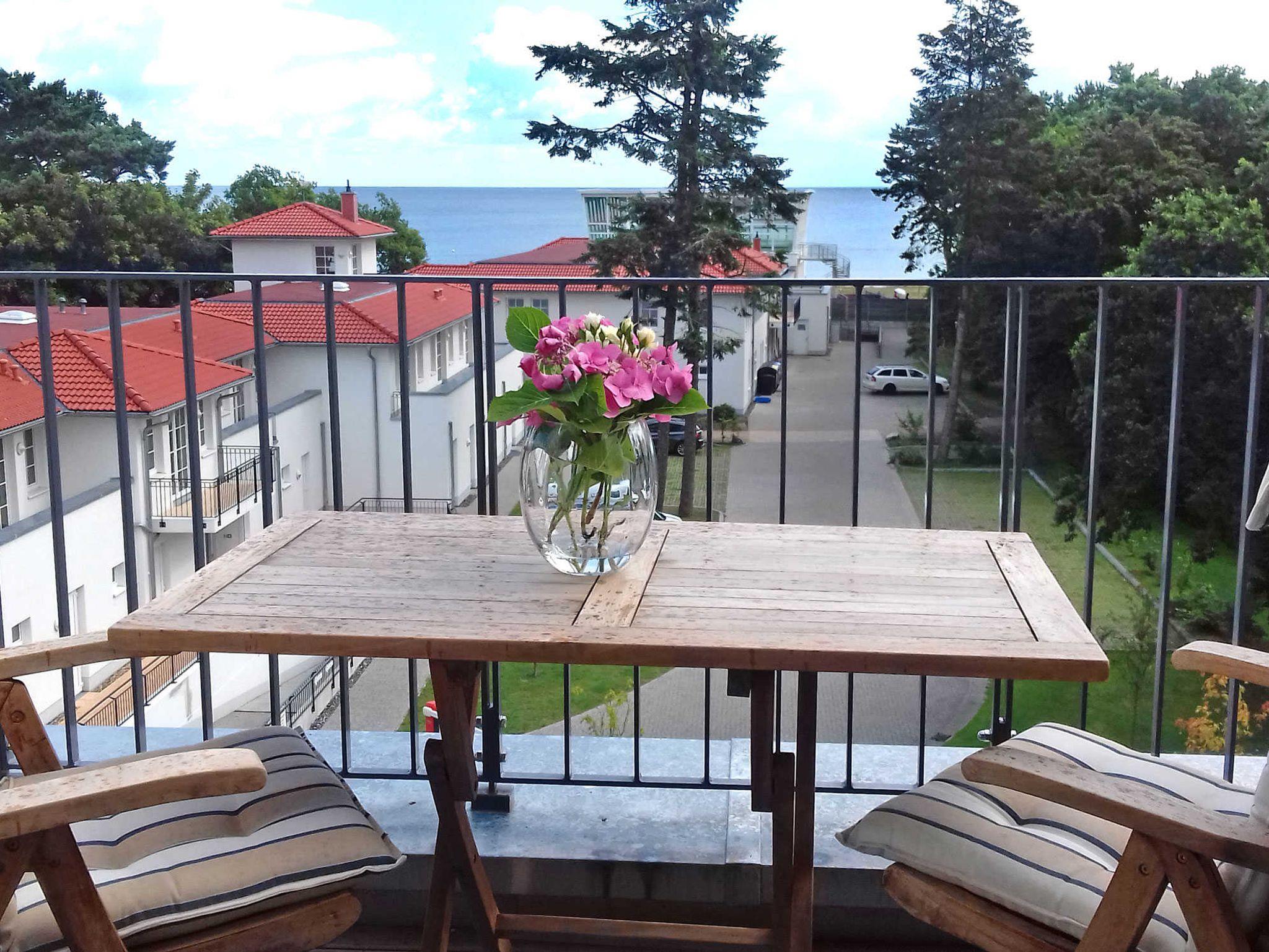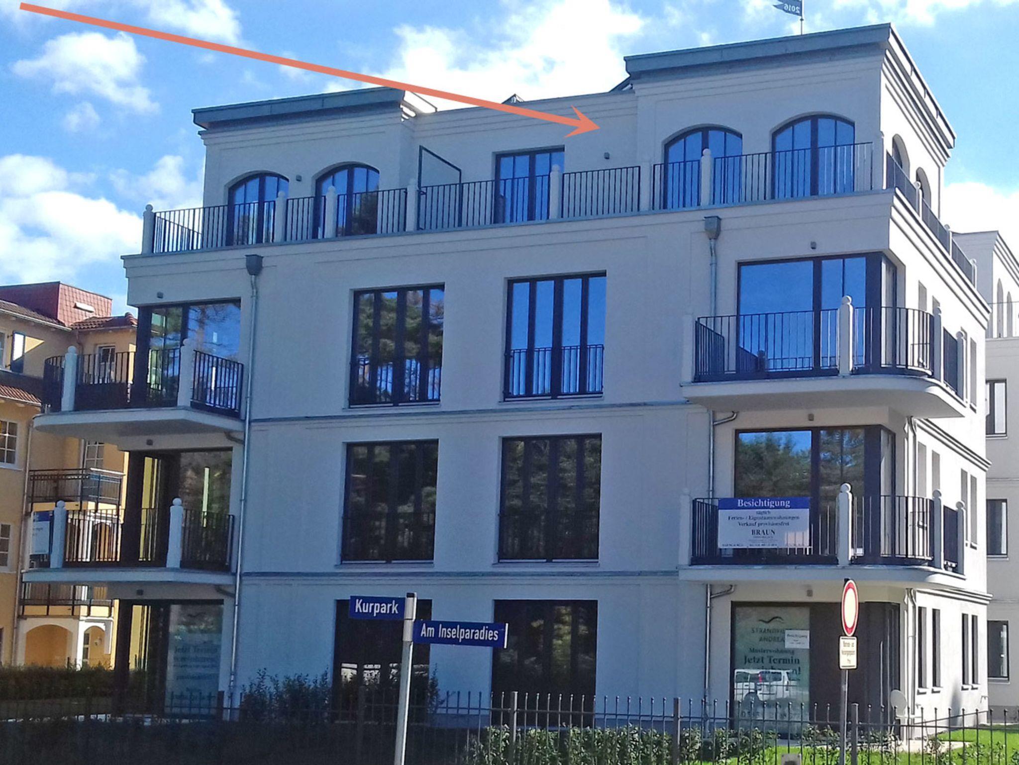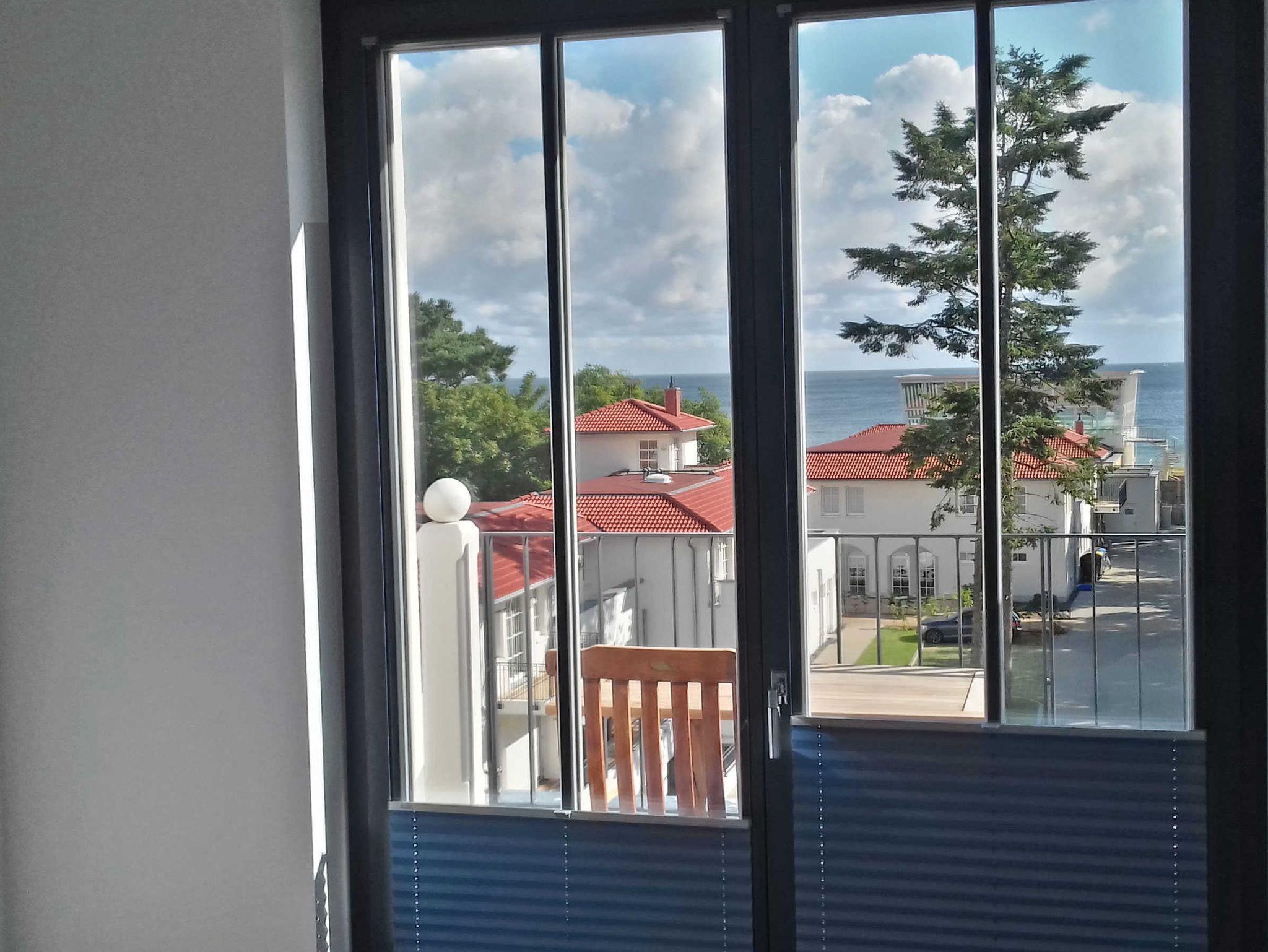 Vis a vis dem Strand, Luxus pur: 98 qm große Penthouse Ferienwohnung mit herrlichen Meerblick an der Promenade von Baabe für 4 Personen mit 2 Schlafzimmern, 2 Bädern und 2 großen Balkonen. Die Villa Andrea liegt in bester Lage zum Strand, verfügt über Lift, WLAN, Tiefgaragenstellplatz und einer Gemeinschaftssauna im Souterrain. Ein schön angelegter Garten umgibt das Haus. Die Wohnung ist ebenfalls gut geeignet für bewegungseingeschränkte Personen, da auch das Duschbad ebenerdig ist.