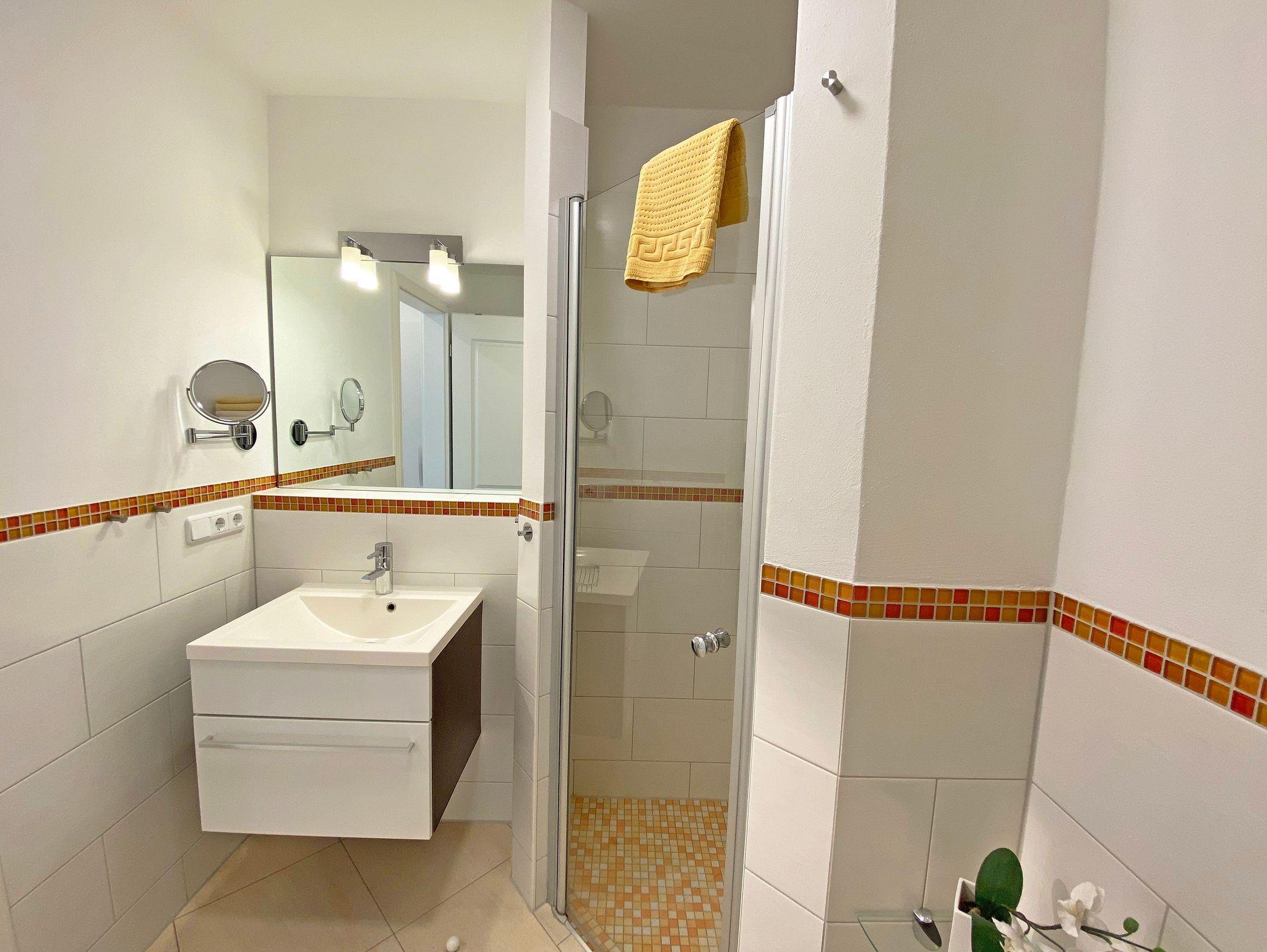 Die Wohnung Nr. 18 liegt absolut ruhig im 2. OG des Hauses und ist bequem mit einem Fahrstuhl zu erreichen. Die Nichtraucherferienwohnung bietet mit Ihren ca. 38qm ausreichend Platz für max. 2 Personen + ein Kleinkind bis 3 Jahre im Kinderreisebett. Im lichtdurchfluteten Wohnbereich befindet sich ein Ledersofa, zwei Couchtische, ein Beistelltisch, eine Leselampe, ein TV-Unterschrank sowie ein Relax Sessel. Ein kostenlosen WLAN-Zugang sowie ein Smart-TV, ein DAB-Radio und ein Blue Ray Player runden den technischen Bereich ab. Von hier aus gelangen Sie auf den großen bestuhlten Balkon (Süd/West) mit Blick ins Grüne, welcher zusätzlich über eine elektrische Markise verfügt, so dass Sie Ihren Tag gemütlich ausklingen lassen können. An den Wohnbereich angrenzend befindet sich die komfortable Küchenzeile, ausgestattet ist diese mit einem Ceranfeld, Backofen, Geschirrspüler, Mikrowelle, Kühlschrank mit Gefrierfach, Kaffeemaschine mit Thermoskanne, Senseo-Padmaschine, Wasserkocher, Toaster, Eierkocher sowie einen Esstisch. Im Schlafzimmer befindet sich ein bequemes Doppelbett (1,80m x 2,00m) mit verstellbaren Lattenrosten, zwei Nachtischablagen, Insektenschutzgitter, Verdunklungsmöglichkeit und ein großer Kleiderschrank mit Safe sowie ein Smart-TV. Das Aufstellen eines Kinderreisebettes ist im Schlafzimmer möglich. Im innenliegenden Bad befindet sich eine bodentiefe Dusche, ein Waschbecken mit Unterschrank, ein Handtuchheizkörper, ein Fön, ein Kosmetikspiegel sowie ein WC. Ein Kinderreisebett mit Matratze sowie ein Hochstuhl stehen Ihnen zur Verfügung. Im Kellergeschoss der Grüne Düne steht Ihnen eine Gemeinschaftssauna mit Dusche, WC nebst Ruheraum gegen Gebühr zur Verfügung sowie ein Waschraum mit Münzwaschmaschine und Münztrockner. Ein PKW-Stellplatz (Nr.18) ist direkt vor dem Haus. Haustiere sind nicht erlaubt. Zur Erkundung der Umgebung stehen Ihnen zusätzlich 2 Fahrräder kostenfrei zur Verfügung (kein Vertragsbestandteil und auf eigene Gefahr). Die Erstausstattung eines Wäschepaketes (komplette Bettwäsche, 1 Duschhandtuch, 2 kleine Handtücher, 1 Duschvorleger, 1 Geschirrhandtuch) können Sie bis 14 Tage vor der Anreise gegen einen Aufpreis dazu buchen oder durch eigene ergänzen.