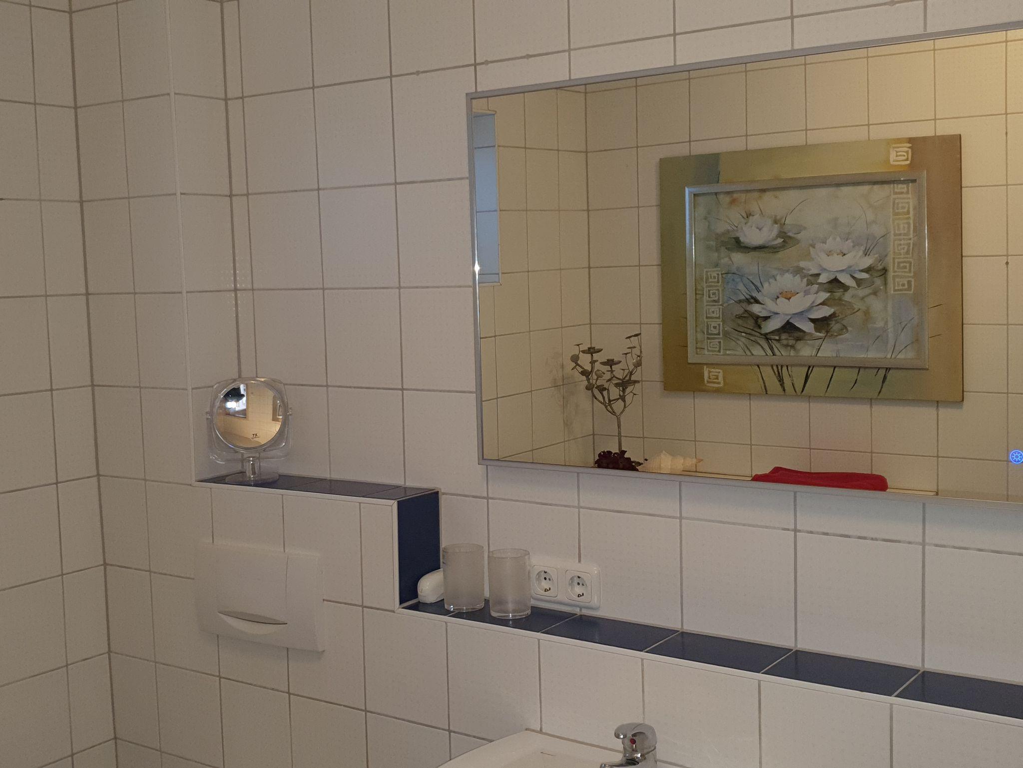 Unser im Dezember 2023 frisch renoviertes helles Apartment mit Fußbodenheizung bietet Platz für 2 Personen. Das gemütliche Wohnzimmer mit Doppelbett , Ledercouch mit verstellbaren Rücken- und Armlehnen und Flachbild-TV lädt zum Verweilen ein. Auf Anfrage besteht die Möglichkeit, dass eine 3. Person gegen einen Aufpreis von 10 € pro Tag mit anreisen kann. Die komplett ausgestattete Küche mit Geschirrspüler, große Kühl- und Gefrierkombination, Herd, Backofen, Wasserkocher, Toaster und Kaffeefilter (Bodrum) lässt keine Wünsche offen. Das geräumige Badezimmer mit ebenerdiger Dusche, großen beleuchteten Spiegel rundet das Gesamtbild ab. Zum Reinigen Ihrer Kleidung steht eine Waschmaschine im zur Wohnung gehörenden Abstellraum zur Verfügung. Bitte beachten Sie, dass keine Haustiere erlaubt sind und das Rauchen ausschließlich auf der Terrasse erlaubt ist. Das WLAN können Sie kostenfrei nutzen.
