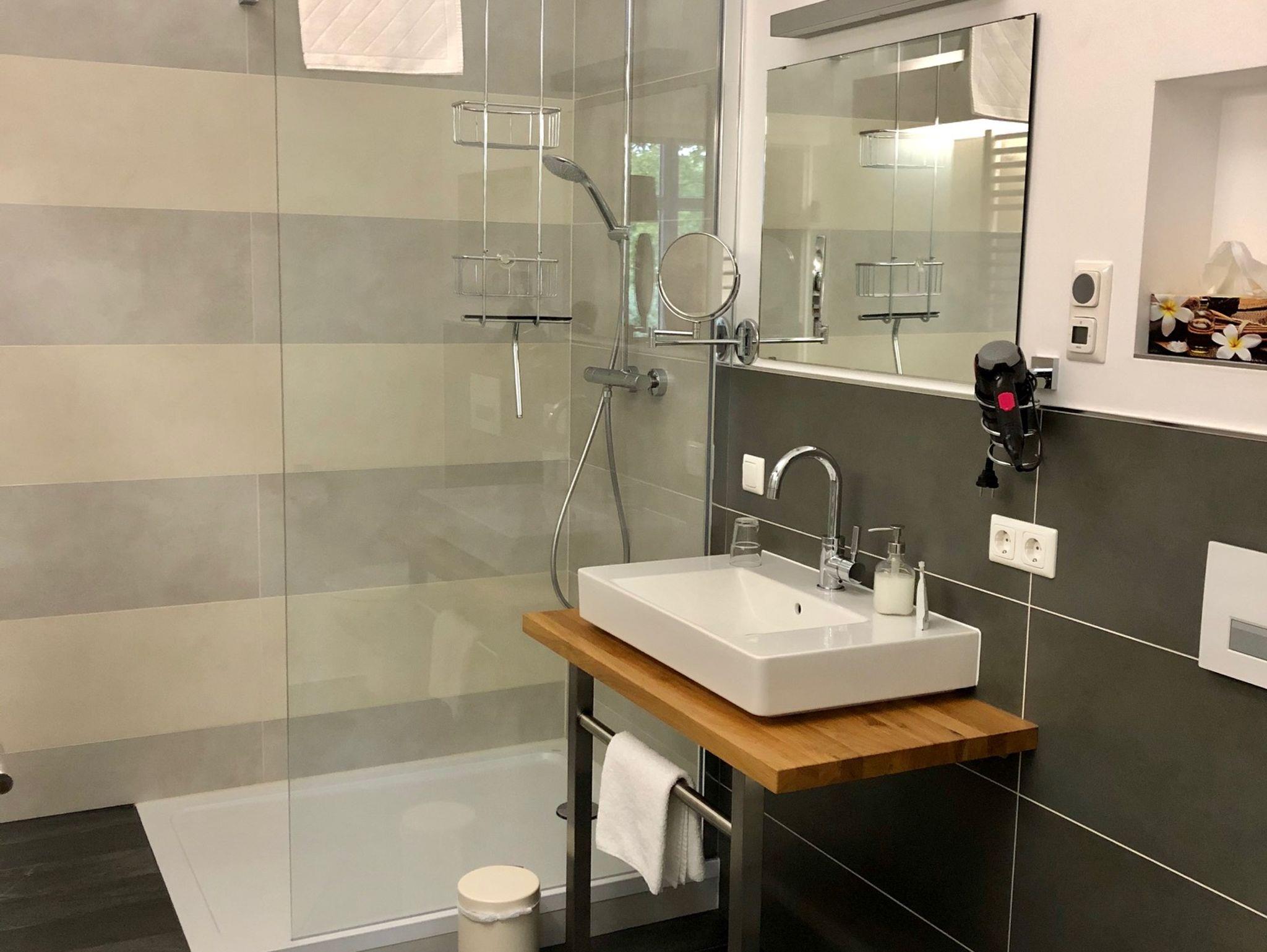 Alle Zimmer verfügen über ein Doppelbett, Bad mit Dusche und WC, Fernseher sowie einer Sitzgruppe.