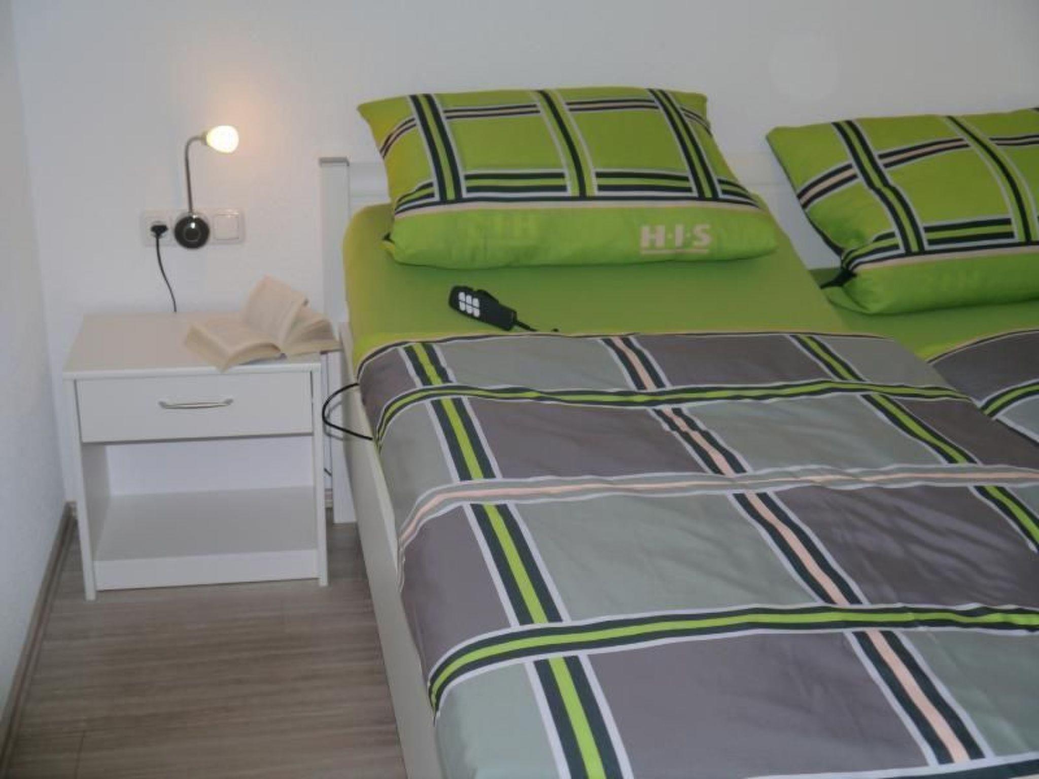 Inside, the flat has two separate bedrooms, each equipped with a double bed, wardrobe and other amenities for your comfort. One bed even has an electrically adjustable slatted frame. The beds are positioned at a comfortable height, making it easier to sit down and get up. The bathroom is equipped with a spacious, threshold-free shower, non-slip flooring, a wheelchair-accessible washbasin, shower chair, grab rails, a washing machine, a tumble dryer, a towel radiator, a hairdryer and modern bathroom furniture for plenty of storage space. The underfloor heating throughout the flat also ensures a pleasant warmth.