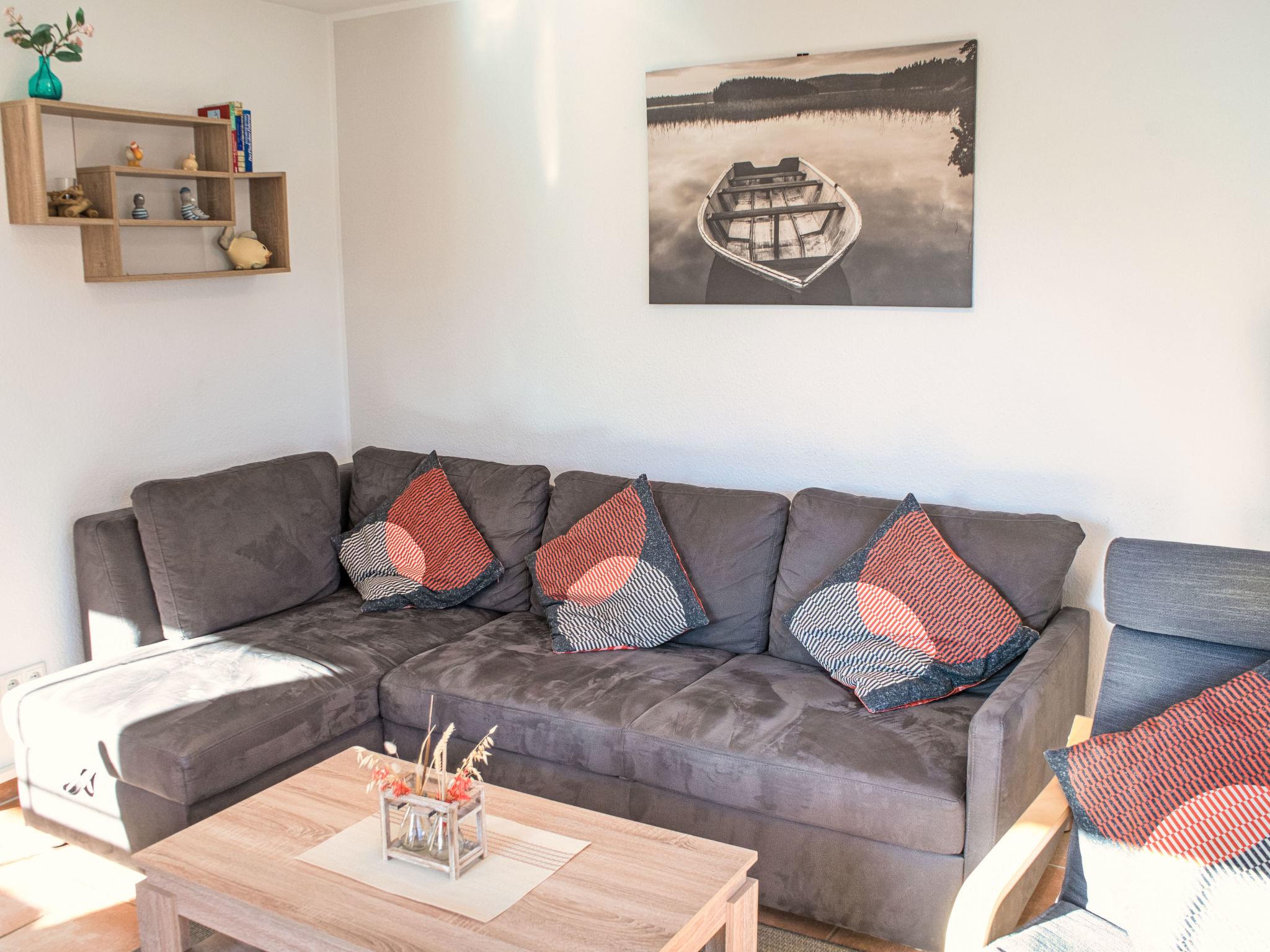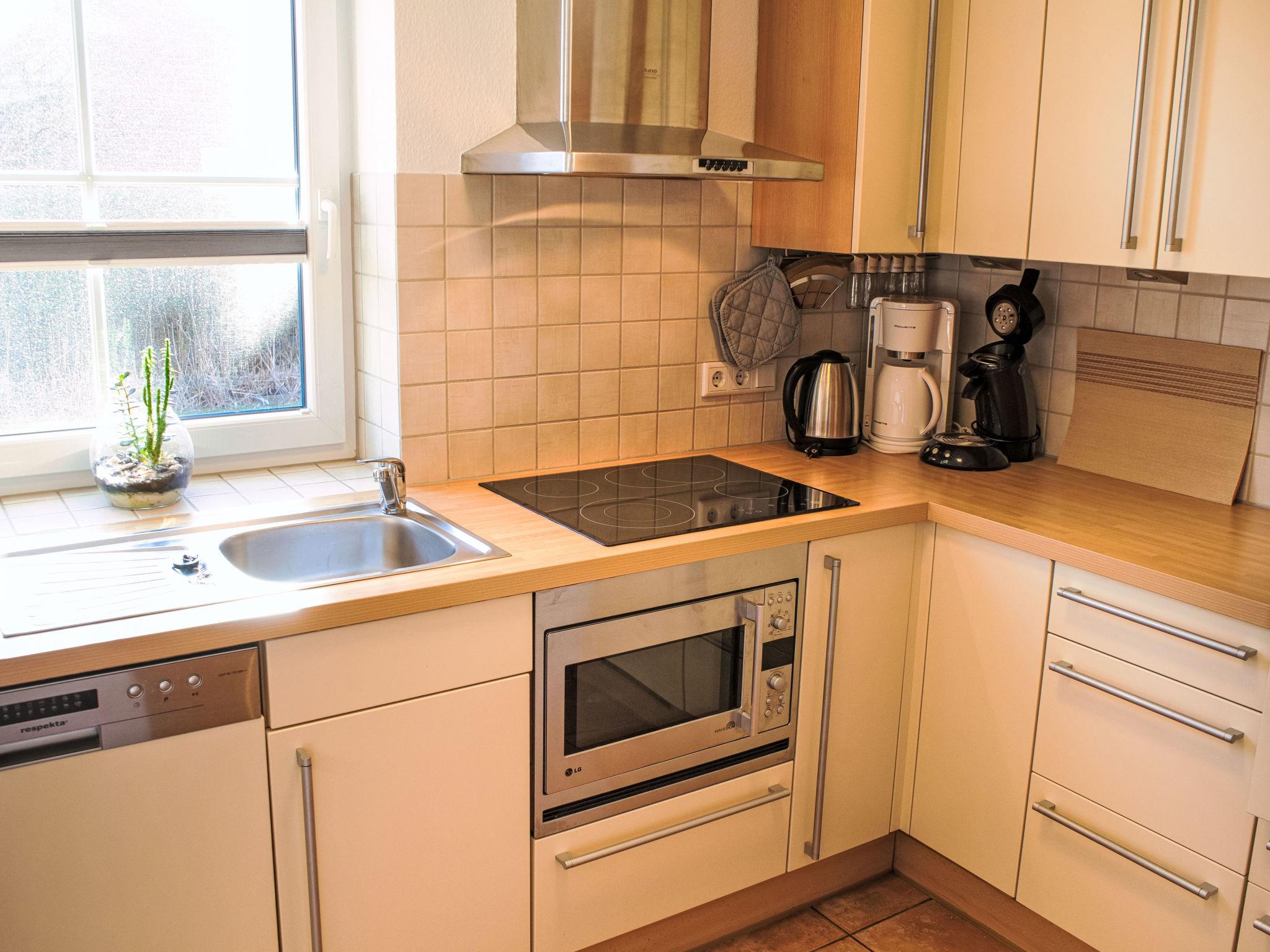 4-room terraced house 70 m2 on 2 levels. Comfortable and modern furnishings: large living/dining room with 1 double sofabed (160 cm, length 200 cm), cable TV (flat screen). Exit to the garden, to the terrace. 1 room with 1 bed (90 cm, length 200 cm). Open kitchen (oven, dishwasher, 4 ceramic glass hob hotplates, kettle, microwave, electric coffee machine) with dining table. Shower/WC. Gas heating. Upper floor: 1 room with 1 double bed (2 x 90 cm, length 200 cm), cable TV (flat screen). 1 room with 2 beds (90 cm, length 200 cm), 2 pull-out beds (2 x 90 cm, length 200 cm), cable TV (flat screen). Bath/WC. Terrace 16 m2. Terrace furniture, barbecue. Facilities: Internet (WiFi, free). Please note: non-smokers only.