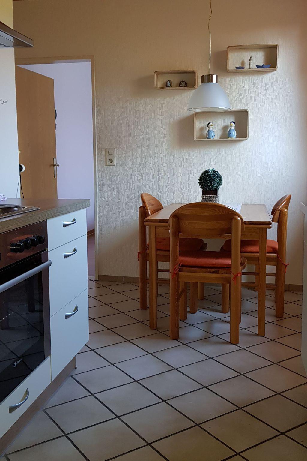 The holiday flat has a fully equipped kitchen with cooker, oven, coffee machine, water surface and dining area.