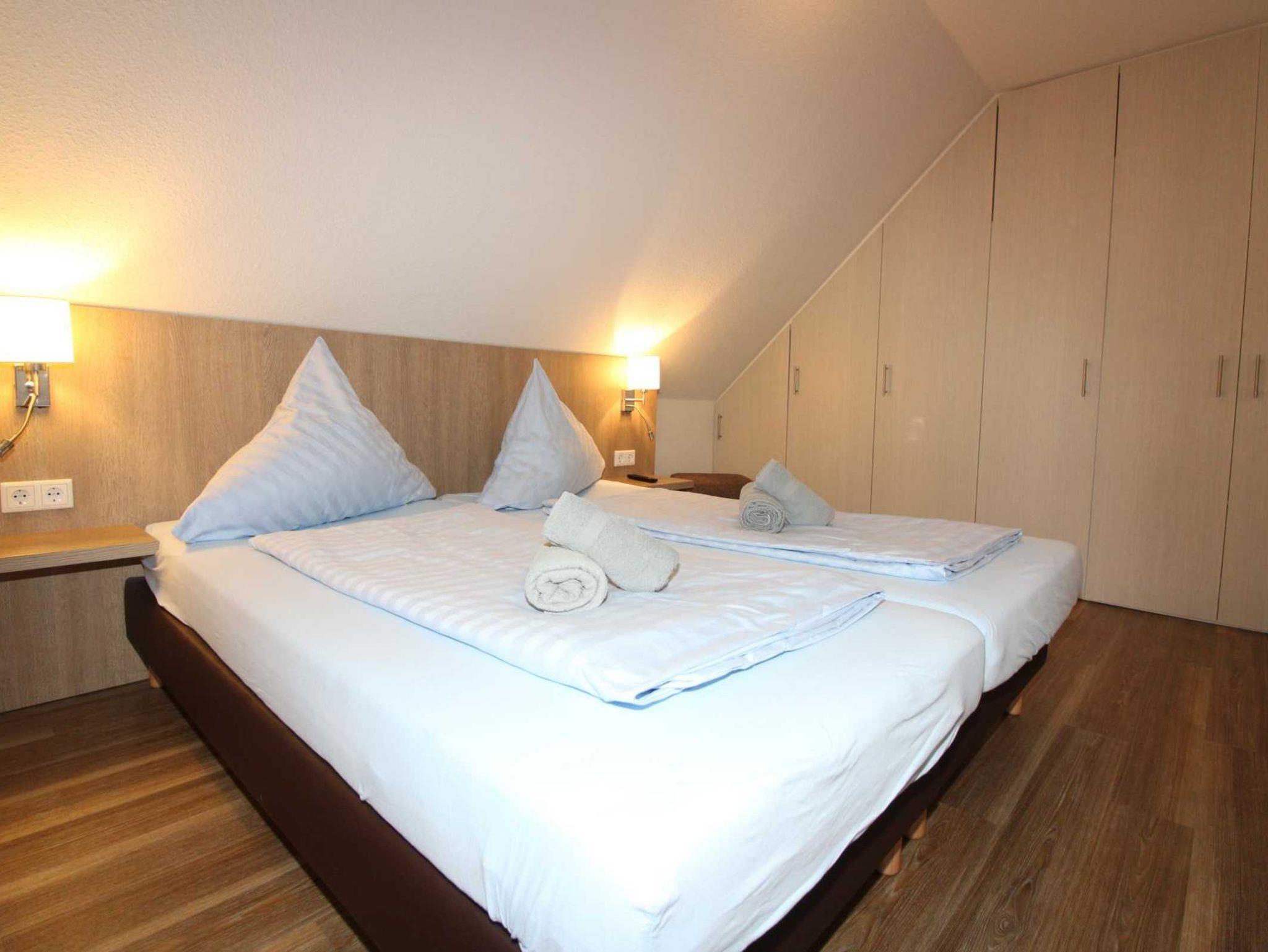 Hier befinden sich zwei Schlafräume, jeweils mit LED-Flachbildfernseher, sowie ein hochwertiges Bad mit Glasduschkabine, Handtuchheizkörper, Fußbodenerwärmung, Waschtischunterschrank, etc.