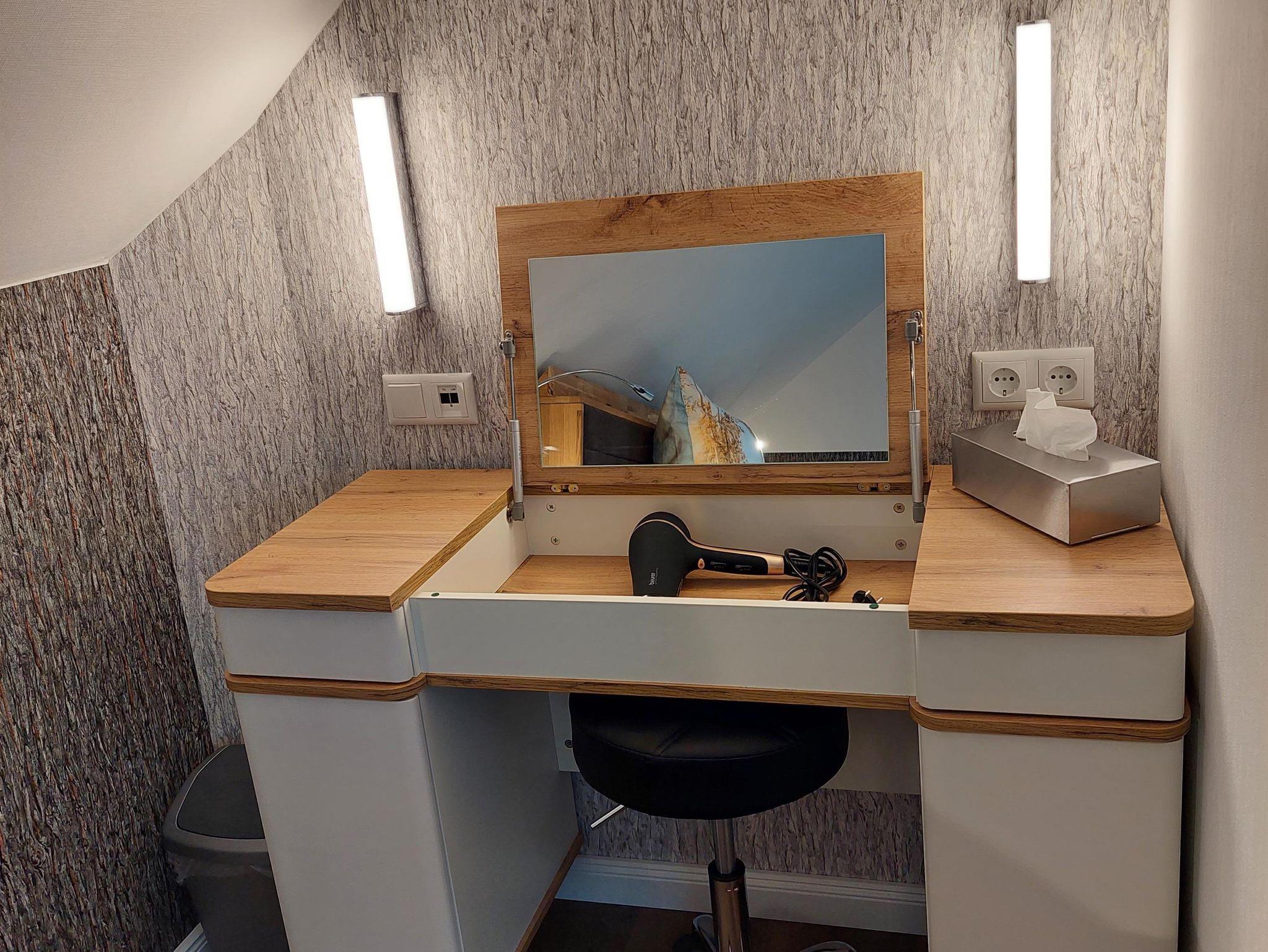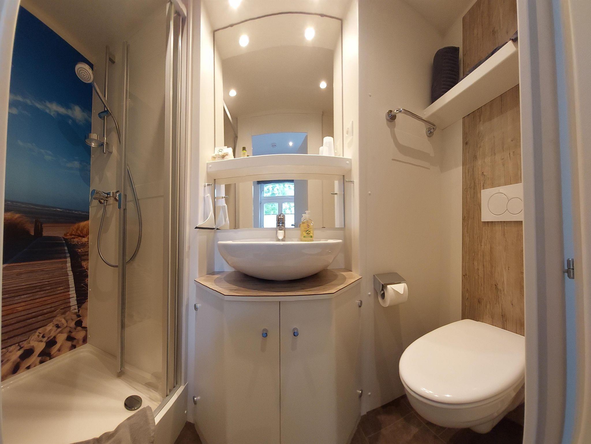 Das Zimmer verfügt über eine Klimaanlage/Heizung, Smart-TV, Kaffeemaschine, Wasserkocher, Föhn, WLAN und einen kleinen Kühlschrank. Ob zu zweit oder alleine, hier können sie alle Sorgen vergessen. Das Möwennest ist mit seinem 1,60m breiten Bett unser kleinstes Zimmer. Zu diesem Zimmer gehört eine eigene kleine Badezimmerkabine, wie sie sonst nur auf Kreuzfahrtschiffen zu finden sind.