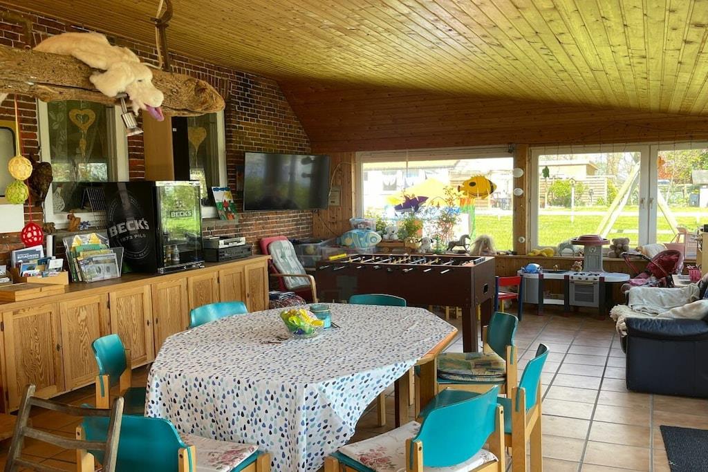 Vår semesterlägenhet (100 meter från Nordsjön) har en separat ingång med en täckt terrass. Bottenvåningen har ett vardagsrum med matplats och ett fullt utrustat kök. Ett badrum med regndusch, TV och stereo. På övervåningen finns ett sovrum med dubbelsäng och ett andra rum med två sängar (även för vuxna). En spjälsäng och barnstol finns tillgängliga utan extra kostnad. En stor, skyddad grönyta för barnen att sola eller leka i (lekutrustning finns) gränsar till terrassen. En stor vinterträdgård finns tillgänglig för lek eller umgänge i dåligt väder. Det finns också en grillplats med trädgårdsmöbler och grillutrustning. Tvättmaskin och torktumlare finns också tillgängliga. Wi-Fi finns tillgängligt på begäran.